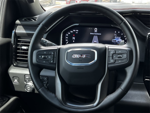 BS brakes, Air Conditioning, Alloy wheels, AM/FM radio: SiriusXM with 360L, Apple CarPlay/Android Auto, AT4 Preferred Package, Auto High-beam Headlights, Auto-dimming door mirrors, Auto-dimming Rear-View mirror, Auto-Locking Rear Differential, Automatic Emergency Braking, Automatic temperature control, Black Chrome Header & Grille Insert Bars, Block heater, BLUETOOTH / HANDSFREE, Brake assist, Buckle to Drive, Bumpers: body-color, CLEAN CARFAX!, Color-Keyed Carpeting Floor Covering, Compass, Deep-Tinted Glass, Delay-off headlights, Driver door bin, Driver Memory, Driver vanity mirror, Dual front impact airbags, Dual front side impact airbags, Electric Rear-Window Defogger, Electronic Stability Control, Floor-Mounted Center Console, Following Distance Indicator, Forward Collision Alert, Front anti-roll bar, Front Bucket Seats, Front Center Armrest, Front dual zone A/C, Front fog lights, Front Pedestrian Braking, Front Prem Floor Liners w/Removable Carpet Insert, Front Rain-Sensing Wipers, Front reading lights, Front wheel independent suspension, Fully automatic headlights, GMC Connected Access Capable, HD Surround Vision, Heated 2nd Row Outboard Seats, Heated door mirrors, Heated Driver & Front Outboard Passenger Seating, Heated front seats, Heated rear seats, Heavy-Duty Air Filter, Hill Descent Control, Hitch Guidance, Hitch View, Illuminated entry, In-Vehicle Trailering System App, Integrated Trailer Brake Controller, IntelliBeam Automatic High Beam On/Off, Keyless Open & Start, LED Cargo Area Lighting, LOCAL TRADE IN!, Low tire pressure warning, Memory seat, NAVIGATION, Navigation System, NON SMOKER VEHICLE, Occupant sensing airbag, Off-Road Suspension, OnStar & GMC Connected Services Capable, Outside temperature display, Overhead airbag, Overhead console, Panic alarm, Passenger door bin, Passenger vanity mirror, Perforated Front Leather Seat Trim, Perimeter Lighting, Power Door Locks, Power door mirrors, Power driver seat, Power Front Passenger Windows w/Express Up/Down, Power Front Windows w/Driver Express Up/Down, Power passenger seat, Power Rake & Telescoping Steering Column, Power Rear Windows w/Express Down, Power Sliding Rear Window w/Rear Defogger, Power steering, Power Sunroof, Power windows, Premium audio system: GMC Infotainment System, Premium Bose 7-Speaker Sound System, PROFESSIONALLY DETAILED FOR DELIVERY!, Push Button Start, Radio data system, Radio: Premium GMC Infotainment Audio System, Rain sensing wipers, Rear Cross Traffic Braking, Rear Pedestrian Detection, Rear Prem Floor Liners w/Removable Carpet Insert, Rear reading lights, Rear seat center armrest, Rear step bumper, Rear Wheelhouse Liners, Rear window defroster, Red Recovery Hooks, Remote keyless entry, Remote Vehicle Starter System, Safety Alert Seat, Security system, SiriusXM w/360L, Speed control, Speed-sensing steering, Split folding rear seat, Spray-On Pickup Bedliner w/AT4 Logo, Steering Wheel Audio Controls, Steering wheel mounted audio controls, SUNROOF/MOONROOF, SUPER LOW MILES!, Tachometer, Telescoping steering wheel, Theft Deterrent System (Unauthorized Entry), Tilt steering wheel, Traction control, Trailer Camera Provisions, Trailer Side Blind Zone Alert, Trailering Package, Trip computer, Ultrasonic Front & Rear Park Assist, Universal Home Remote, Variably intermittent wipers, Ventilated Driver & Front Passenger Seats, Ventilated front seats, Voltmeter, Wi-Fi Hotspot Capable, Wireless Apple CarPlay/Wireless Android Auto, Wireless Charging. Clean