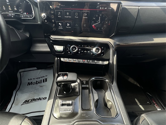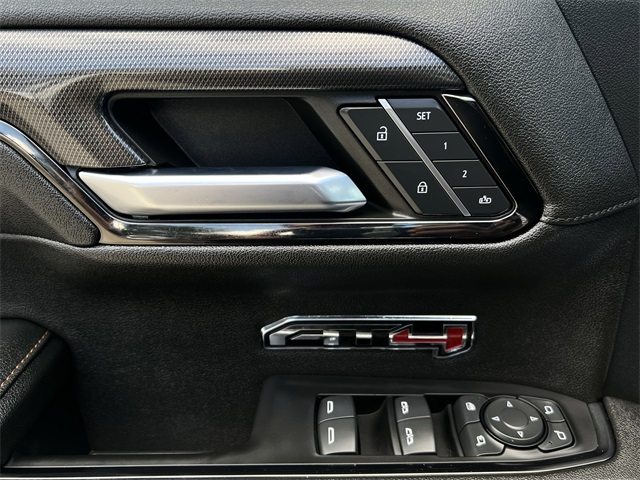 AM/FM radio: SiriusXM with 360L, Apple CarPlay/Android Auto, AT4 CarbonPro Edition, AT4 Preferred Package, AT4 Premium Package, Auto High-beam Headlights, Auto-dimming door mirrors, Auto-dimming Rear-View mirror, Auto-Locking Rear Differential, Automatic Emergency Braking, Automatic temperature control, Auxiliary External Transmission Oil Cooler, Bed View Camera, Black Chrome Header & Grille Insert Bars, Black Sport Step (LPO), Block heater, BLUETOOTH / HANDSFREE, Brake assist, Buckle to Drive, Bumpers: body-color, Carbon Fiber Composite Bed, CarbonPro Fender Hard Badge, CLEAN CARFAX!, Color-Keyed Carpeting Floor Covering, Compass, Deep-Tinted Glass, Delay-off headlights, Driver door bin, Driver Memory, Driver vanity mirror, Dual Active Exhaust, Dual front impact airbags, Dual front side impact airbags, Electric Rear-Window Defogger, Electronic Stability Control, External Engine Oil Cooling, Floor-Mounted Center Console, Following Distance Indicator, Forward Collision Alert, Front anti-roll bar, Front Bucket Seats, Front Center Armrest, Front dual zone A/C, Front fog lights, Front Pedestrian Braking, Front Prem Floor Liners w/Removable Carpet Insert, Front Rain-Sensing Wipers, Front reading lights, Front wheel independent suspension, Fully automatic headlights, GMC Connected Access Capable, HD Surround Vision, Heated 2nd Row Outboard Seats, Heated door mirrors, Heated Driver & Front Outboard Passenger Seating, Heated front seats, Heated rear seats, Heated steering wheel, Heavy-Duty Air Filter, Hill Descent Control, Hitch Guidance, Hitch View, Illuminated entry, In-Vehicle Trailering System App, Integrated Trailer Brake Controller, IntelliBeam Automatic High Beam On/Off, Keyless Open & Start, Lane Keep Assist w/Lane Departure Warning, LED Cargo Area Lighting, LOCAL TRADE IN!, Low tire pressure warning, Memory seat, Multicolor 15" Diagonal Head-Up Display, MultiPro Audio System by Kicker (LPO) (DISC), MultiPro Tailgate Audio System by Kicker (LPO), NAVIGATION, Navigation System, NON SMOKER VEHICLE, Occupant sensing airbag, Off-Road High Clearance Step (LPO), Off-Road Suspension, OnStar & GMC Connected Services Capable, Outside temperature display, Overhead airbag, Overhead console, Panic alarm, Passenger door bin, Passenger vanity mirror, Perforated Front Leather Seat Trim, Perimeter Lighting, Power Door Locks, Power door mirrors, Power driver seat, Power Front Passenger Windows w/Express Up/Down, Power Front Windows w/Driver Express Up/Down, Power passenger seat, Power Rake & Telescoping Steering Column, Power Rear Windows w/Express Down, Power Sliding Rear Window w/Rear Defogger, Power steering, Power Sunroof, Power windows, Preferred Equipment Group 4SB, Premium audio system: GMC Infotainment System, Premium Bose 7-Speaker Sound System, PROFESSIONALLY DETAILED FOR DELIVERY!, Push Button Start, Radio data system, Radio: Premium GMC Infotainment Audio System, Rain sensing wipers, Rear Camera Mirror, Rear Cross Traffic Braking, Rear Pedestrian Detection, Rear Prem Floor Liners w/Removable Carpet Insert, Rear reading lights, Rear seat center armrest, Rear step bumper, Rear Wheelhouse Liners, Rear window defroster, Red Recovery Hooks, Remote keyless entry, Remote Vehicle Starter System, Safety Alert Seat, Security system, SiriusXM w/360L, Speed control, Speed-sensing steering, Split folding rear seat, Spray-On Pickup Bedliner w/AT4 Logo, Steering Wheel Audio Controls, Steering wheel mounted audio controls, SUNROOF/MOONROOF, SUPER LOW MILES