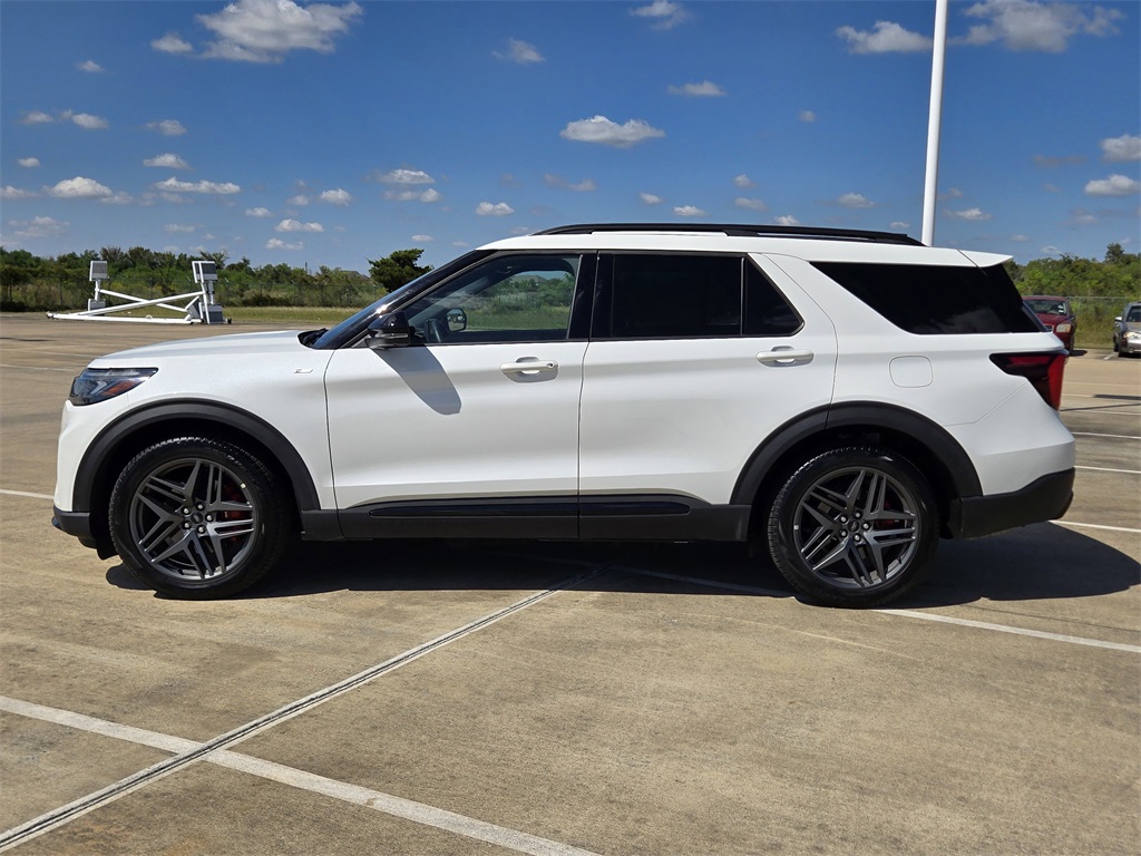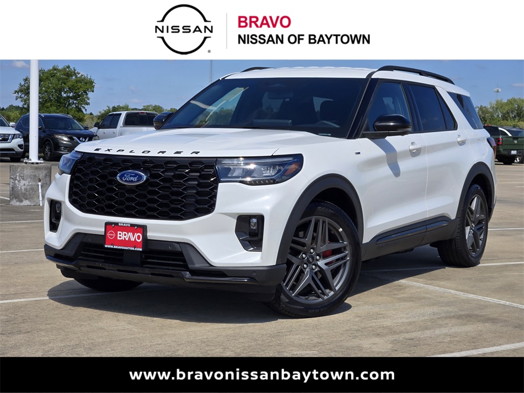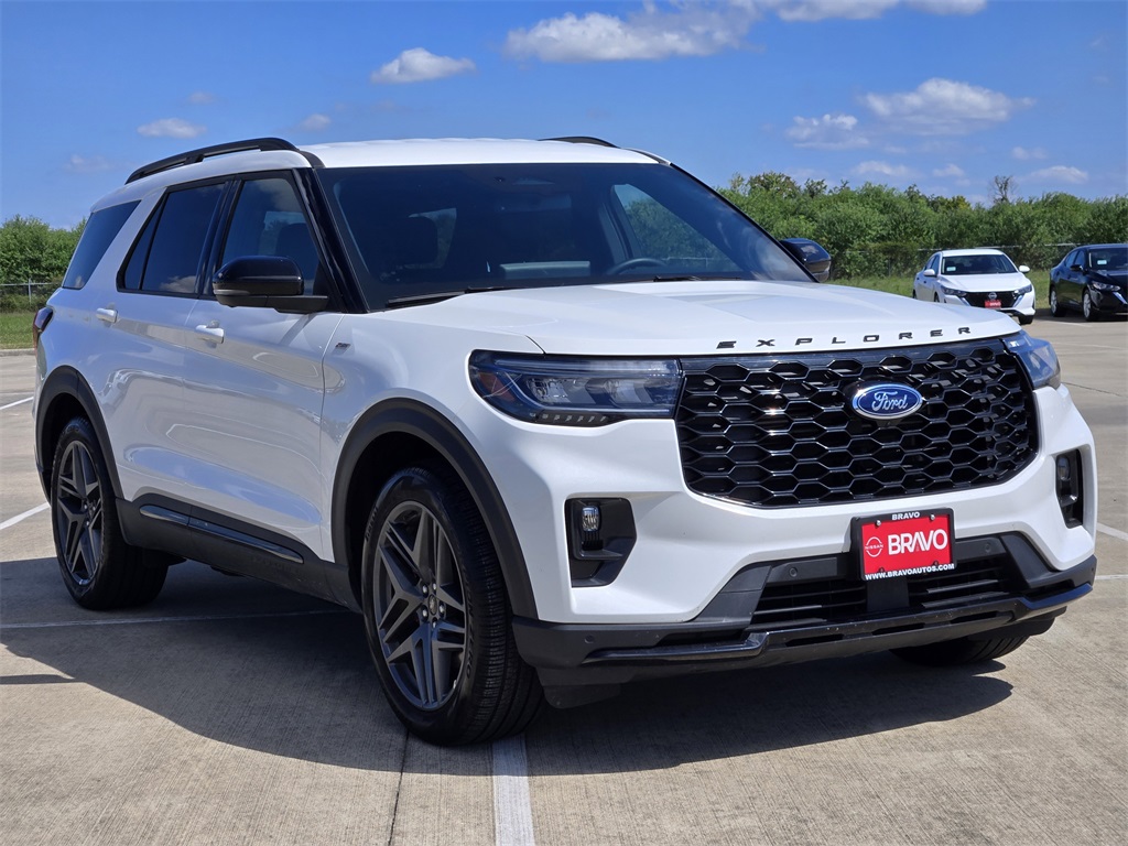 Priced below KBB Fair Purchase Price! White Metallic 2025 Ford Explorer ST-Line 2.3L EcoBoost I-4 10-Speed Automatic