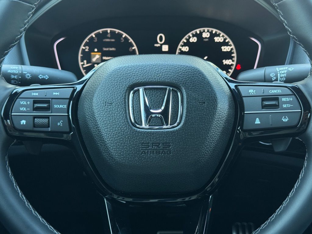 st, Bumpers: body-color, Cloth/Leatherette Seating Surfaces, Delay-off headlights, Driver door bin, Driver vanity mirror, Dual front impact airbags, Dual front side impact airbags, Electronic Stability Control, Emergency communication system: HondaLink, Exterior Parking Camera Rear, Four wheel independent suspension, Front anti-roll bar, Front Bucket Seats, Front Center Armrest, Front reading lights, Fully automatic headlights, Heated door mirrors, Illuminated entry, Knee airbag, Leather Shift Knob, Leather steering wheel, Low tire pressure warning, Occupant sensing airbag, Outside temperature display, Overhead airbag, Panic alarm, Passenger door bin, Passenger vanity mirror, Power door mirrors, Power steering, Power windows, Radio data system, Radio: 180-Watt Audio System, Rear anti-roll bar, Rear seat center armrest, Rear side impact airbag, Rear window defroster, Remote keyless entry, Security system, Speed control, Speed-sensing steering, Split folding rear seat, Steering wheel mounted audio controls, Tachometer, Telescoping steering wheel, Tilt steering wheel, Traction control, Trip computer, Wheels: 18" Gloss Black Alloy, **ADAPTIVE CRUISE CONTROL**, APPLE CARPLAY, Black w/Cloth Seating Surfaces, Alloy wheels.