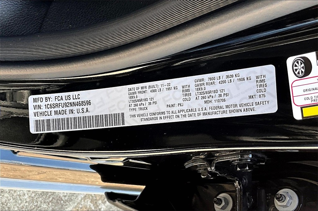 Diamond Black Crystal Pearlcoat 2022 Ram 1500 TRX 4WD 8-Speed Automatic 6.2L Supercharged HEMI V8 SRT
