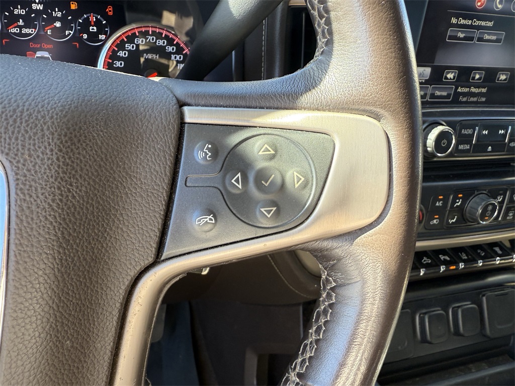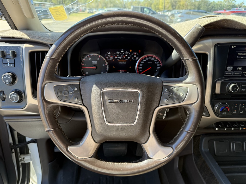 ator Grille/Front Bumper Opening Cover, 110-Volt AC Power Outlet, 150 Amps Alternator, 18" Chromed Aluminum Wheels, 4-Wheel Disc Brakes, 7 Speakers, 8" Multi-Color Driver Instrument Info Display, ABS brakes, Adjustable pedals, Air Conditioning, Alloy wheels, AM/FM radio: SiriusXM, Auto-dimming door mirrors, Auto-Dimming Inside Rear-View Mirror, Auto-dimming Rear-View mirror, Automatic temperature control, Black Frame-Mounted Front Recovery Hooks, Black Pwr-Adjustable Heated Outside Mirrors (DISC), Bluetooth® For Phone, Body-Color Front Bumper, Bodyside moldings, BOSE Sound w/7 Speaker System, Brake assist, Bumpers: body-color, Camper & 5th Wheel Trailer Wiring Provisions, CD player, Chrome Bodyside Moldings, Chrome Door Handles, Chrome wheels, Color-Keyed Carpeted Floor Mats, Color-Keyed Carpeting Floor Covering, Compass, Deep-Tinted Glass, Delay-off headlights, Denali Decor, Driver & Front Passenger Visors, Driver door bin, Driver vanity mirror, Dual front impact airbags, Dual front side impact airbags, Dual-Zone Automatic Climate Control, Electric Rear-Window Defogger, Electronic Shift Transfer Case, Electronic Stability Control, Emergency communication system: OnStar Directions & Connections, Engine Block Heater, Exhaust Brake, Exterior Parking Camera Rear, EZ-Lift & Lower Tailgate, Floor Console w/Dual Cup Holders, Front anti-roll bar, Front Center Armrest, Front dual zone A/C, Front fog lights, Front Full Feature Bucket Seats, Front Halogen Fog Lamps, Front License Plate Kit, Front reading lights, Front wheel independent suspension, Fully automatic headlights, Garage door transmitter, Heated & Cooled Front Bucket Seats, Heated door mirrors, Heated Driver & Front Passenger Seats, Heated front seats, Heated Leather Steering Wheel, Heated Power-Adjustable Outside Mirrors, Heated steering wheel, Illuminated entry, Low tire pressure warning, Manual Tilt-Wheel/Telescoping Steering Column, Memory seat, Navigation System, Occupant sensing airbag, OnStar 4G LTE Wi-Fi Hotspot, OnStar 6 Months Directions/Connections Plan, Outside temperature display, Overhead airbag, Overhead console, Panic alarm, Passenger door bin, Passenger vanity mirror, Perforated Leather Appointed Seat Trim, Power door mirrors, Power driver seat, Power passenger seat, Power Sliding Rear Window w/Defogger, Power steering, Power windows, Power Windows w/Driver Express Up & Down, Power-Adjustable Pedals For Accelerator & Brake, Radio: AM/FM/SiriusXM w/Navigation, Rear 60/40 Folding Bench Seat (Folds Up), Rear Body-Color Bumper w/Bumper CornerSteps, Rear reading lights, Rear seat center armrest, Rear step bumper, Rear Vision Camera w/Dynamic Guide Lines, Rear Wheelhouse Liners, Rear window defroster, Remote Keyless Entry, Remote keyless entry, Remote Vehicle Starter System, Security system, Single Slot CD/MP3 Player, SiriusXM Satellite Radio, Speed control, Split folding rear seat, Steering Wheel Audio Controls, Steering wheel mounted audio controls, Tachometer, Telescoping steering wheel, Theft Deterrent System (Unauthorized Entry), Tilt steering wheel, Traction control, Trip computer, Turn signal indicator mirrors, Ultrasonic Front & Rear Park Assist, Universal Home Remote, Variably intermittent wipers, Ventilated front seats, Voltmeter, and Wheels: 20" Chromed Aluminum.