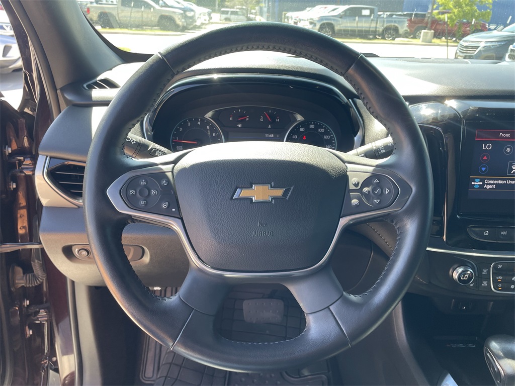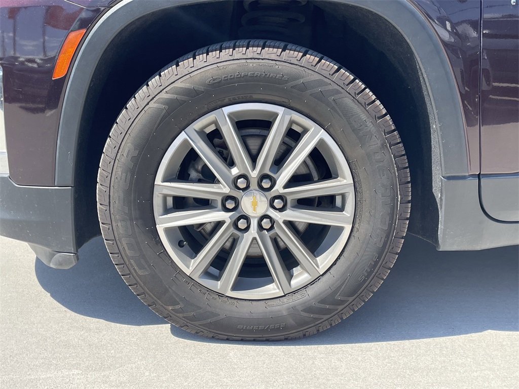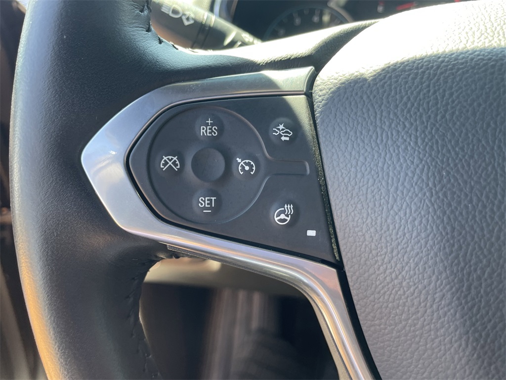 ers, 6-Speaker Audio System Feature, 6-Way Power Front Passenger Seat, 8-Way Power Driver Seat Adjuster, ABS brakes, Air Conditioning, Alloy wheels, AM/FM radio: SiriusXM with 360L, Apple CarPlay/Android Auto, Auto High-beam Headlights, Automatic temperature control, Black Roof Rails, Brake assist, Bumpers: body-color, Compass, Delay-off headlights, Driver door bin, Driver vanity mirror, Dual front impact airbags, Dual front side impact airbags, Electronic Stability Control, Emergency communication system: OnStar Guidance, Exterior Parking Camera Rear, Four wheel independent suspension, Front anti-roll bar, Front Bucket Seats, Front Center Armrest, Front dual zone A/C, Front Passenger 2-Way Power Lumbar, Front reading lights, Fully automatic headlights, Garage door transmitter, Heated door mirrors, Heated front seats, Heated steering wheel, Illuminated entry, Leather steering wheel, Leather-Appointed Seat Trim, Low tire pressure warning, Not Equipped w/Heated Steering Wheel, Not Equipped w/Rear Park Assist, Occupant sensing airbag, Outside temperature display, Overhead airbag, Overhead console, Panic alarm, Passenger door bin, Passenger vanity mirror, Power door mirrors, Power Driver Lumbar Control, Power driver seat, Power Liftgate, Power passenger seat, Power steering, Power windows, Premium audio system: Chevrolet Infotainment 3 Plus, Radio data system, Radio: Chevrolet Infotainment 3 Plus System, Rear air conditioning, Rear anti-roll bar, Rear reading lights, Rear window defroster, Rear window wiper, Remote keyless entry, Roof rack: rails only, Security system, SiriusXM w/360L, Speed control, Speed-sensing steering, Spoiler, Steering wheel mounted audio controls, Tachometer, Telescoping steering wheel, Tilt steering wheel, Traction control, Trip computer, Turn signal indicator mirrors, Variably intermittent wipers, Voltmeter, and Wheels: 18" Bright Silver-Painted Aluminum.
