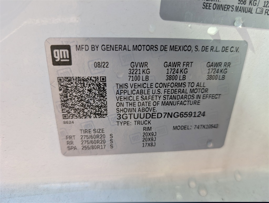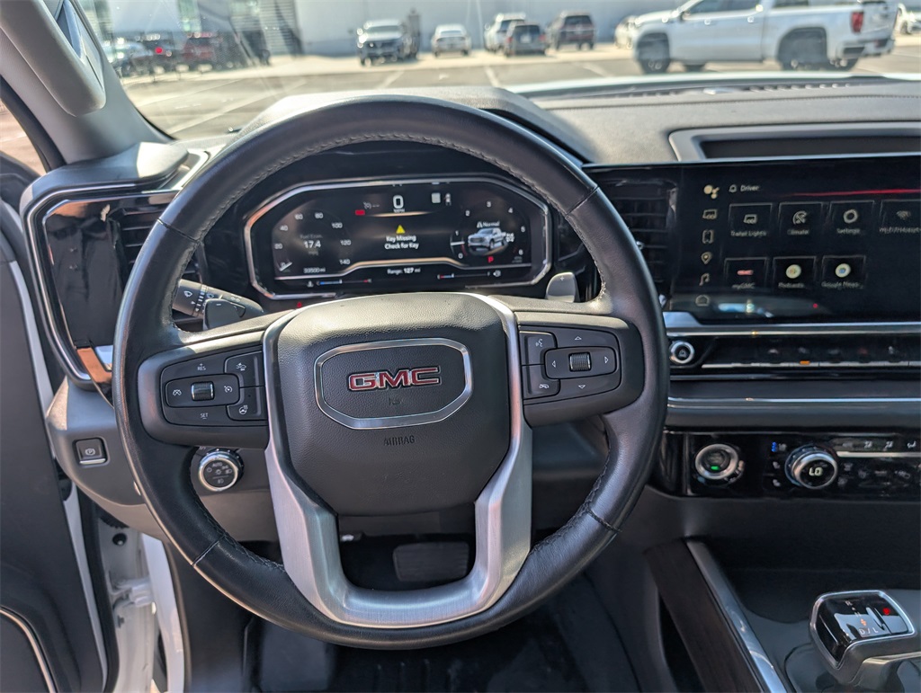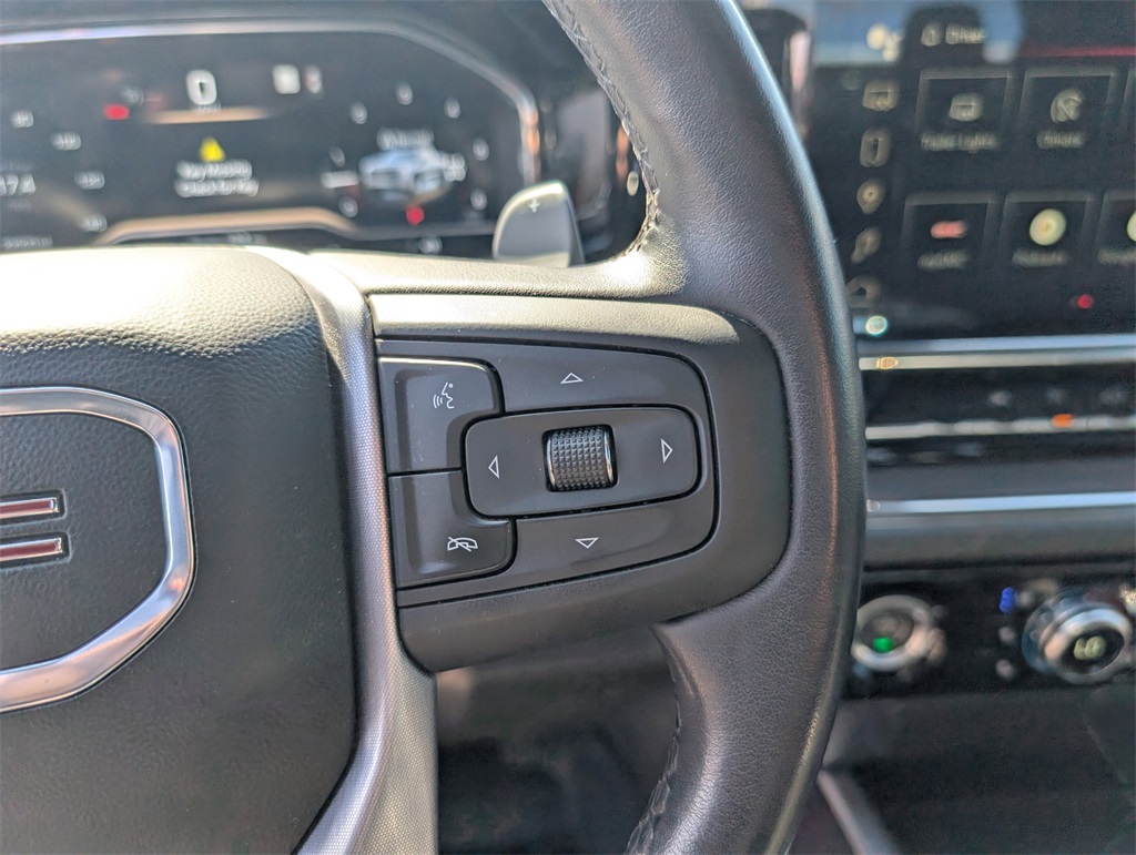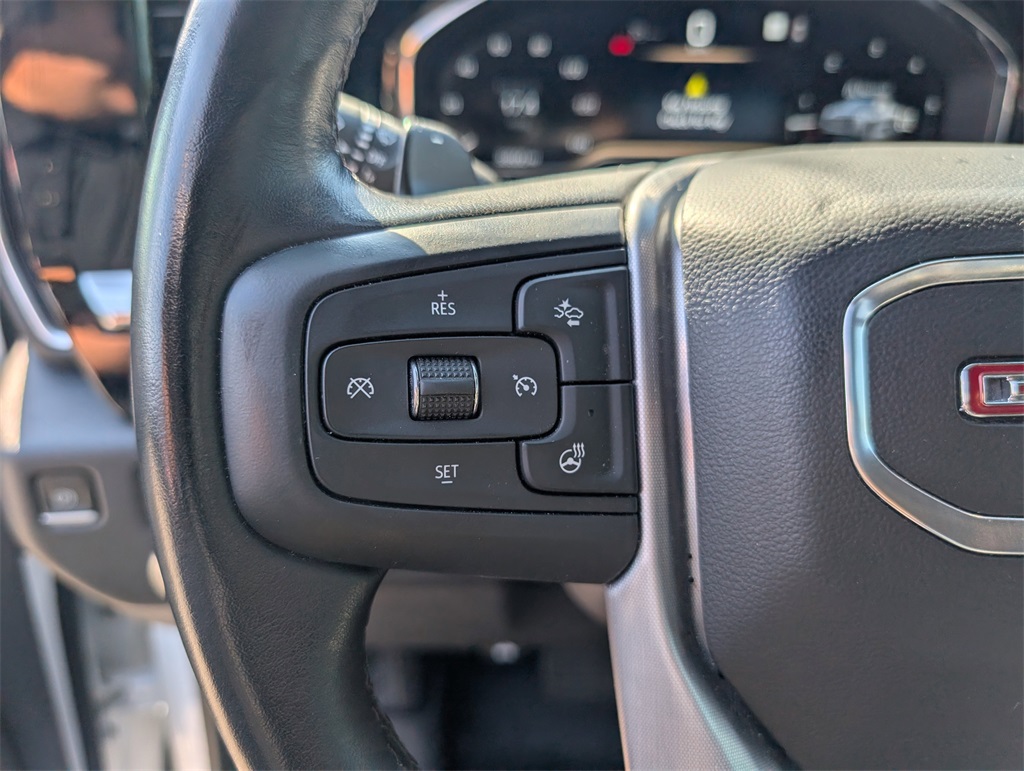o-Locking Rear Differential, Auxiliary External Transmission Oil Cooler, Chrome Header & Chrome Grille Insert Bars, Color-Keyed Carpeting Floor Covering, Compass, Deep-Tinted Glass, Electric Rear-Window Defogger, Electrical Steering Column Lock, Front Frame-Mounted Black Recovery Hooks, Front Rainsensing Wipers, GMC Connected Access Capable, HD Rear Vision Camera, Heated Steering Wheel, Keyless Open & Start, LED Cargo Area Lighting, Manual Tilt-Wheel & Telescoping Steering Column, OnStar & GMC Connected Services Capable, Perimeter Lighting, Power Door Locks, Power Front Passenger Windows w/Express Up/Down, Power Front Windows w/Driver Express Up/Down, Power Rear Windows w/Express Down, Push Button Start, Rear Wheelhouse Liners, Remote Vehicle Starter System, SiriusXM w/360L, Steering Wheel Audio Controls, Theft Deterrent System (Unauthorized Entry), Wi-Fi Hotspot Capable, and Wireless Phone Projection), SLT Convenience Package (2 Charge/Data USB Ports Inside Center Console, Electronic Precision Shift, Floor-Mounted Center Console, Front Bucket Seats, Power Rake & Telescoping Steering Column, Premium Bose 7-Speaker Sound System, Ventilated Driver & Front Passenger Seats, and Wireless Charging), Standard Suspension Package, Trailering Package (Hitch Guidance), 10-Speed Automatic, 4WD, Jet Black Leather, 10-Way Power Driver Seat Adjuster w/Lumbar, 10-Way Power Passenger Seat Adjuster w/Lumbar, 20" Polished Aluminum Wheels, 3 Years of OnStar & Connected Services Plan, 3.23 Rear Axle Ratio, 4-Wheel Disc Brakes, 6 Speakers, ABS brakes, Air Conditioning, Alloy wheels, AM/FM radio: SiriusXM with 360L, Apple CarPlay/Android Auto, Auto High-beam Headlights, Auto-dimming door mirrors, Auto-dimming Rear-View mirror, Automatic Emergency Braking, Automatic temperature control, Brake assist, Buckle to Drive, Bumpers: chrome, Chrome Wheel To Wheel Assist Steps, Delay-off headlights, Driver door bin, Driver Memory, Driver vanity mirror, Dual front impact airbags, Dual front side impact airbags, Electronic Stability Control, Emergency communication system: OnStar and GMC Connected Services capable, Exterior Parking Camera Rear, Following Distance Indicator, Forward Collision Alert, Front 40/20/40 Split-Bench Seat, Front anti-roll bar, Front Center Armrest w/Storage, Front dual zone A/C, Front fog lights, Front License Plate Kit, Front Pedestrian Braking, Front reading lights, Front wheel independent suspension, Fully automatic headlights, Heated door mirrors, Heated Driver & Front Outboard Passenger Seating, Heated front seats, Heated steering wheel, Illuminated entry, IntelliBeam Automatic High Beam On/Off, Lane Keep Assist w/Lane Departure Warning, Low tire pressure warning, Memory seat, Navigation System, Not Equip w/Heat & Vent Seat Cushion Blower Motor, Not Equipped w/Dynamic Fuel Management, Not Equipped w/Steering Column Lock, Occupant sensing airbag, Outside temperature display, Overhead airbag, Overhead console, Panic alarm, Passenger door bin, Passenger vanity mirror, Perf Leather-Appointed Front Outboard Seat Trim, Power door mirrors, Power driver seat, Power passenger seat, Power steering, Power windows, Premium audio system: GMC Infotainment System, Radio data system, Radio: Premium GMC Infotainment Audio System, Rain sensing wipers, Rear reading lights, Rear seat center armrest, Rear step bumper, Rear window defroster, Remote keyless entry, Security system, Speed control, Speed-sensing steering, Split folding rear seat, Steering wheel moun