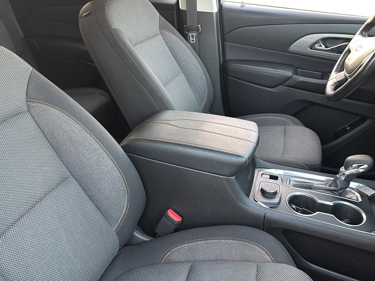 \n\nIt also has: \n\n\n\n\nEMISSIONS, FEDERAL REQUIREMENTS, ENGINE, 3.6L V6, SIDI, VVT, TRANSMISSION, 9-SPEED AUTOMATIC, WHEELS, 18 (45.7 CM) BRIGHT SILVER PAINTED ALUMINUM, TIRES, P255/65R18 ALL-SEASON BLACKWALL, SEATING, 7-PASSENGER (2-2-3 SEATING CONFIGURATION), MOSAIC BLACK METALLIC, SEATS, FRONT BUCKET, JET BLACK, PREMIUM CLOTH SEAT TRIM, AUDIO SYSTEM, CHEVROLET INFOTAINMENT 3 PLUS SYSTEM, CONVENIENCE AND DRIVER CONFIDENCE PACKAGE, CHEVY SAFETY ASSIST, LPO, BRIGHT WHEEL LOCKS, HEADLAMPS, INTELLIBEAM AUTO HIGH BEAM CONTROL, LICENSE PLATE FRONT MOUNTING PACKAGE, LIFTGATE, REAR POWER, SEATS, HEATED DRIVER AND FRONT PASSENGER, STEERING WHEEL, HEATED, DISPLAY, 4.2 DRIVER INSTRUMENT INFORMATION, ENHANCED, MULTI-COLOR, REMOTE START, UNIVERSAL HOME REMOTE, REAR PARK ASSIST WITH AUDIBLE WARNING, LANE CHANGE ALERT, LANE KEEP ASSIST WITH LANE DEPARTURE WARNING, FOLLOWING DISTANCE INDICATOR, FORWARD COLLISION ALERT, AUTOMATIC EMERGENCY BRAKING, REAR CROSS TRAFFIC ALERT, FRONT PEDESTRIAN BRAKING\n \n\n