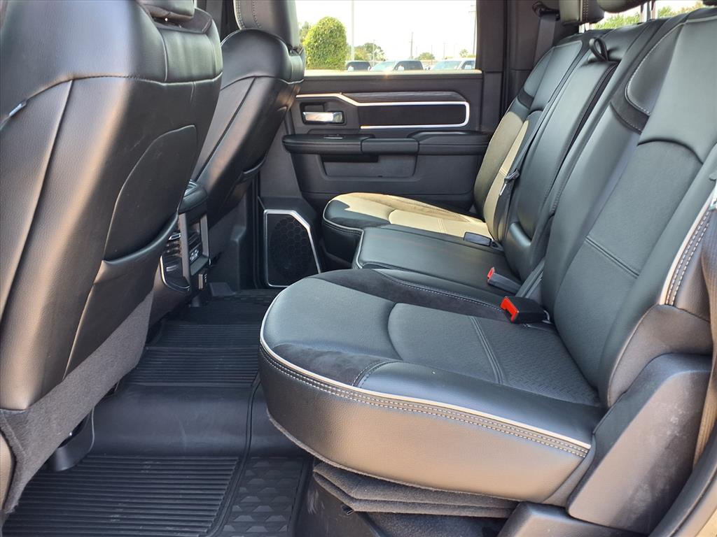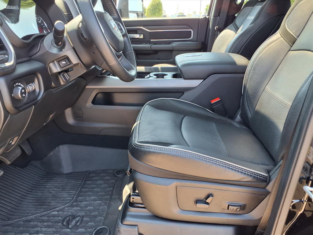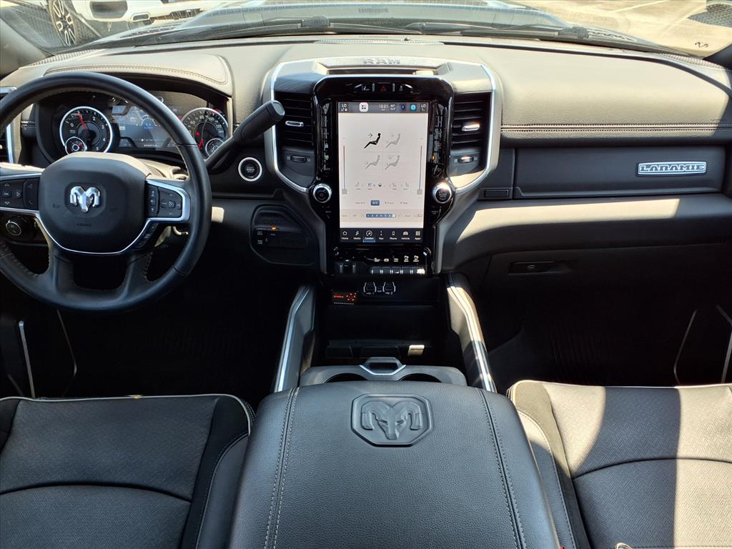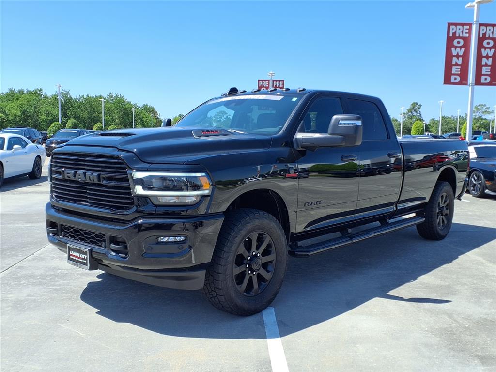 This 2024 RAM Crew Cab 4x4, 3500, Laramie is a state-of-the-art motorcar. It has driven 25,009 miles and is powered by a 6.7 liter 6 cylinder engine with a turbo diesel. The exterior is a diamond black crystal pearlcoat and the interior is black, offering a luxurious feel. Hill start assist and part time four wheel drive are just a few of the features that make this car stand out from the rest. Whether you're looking for a reliable mode of transportation or just something stylish to cruise aroun