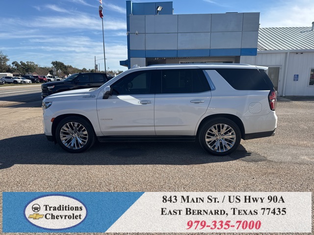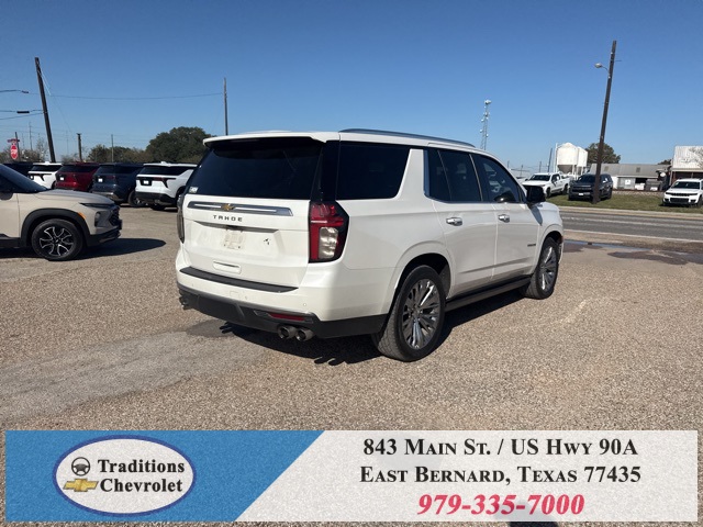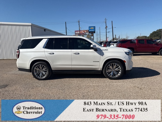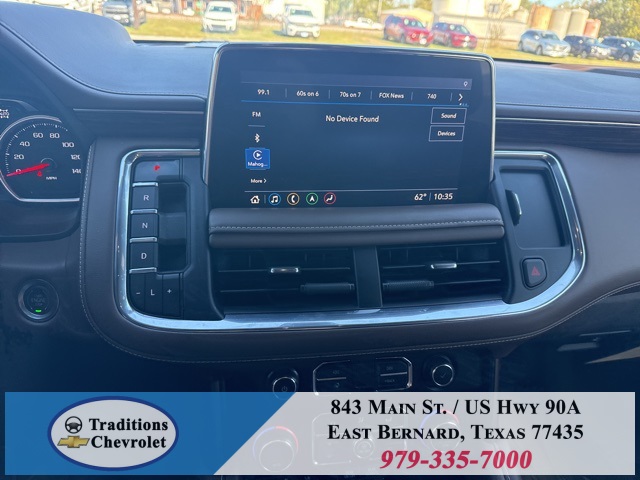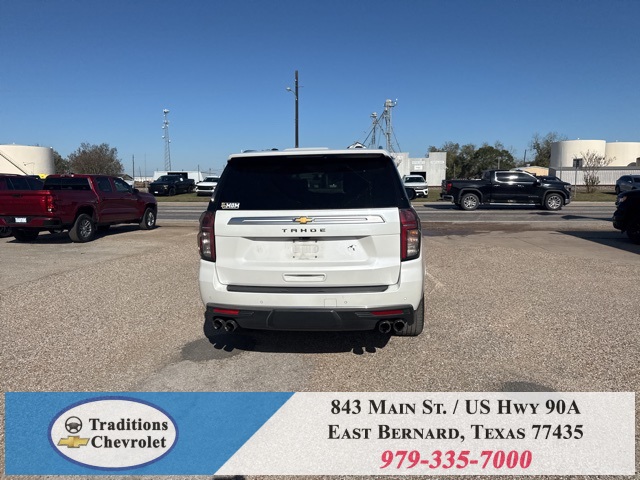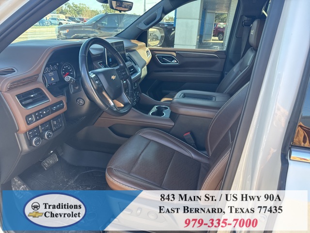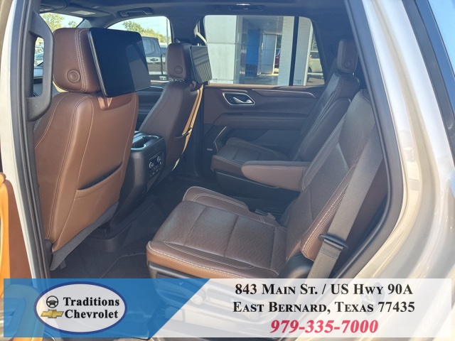 y Cooling System), Preferred Equipment Group 3LZ (15" Diagonal Multi-Color Head-Up Display, 1st & 2nd Row Color-Keyed Carpeted Floor Mats, 2 USB Data Ports, 2-Speed Active Electronic AutoTrac Transfer Case, 3rd Row 60/40 Power-Folding Split-Bench Seat, Automatic Heated Steering Wheel, Bright Front & Rear Door Sill Plates, Chrome Door Handles w/Body-Color Strip, Color-Keyed Carpeting Floor Covering, Driver & Front Outboard Passenger Airbags, Dual Exhaust System, Enhanced Driver Information Center, Floor Console w/Storage Area, Front & Rear Park Assist, Hands-Free Rear Power Programmable Liftgate, HD Radio, HD Surround Vision, Heated 2nd Row Outboard Seats, Hill Descent Control, Infotainment Display, Inside Rearview Auto-Dimming Rear Camera Mirror, Lane Change Alert w/Side Blind Zone Alert, Lane Keep Assist w/Lane Departure Warning, Leather-Wrapped Steering Wheel, LED Daytime Running Lamps, Memory Settings, Outside Heated Power-Adjustable Mirrors, Power Release 2nd Row Bucket Seats, Power Tilt & Telescopic Steering Column, Rear Camera Mirror Washer, Rear Cross Traffic Alert, Rear Pedestrian Alert, Remote Start, Safety Alert Seat, SiriusXM NavTraffic, SiriusXM Radio w/360L, and Universal Home Remote), 4WD, Jet Black/Mocha Leather, 10 Speakers, 12-Way Power Driver & Passenger Seat Adjusters, 1st, 2nd & 3rd Rows All-Weather Floor Liners (LPO), 3.23 Rear Axle Ratio, 3rd row seats: split-bench, 4-Wheel Disc Brakes, ABS brakes, Adaptive suspension, Air Conditioning, Alloy wheels, AM/FM radio: SiriusXM with 360L, Apple CarPlay/Android Auto, Auto High-beam Headlights, Auto-dimming door mirrors, Auto-dimming Rear-View mirror, Auto-leveling suspension, Automatic temperature control, Bose 10-Speaker Centerpoint Surround Audio Sys Ft, Brake assist, Bumpers: body-color, Compass, Delay-off headlights, Driver door bin, Driver vanity mirror, Dual front impact airbags, Dual front side impact airbags, Electronic Stability Control, Emergency communication system: OnStar and Chevrolet connected services capable, Four wheel independent suspension, Front anti-roll bar, Front Bucket Seats, Front Center Armrest, Front dual zone A/C, Front High-Back Reclining Bucket Seats, Front reading lights, Fully automatic headlights, Garage door transmitter, Heads-Up Display, Heated & Ventilated Driver & Front Passenger Seats, Heated door mirrors, Heated Driver & Front Passenger Seats, Heated front seats, Heated rear seats, Heated steering wheel, Illuminated entry, Leather steering wheel, Low tire pressure warning, Magnetic Ride Control Suspension, Memory seat, Navigation System, Occupant sensing airbag, Outside temperature display, Overhead airbag, Overhead console, Panic alarm, Passenger door bin, Passenger vanity mirror, Perforated Leather Seat Trim, Power door mirrors, Power driver seat, Power Liftgate, Power passenger seat, Power steering, Power windows, Premium audio system: Chevrolet Infotainment 3, Radio: Chevrolet Infotainment 3 Premium System, Rain sensing wipers, Rear air conditioning, Rear anti-roll bar, Rear reading lights, Rear Seat Media System, Rear window defroster, Rear window wiper, Remote keyless entry, Roof rack: rails only, Security system, Set of 4 Wheel Locks (LPO), Speed control, Speed-sensing steering, Split folding rear seat, Spoiler, Steering wheel memory, Steering wheel mounted audio controls, Tachometer, Telescoping steering wheel, Tilt steering wheel, Traction control, Trip computer, Turn signal indicator mirrors, Variably intermittent wipers,