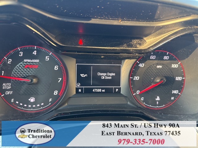 rim, Compass, Delay-off headlights, Driver door bin, Driver vanity mirror, Dual front impact airbags, Dual front side impact airbags, Electronic Stability Control, Emergency communication system: OnStar and Chevrolet connected services capable, Exterior Parking Camera Rear, Front anti-roll bar, Front Bucket Seats, Front Center Armrest, Front reading lights, Front wheel independent suspension, Fully automatic headlights, Heated door mirrors, Heated Driver & Front Passenger Seats, Heated front seats, Heated steering wheel, Illuminated entry, Low tire pressure warning, Occupant sensing airbag, Outside temperature display, Overhead airbag, Overhead console, Panic alarm, Passenger door bin, Passenger vanity mirror, Power door mirrors, Power steering, Power windows, Premium audio system: Chevrolet Infotainment 3, Radio data system, Radio: Chevrolet Infotainment 3 System w/AM/FM, Rear window defroster, Rear window wiper, Remote keyless entry, Security system, SiriusXM, Speed control, Split folding rear seat, Spoiler, Sport steering wheel, Steering wheel mounted audio controls, Tachometer, Telescoping steering wheel, Tilt steering wheel, Traction control, Trip computer, Variably intermittent wipers, and Wheels: 18" Black-Painted Machined Aluminum.