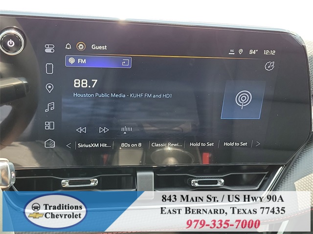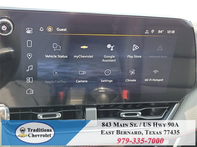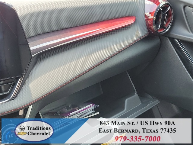 d Front Passenger Seat), Preferred Equipment Group 1RS, Navigation System, 2-Way Power Driver Lumbar Control Seat Adjuster, 4-Wheel Disc Brakes, 5.81 Final Drive Axle Ratio, 6 Speakers, ABS brakes, Air Conditioning, Alloy wheels, AM/FM radio: SiriusXM, Auto High-beam Headlights, Automatic temperature control, Brake assist, Bumpers: body-color, Compass, Delay-off headlights, Driver 8-Way Power Seat Adjuster, Driver door bin, Driver vanity mirror, Dual front impact airbags, Dual front side impact airbags, Electronic Stability Control, Emergency communication system: OnStar and Chevrolet connected services capable, Evotex Seat Trim, Four wheel independent suspension, Front anti-roll bar, Front Bucket Seats, Front Center Armrest, Front dual zone A/C, Front Passenger 4-Way Manual Seat Adjuster, Front reading lights, Fully automatic headlights, Garage door transmitter, Heated door mirrors, Heated Driver & Front Passenger Seats, Heated front seats, Illuminated entry, Low tire pressure warning, Mosaic Black Metallic Roof, Occupant sensing airbag, Outside temperature display, Overhead airbag, Overhead console, Panic alarm, Passenger door bin, Passenger vanity mirror, Power door mirrors, Power driver seat, Power Liftgate, Power steering, Power windows, Premium audio system: Chevrolet Infotainment 3, Radio data system, Radio: 11.3" Diagonal Advanced Color LCD Display, Rain sensing wipers, Rear anti-roll bar, Rear reading lights, Rear seat center armrest, Rear window defroster, Rear window wiper, Remote keyless entry, Security system, SiriusXM w/360L Trial Subscription, Speed control, Speed-sensing steering, Split folding rear seat, Spoiler, Sport steering wheel, Steering wheel mounted audio controls, Tachometer, Telescoping steering wheel, Tilt steering wheel, Traction control, Trip computer, Variably intermittent wipers, and Wheels: 19" Carbon Flash Metallic Aluminum.