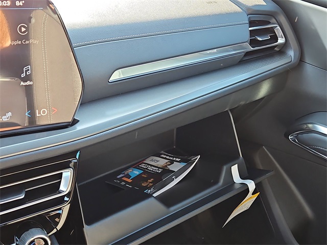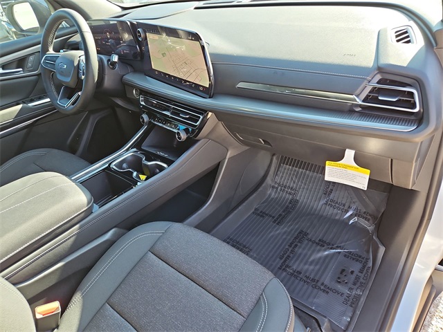 ster, 4-Wheel Disc Brakes, 6 Speakers, 6-Speaker Audio System Feature, 8-Way Power Driver Seat Adjuster, ABS brakes, Air Conditioning, Alloy wheels, AM/FM radio: SiriusXM with 360L, Apple CarPlay/Android Auto, Auto High-beam Headlights, Automatic temperature control, Brake assist, Bumpers: body-color, Child-Seat-Sensing Airbag, Compass, Delay-off headlights, Driver door bin, Driver vanity mirror, Dual front impact airbags, Dual front side impact airbags, Electronic Stability Control, Emergency communication system: OnStar, Four wheel independent suspension, Front anti-roll bar, Front Bucket Seats, Front Center Armrest, Front dual zone A/C, Front reading lights, Fully automatic headlights, Heated door mirrors, Heated Driver & Front Passenger Seats, Heated front seats, Heated steering wheel, Illuminated entry, Low tire pressure warning, Navigation System, Occupant sensing airbag, Outside temperature display, Overhead airbag, Overhead console, Panic alarm, Passenger door bin, Passenger vanity mirror, Power door mirrors, Power driver seat, Power Liftgate, Power steering, Power windows, Premium Cloth Seat Trim, Radio data system, Radio: Audio System w/17.7" Diagonal Display, Rear air conditioning, Rear anti-roll bar, Rear reading lights, Rear window defroster, Rear window wiper, Remote keyless entry, Security system, SiriusXM w/360L Trial Subscription, Speed control, Speed-sensing steering, Spoiler, Steering wheel mounted audio controls, Tachometer, Telescoping steering wheel, Tilt steering wheel, Traction control, Trip computer, Turn signal indicator mirrors, Variably intermittent wipers, Voltmeter, and Wheels: 18" Grazen Metallic Machined-Face Aluminum.