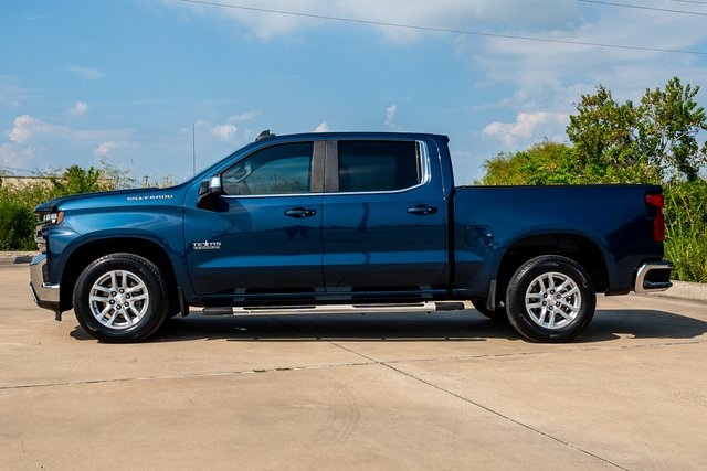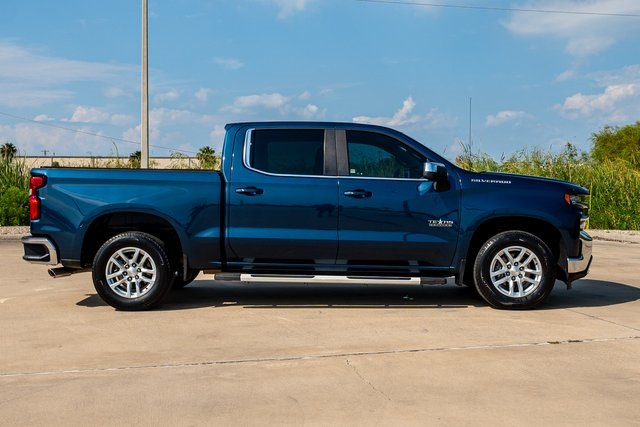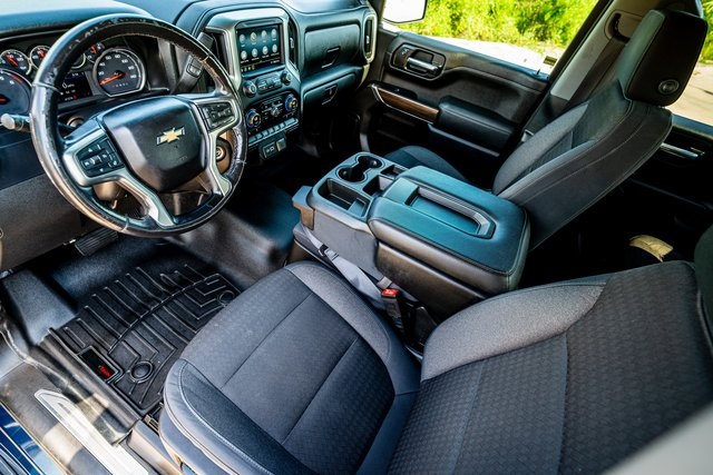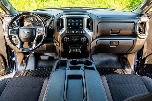 The 2019 Silverado LT is an all-new pickup with the essential truck appeal of chrome bumpers, center grille bar and mirror caps complemented by body-color door handles. LED headlamps and daytime running lamps add a signature look, as do available 20-inch machined-face aluminum wheels. LED headlamps are effective and efficient, require less energy output and are housed in a more narrow space than ever before.