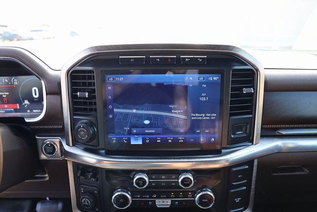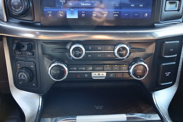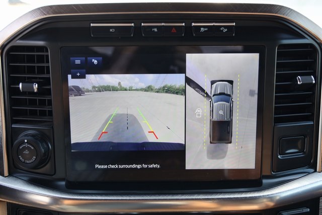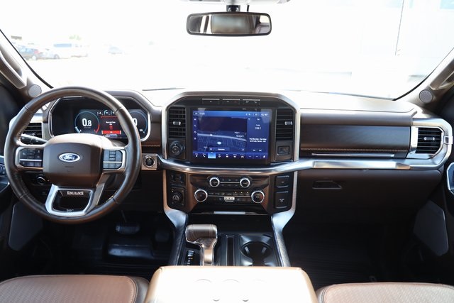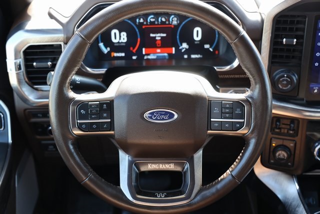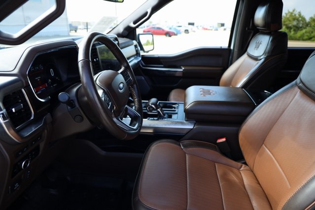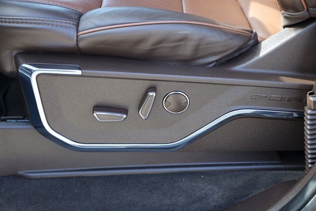 King Ranch Conveys Southwestern luxury at its finest, starting with the standard two-tone exterior. Inside, Kingsville leather trim covers the heated and ventilated 10-way power front seats, flow-through console lid and heated steering wheel. Seat backs, floor mats, center console lid, and 18-inch machined aluminum wheels with painted pockets are branded with the Running W logo of the historic King Ranch in Texas. Voice activated Navigation with SiriusXM Traffic and Travel Link helps guide you on your way. This King Ranch also features the 5.0 V-8 and the trailer tow package.