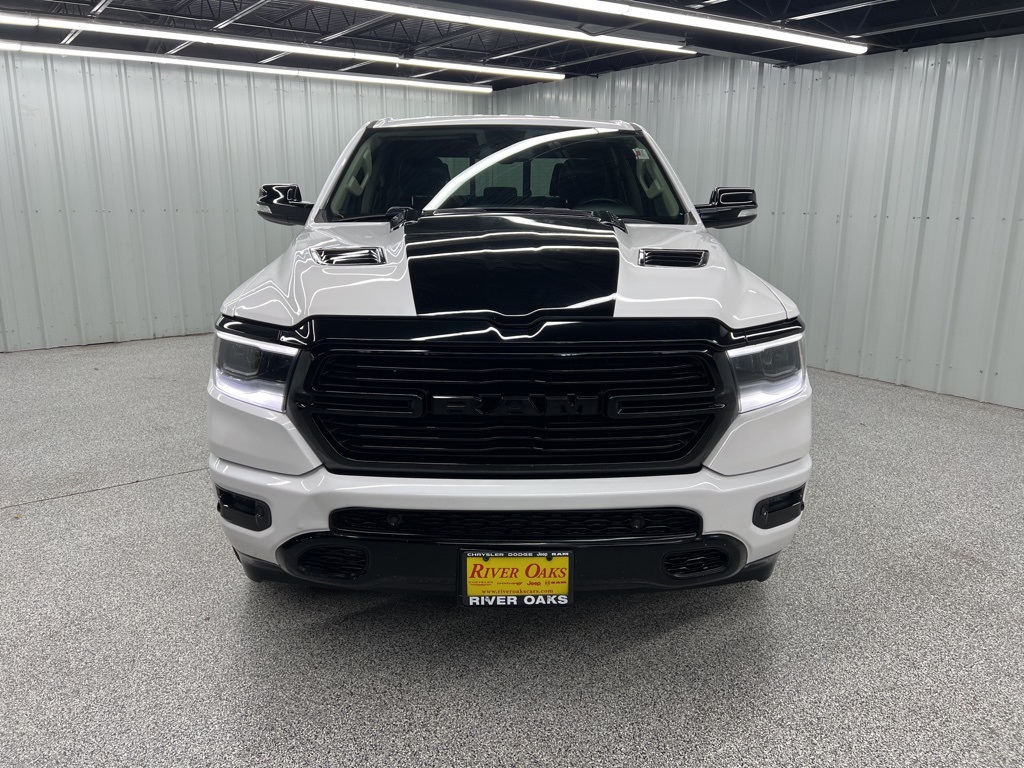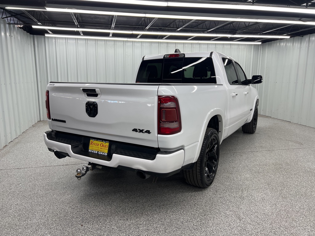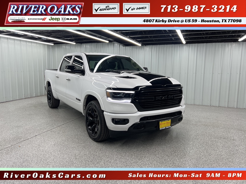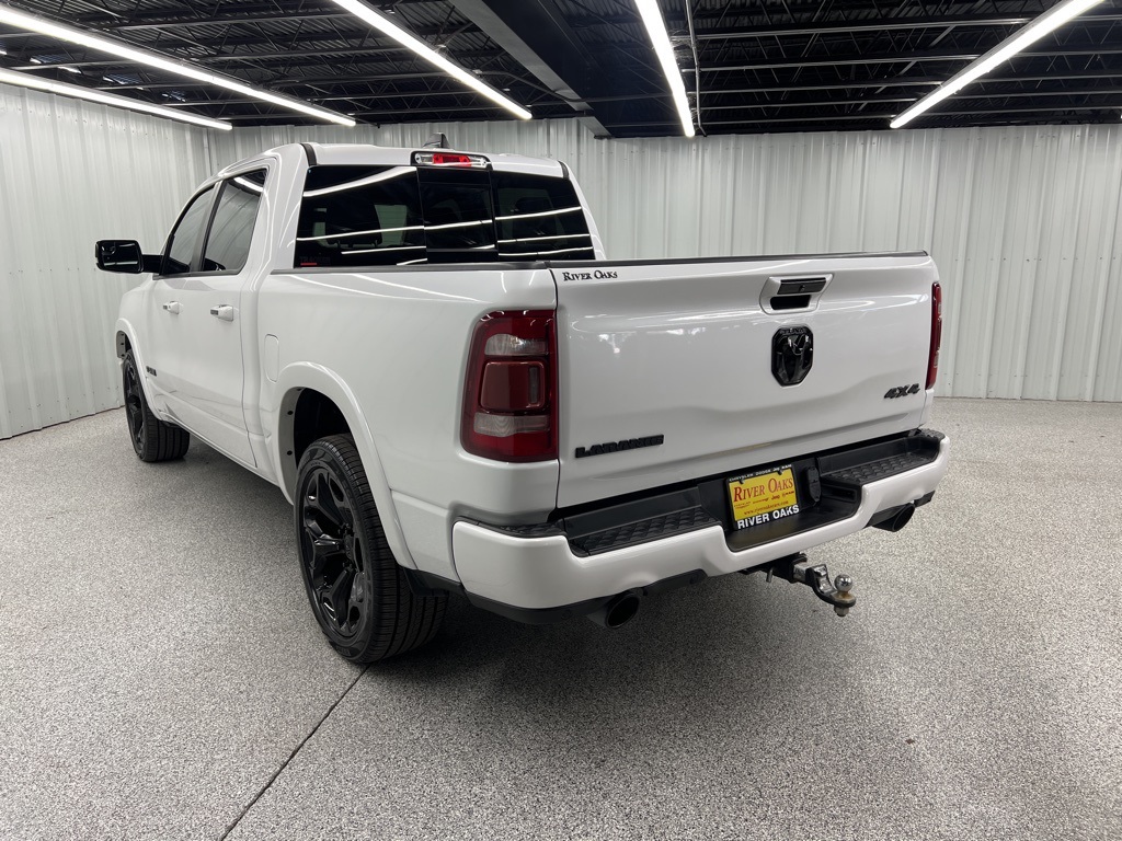 This 2020 Ram 1500 Laramie in Ivory White Tri-Coat Pearlcoat comes with the following features: HEMI 5.7L V8 Multi Displacement VVT 8-Speed Automatic 4WD Laramie Level 1 Equipment Group (Auto High Beam Headlamp Control, Blind Spot & Cross Path Detection, Foam Bottle Insert (Door Trim Panel), Rain Sensitive Windshield Wipers, Rear 60/40 Folding Split Recline Seat, Remote Tailgate Release, and Tailgate Ajar Warning Lamp), Quick Or