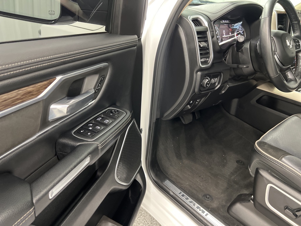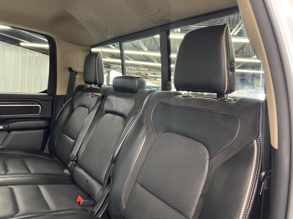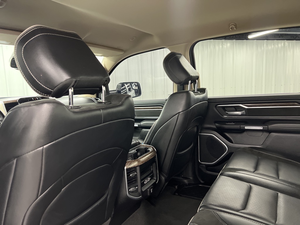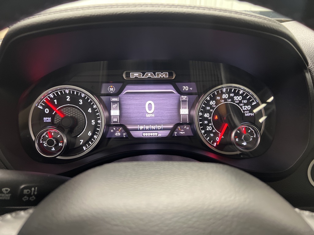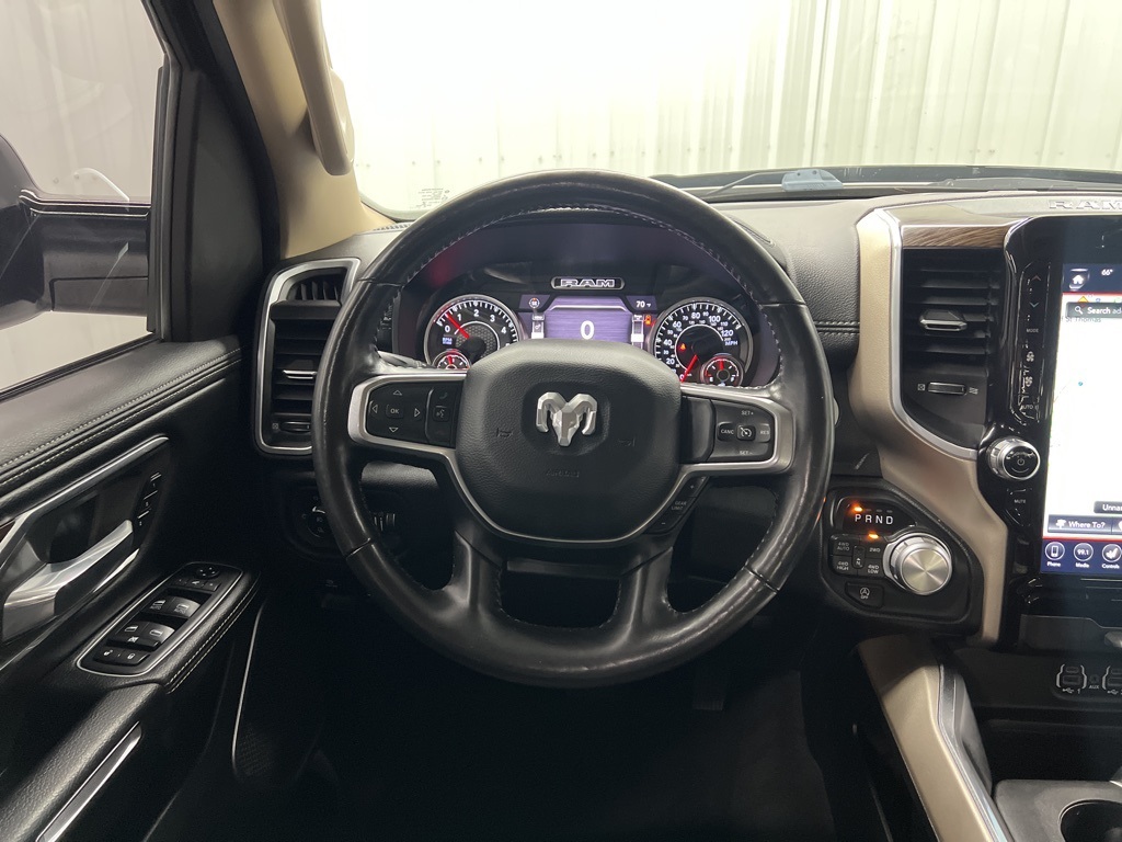 er Package 27H Laramie, #1 Seat Foam Cushion, 1-Yr SiriusXM Guardian Trial, 10 Speakers, 12" Touchscreen Display, 3 Rear Seat Head Restraints, 3.21 Rear Axle Ratio, 4 Way Front Headrests, 4-Wheel Disc Brakes, 48V Belt Starter Generator, 4G LTE Wi-Fi Hot Spot, 5-Year SiriusXM Traffic Service, 5-Year SiriusXM Travel Link Service, 8.4" Touchscreen Display, ABS brakes, Adjustable pedals, Air Conditioning, Alloy wheels, AM/FM radio: SiriusXM, Anti-Spin Differential Rear Axle, Apple CarPlay, Apple CarPlay/Android Auto, Audio memory, Auto-dimming door mirrors, Auto-dimming Rear-View mirror, Automatic temperature control, Brake assist, Bumpers: chrome, Compass, Delay-off headlights, Disassociated Touchscreen Display, Driver door bin, Driver Seat Memory, Driver vanity mirror, Dual front impact airbags, Dual front side impact airbags, Electronic Stability Control, For Details, Visit DriveUconnect.com, Front & Rear Rubber Floor Mats, Front anti-roll bar, Front Center Armrest w/Storage, Front dual zone A/C, Front fog lights, Front reading lights, Front Seat Back Map Pockets, Front wheel independent suspension, Fully automatic headlights, Garage door transmitter, Google Android Auto, GPS Antenna Input, GPS Navigation, HD Radio, Heated door mirrors, Heated Front Seats, Heated front seats, Heated Steering Wheel, Heated steering wheel, Illuminated entry, Integrated Center Stack Radio, Leather steering wheel, Leather Trim 40/20/40 Bench Seat, Low tire pressure warning, Memory seat, Occupant sensing airbag, Outside temperature display, Overhead airbag, Overhead console, Panic alarm, ParkSense Front/Rear Park Assist w/Stop (DISC), ParkView Rear Back-Up Camera, Passenger door bin, Passenger vanity mirror, Pedal memory, Power 4-Way Driver Lumbar Adjust, Power 4-Way Passenger Lumbar Adjust, Power 8-Way Driver & Passenger Seats, Power door mirrors, Power driver seat, Power passenger seat, Power steering, Power windows, Radio data system, Radio: Uconnect 12 w/Navigation, Radio: Uconnect 4 w/8.4" Display, Rear anti-roll bar, Rear seat center armrest, Rear step bumper, Rear window defroster, Remote keyless entry, Security system, SiriusXM Satellite Radio, SiriusXM Traffic Plus, SiriusXM Travel Link, SiriusXM w/360L, Speed control, Split folding rear seat, Steering wheel mounted audio controls, Tachometer, Telescoping steering wheel, Tilt steering wheel, Traction control, Trip computer, Turn signal indicator mirrors, USB Host Flip, Variably intermittent wipers, Ventilated Front Seats, Ventilated front seats, Voltmeter, and Wheels: 18" x 8" Aluminum Base PainteD.