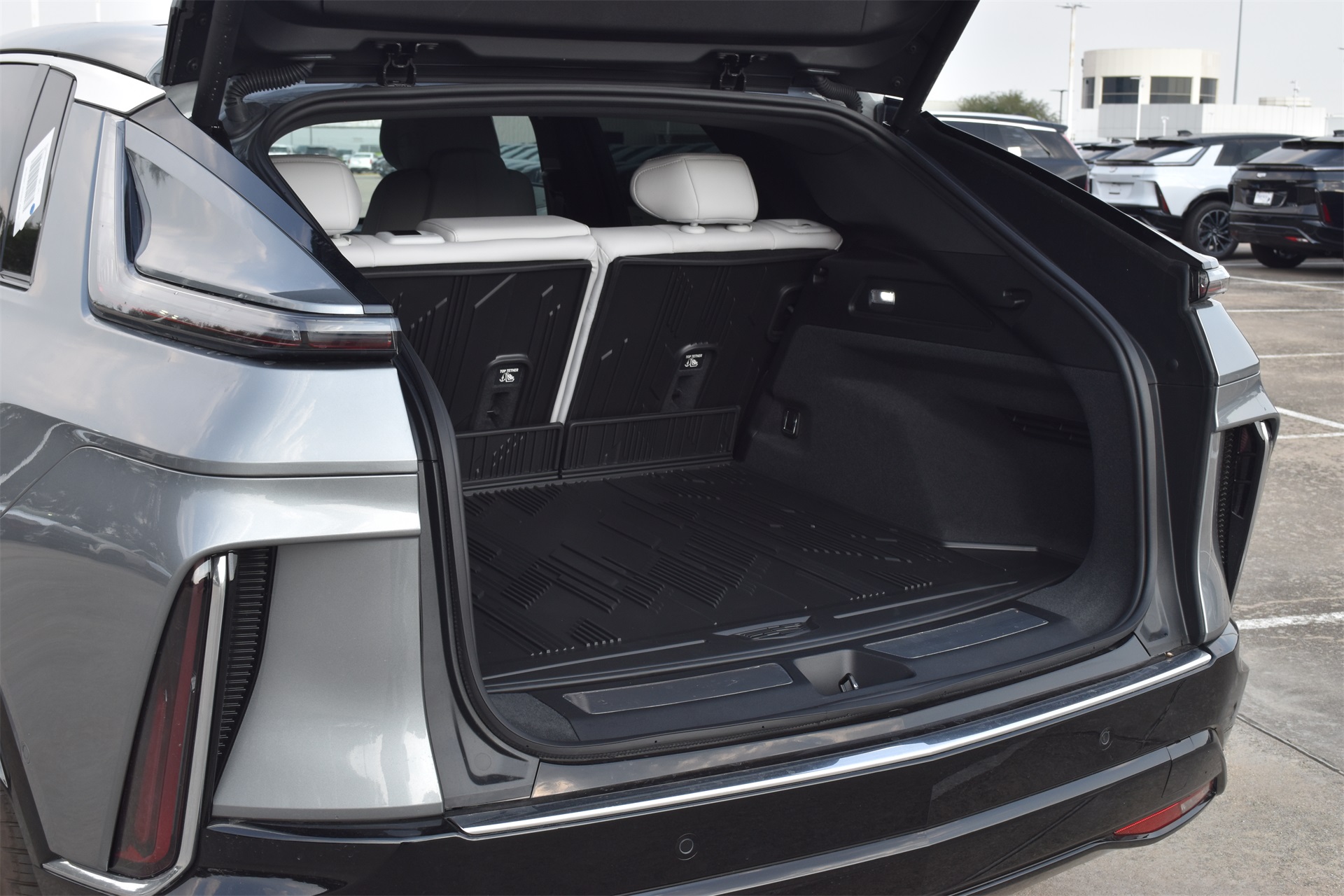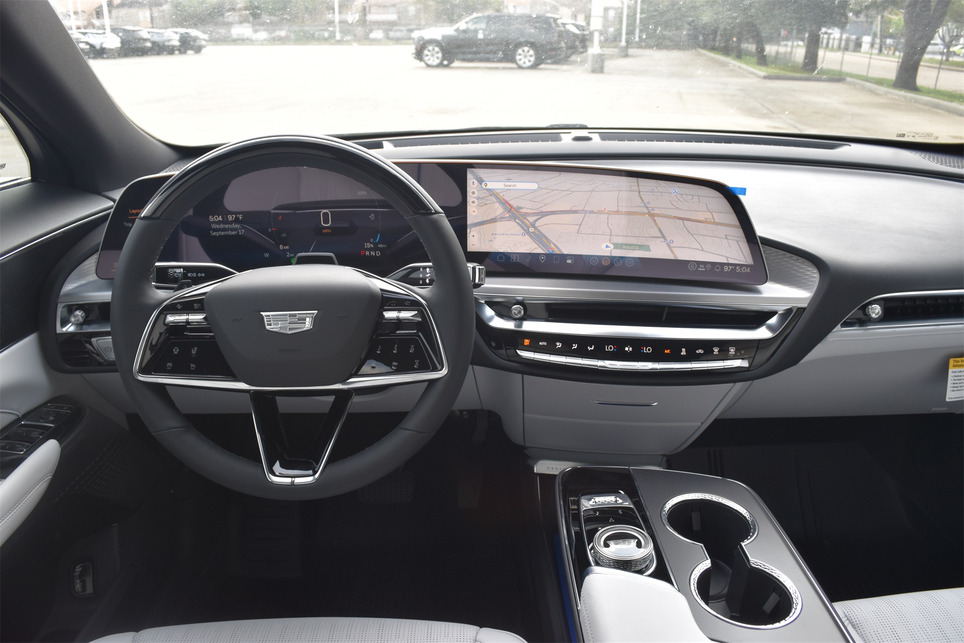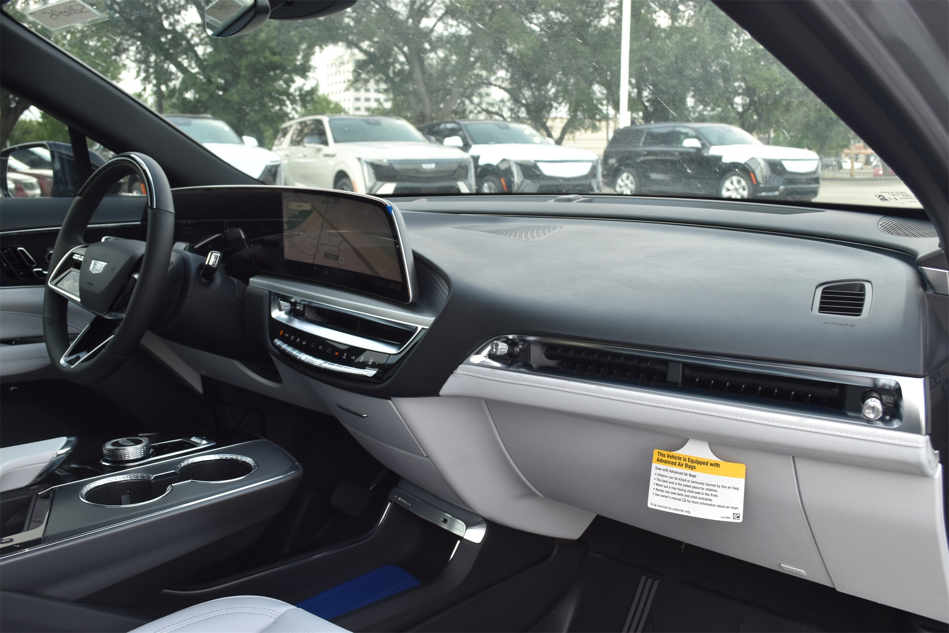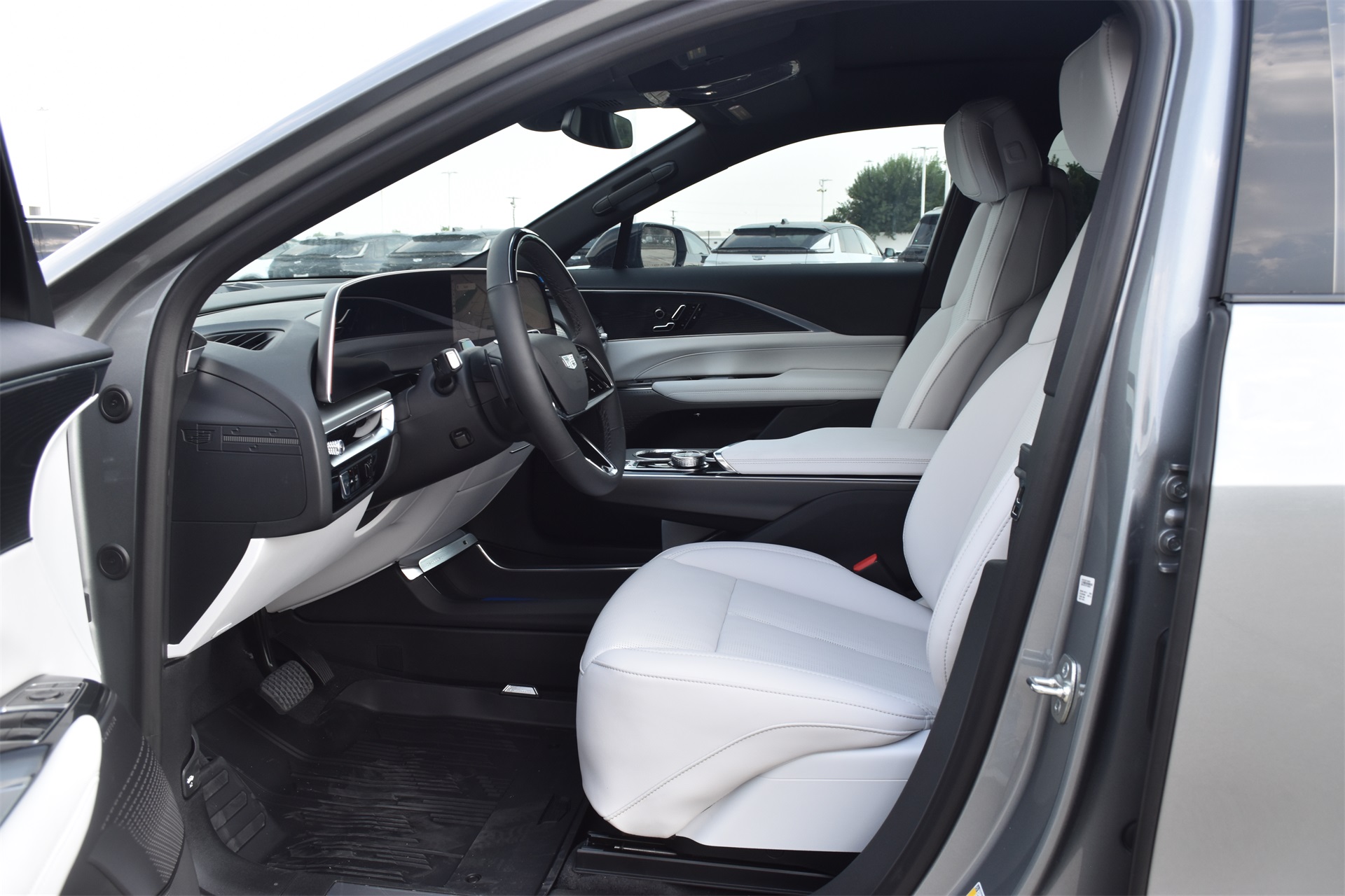 M radio: SiriusXM with 360L, Apple CarPlay/Android Auto, Auto High-beam Headlights, Auto-dimming door mirrors, Auto-dimming Rear-View mirror, Automatic temperature control, Brake assist, Bumpers: body-color, Compass, Delay-off headlights, Driver & Front Passenger Heated Seats, Driver 4-Way Power Lumbar Seat Adjustment, Driver door bin, Driver vanity mirror, Dual front impact airbags, Dual front side impact airbags, Electronic Stability Control, Emergency communication system: OnStar and Cadillac connected services capable, Four wheel independent suspension, Front & Rear 5-Link Suspension, Front anti-roll bar, Front Bucket Seats, Front Center Armrest, Front dual zone A/C, Front License Plate Bracket, Front Passenger 4-Way Power Lumbar Seat Adjustment, Front Passenger Seat Memory, Front reading lights, Fully automatic headlights, Garage door transmitter, GM PowerUp 2 Charger (LPO), Google Built-In, Heated door mirrors, Heated front seats, Heated steering wheel, Hitch Guidance w/Trailering Assist Guideline, Hitch View, Illuminated entry, Inteluxe Seat Trim, Knee airbag, Leather steering wheel, Low tire pressure warning, Memory seat, Mobile Service Plus - 1 Year, NACS DC Adapter (LPO), Navigation system: Google Automotive Services Capable, Occupant sensing airbag, Outside temperature display, Overhead airbag, Overhead console, Panic alarm, Passenger door bin, Passenger vanity mirror, Power door mirrors, Power driver seat, Power Liftgate, Power passenger seat, Power steering, Power windows, Radio data system, Radio: Infotainment Experience, Rain sensing wipers, Rear anti-roll bar, Rear reading lights, Rear seat center armrest, Rear window defroster, Remote keyless entry, Security system, SiriusXM w/360L Trial Subscription, Speed control, Speed-sensing steering, Split folding rear seat, Spoiler, Steering wheel memory, Steering wheel mounted audio controls, Telescoping steering wheel, Tilt steering wheel, Traction control, Trip computer, Turn signal indicator mirrors, Variably intermittent wipers, Wheels: 20" Split 6-Spoke Alloy, and Wireless Apple CarPlay/Wireless Android Auto.