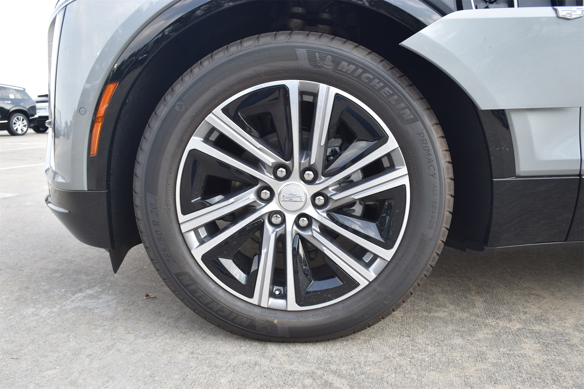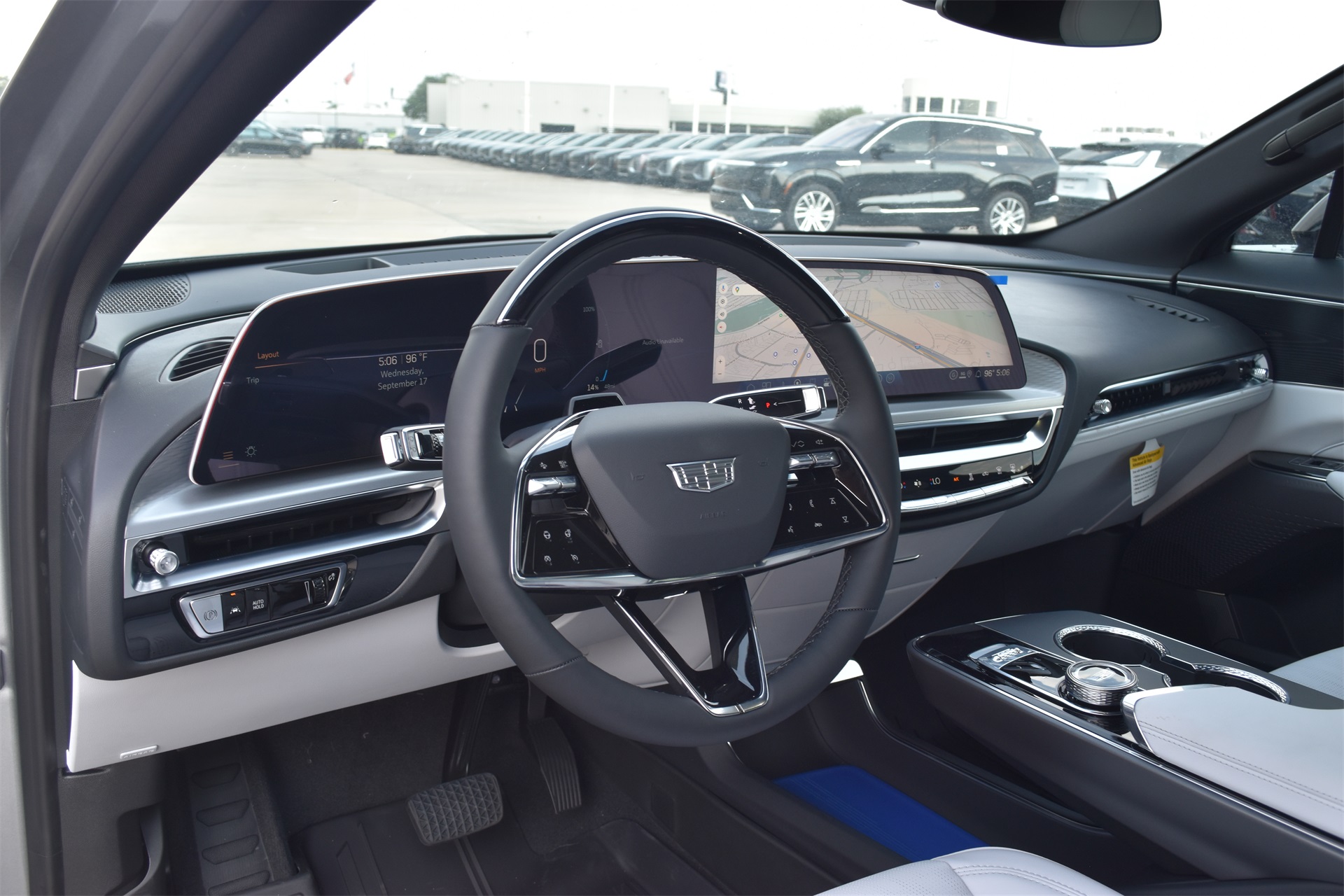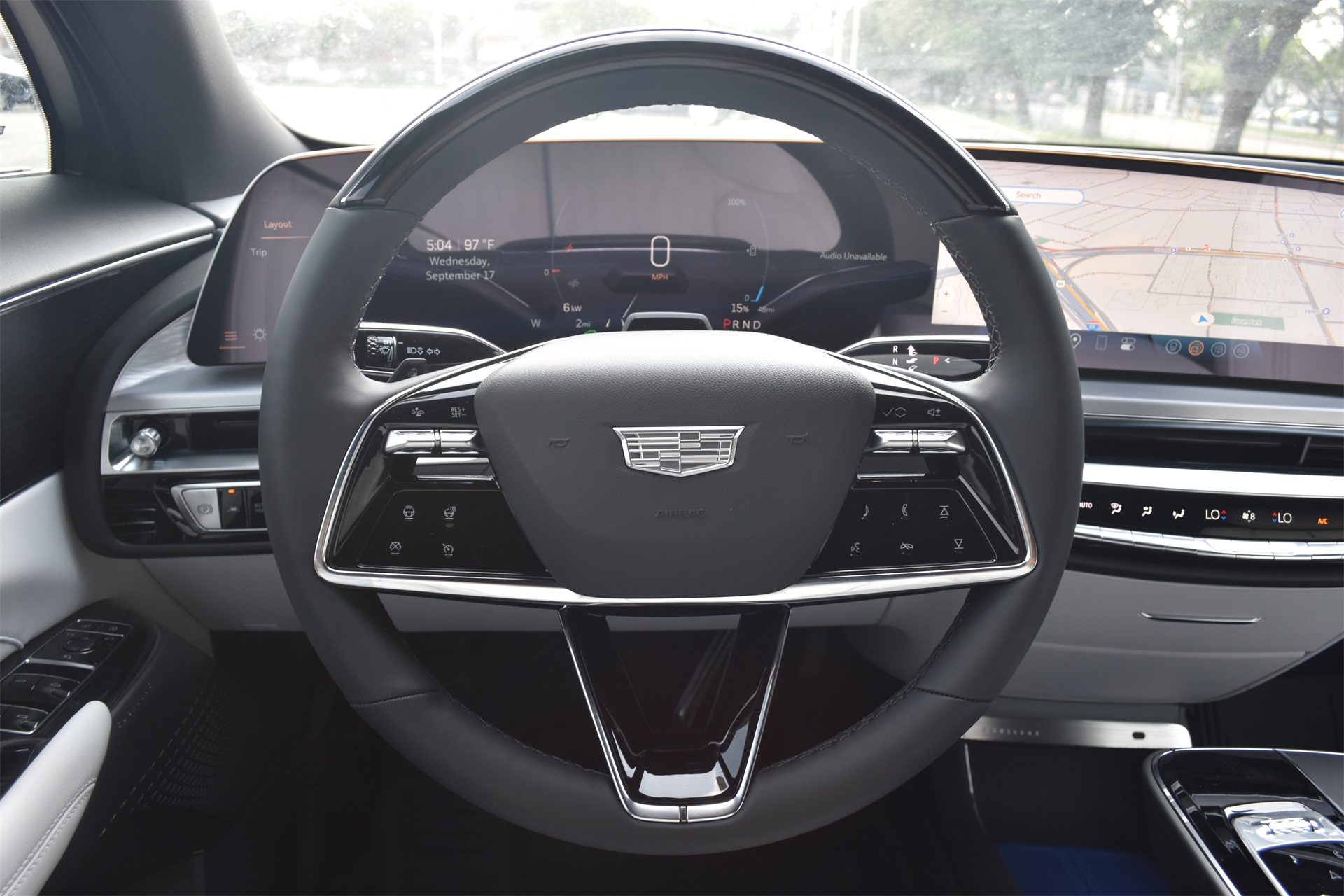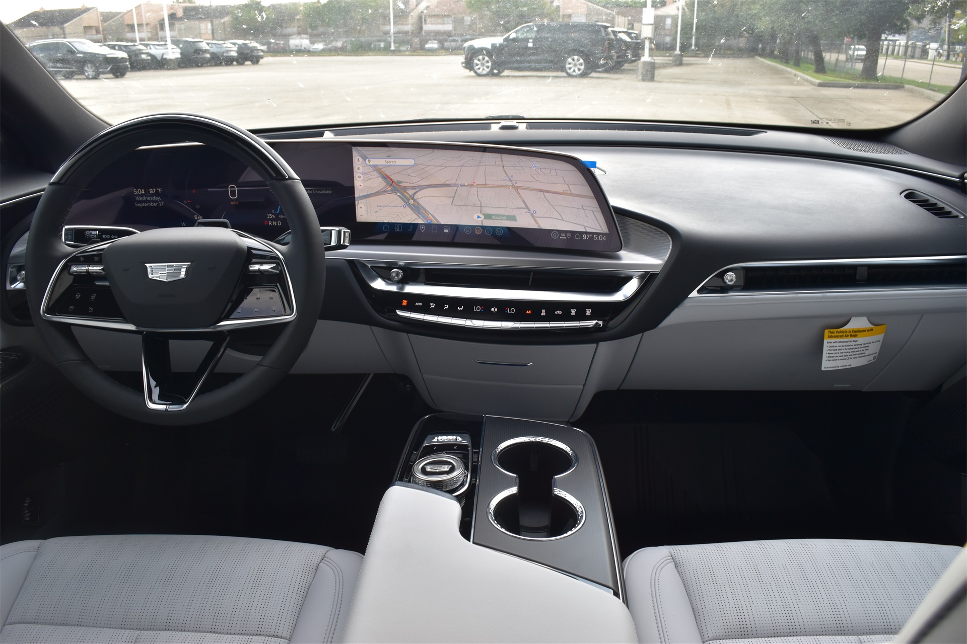 M radio: SiriusXM with 360L, Apple CarPlay/Android Auto, Auto High-beam Headlights, Auto-dimming door mirrors, Auto-dimming Rear-View mirror, Automatic temperature control, Brake assist, Bumpers: body-color, Compass, Delay-off headlights, Driver & Front Passenger Heated Seats, Driver 4-Way Power Lumbar Seat Adjustment, Driver door bin, Driver vanity mirror, Dual front impact airbags, Dual front side impact airbags, Electronic Stability Control, Emergency communication system: OnStar and Cadillac connected services capable, Four wheel independent suspension, Front & Rear 5-Link Suspension, Front anti-roll bar, Front Bucket Seats, Front Center Armrest, Front dual zone A/C, Front License Plate Bracket, Front Passenger 4-Way Power Lumbar Seat Adjustment, Front Passenger Seat Memory, Front reading lights, Fully automatic headlights, Garage door transmitter, GM PowerUp 2 Charger (LPO), Google Built-In, Heated door mirrors, Heated front seats, Heated steering wheel, Hitch Guidance w/Trailering Assist Guideline, Hitch View, Illuminated entry, Inteluxe Seat Trim, Knee airbag, Leather steering wheel, Low tire pressure warning, Memory seat, Mobile Service Plus - 1 Year, NACS DC Adapter (LPO), Navigation system: Google Automotive Services Capable, Occupant sensing airbag, Outside temperature display, Overhead airbag, Overhead console, Panic alarm, Passenger door bin, Passenger vanity mirror, Power door mirrors, Power driver seat, Power Liftgate, Power passenger seat, Power steering, Power windows, Radio data system, Radio: Infotainment Experience, Rain sensing wipers, Rear anti-roll bar, Rear reading lights, Rear seat center armrest, Rear window defroster, Remote keyless entry, Security system, SiriusXM w/360L Trial Subscription, Speed control, Speed-sensing steering, Split folding rear seat, Spoiler, Steering wheel memory, Steering wheel mounted audio controls, Telescoping steering wheel, Tilt steering wheel, Traction control, Trip computer, Turn signal indicator mirrors, Variably intermittent wipers, Wheels: 20" Split 6-Spoke Alloy, and Wireless Apple CarPlay/Wireless Android Auto.