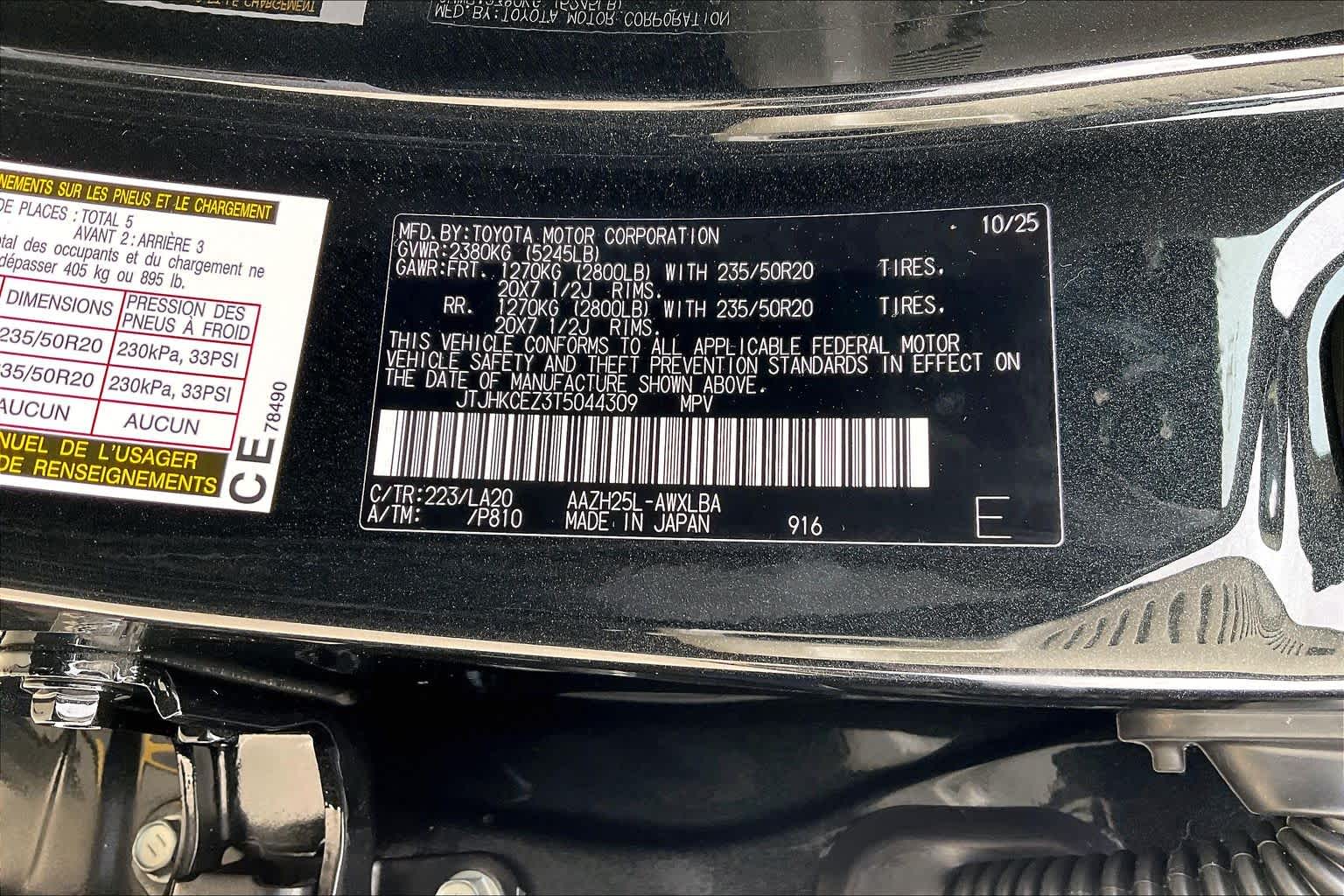 JTJHKCEZ3T5044309Stock #