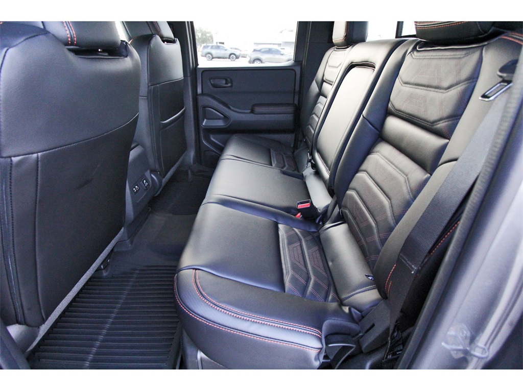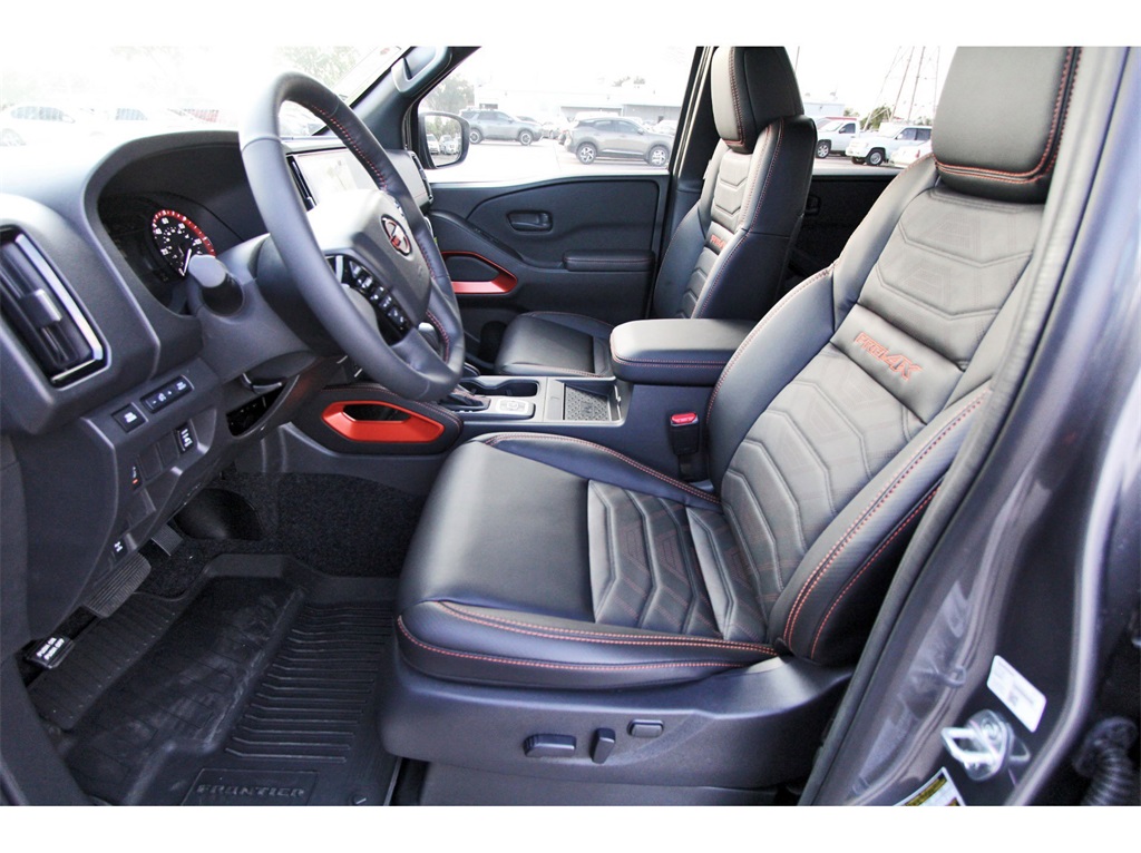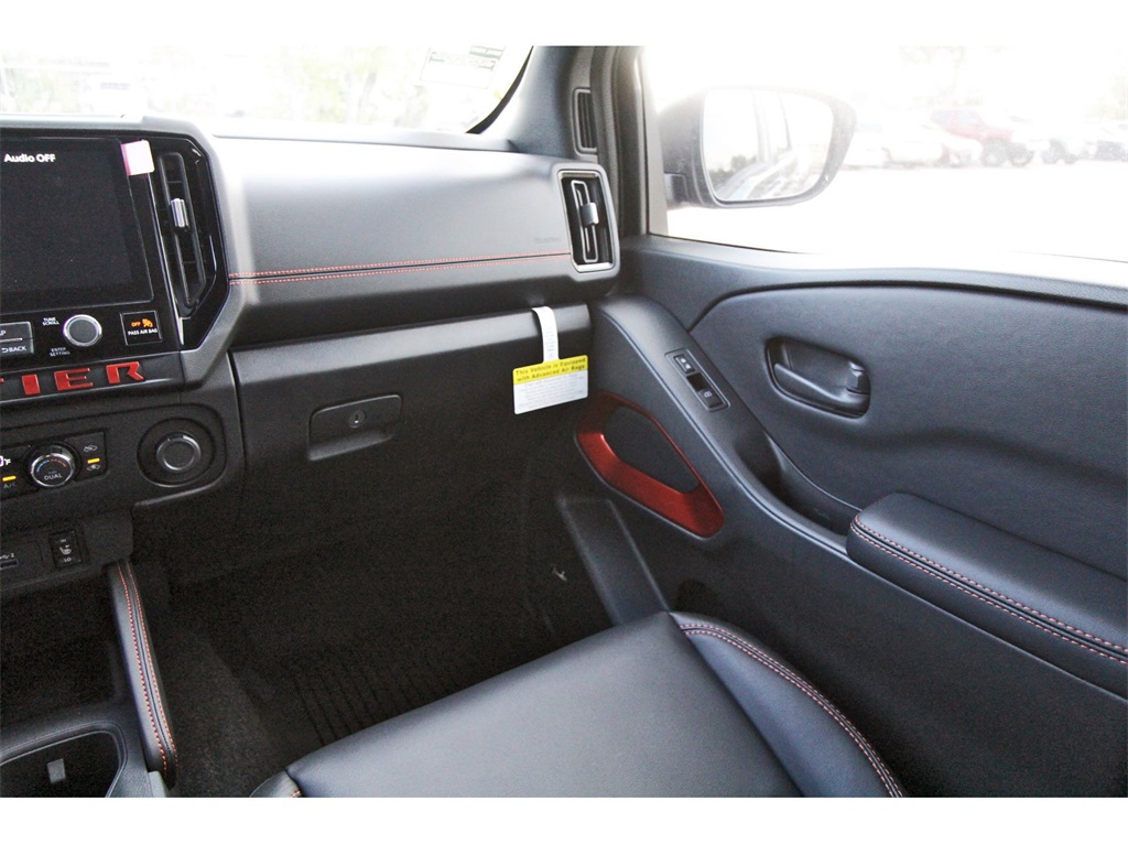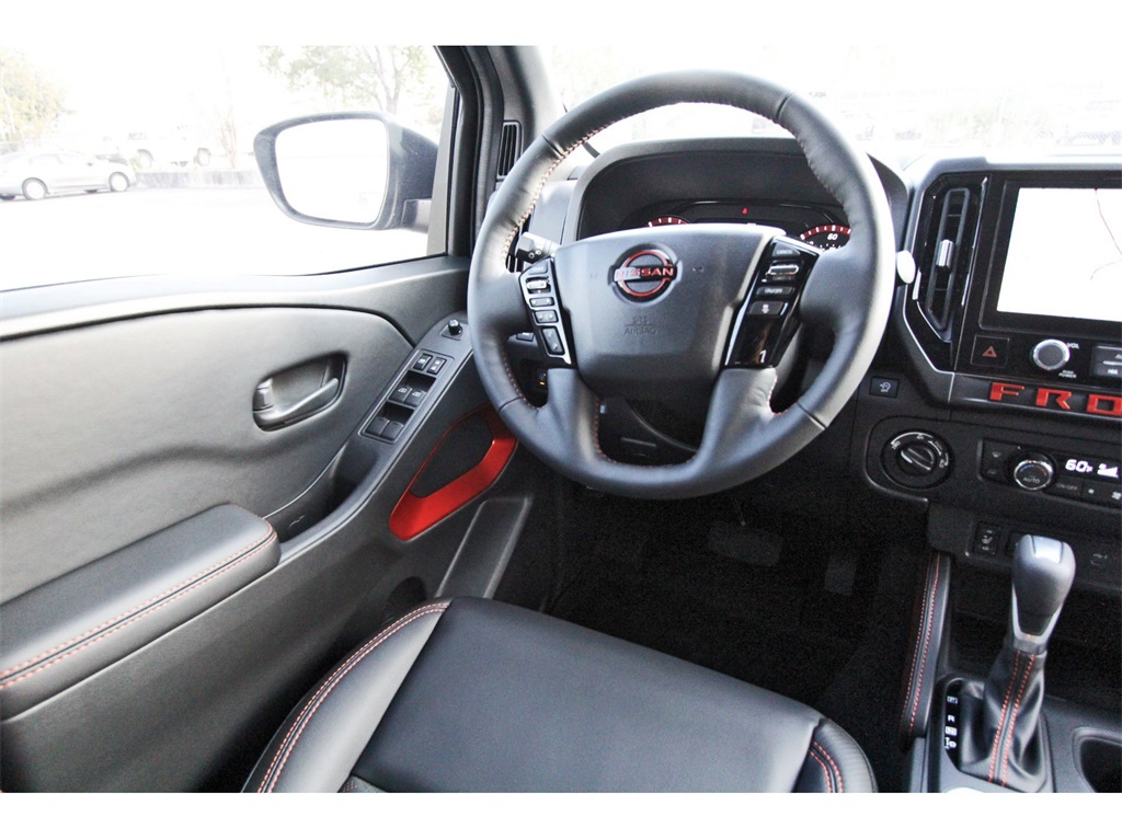 tomatic temperature control, Blind Spot Warning, Brake assist, Bumpers: body-color, Delay-off headlights, Driver door bin, Driver vanity mirror, Dual front impact airbags, Dual front side impact airbags, Electronic Stability Control, Electronic Tailgate Lock, Emergency communication system, Essentials Kit, Front anti-roll bar, Front Bucket Seats, Front Center Armrest, Front dual zone A/C, Front fog lights, Front reading lights, Front wheel independent suspension, Fully automatic headlights, Grille Accent Lighting, Heated Front Bucket Seats, Heated front seats, Heated steering wheel, Illuminated entry, Knee airbag, Leather steering wheel, Low tire pressure warning, Mud Flaps, Occupant sensing airbag, Off-Road Style Step Rails, Overhead airbag, Overhead console, Panic alarm, Passenger door bin, Passenger vanity mirror, Power door mirrors, Power driver seat, Power passenger seat, Power steering, Power windows, PRO Embroidered Premium Cloth Seat Trim, PRO-4X Carpeted Floor Mats, Radio data system, Radio: SXM/AM/FM/AUX/USB Audio System, Rear anti-roll bar, Rear seat center armrest, Rear side impact airbag, Rear step bumper, Remote keyless entry, Security system, Speed control, Speed-sensing steering, Split folding rear seat, Steering wheel mounted audio controls, Tachometer, Telescoping steering wheel, Tilt steering wheel, Traction control, Trip computer, USB Charging Cable Kit, Variably intermittent wipers, Voltmeter, and Wireless Apple CarPlay/Wireless Android Auto!!