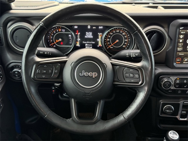 lpine Premium Audio System, Anti-Lock 4-Wheel Disc Heavy Duty Brakes, Anti-Spin Differential Rear Axle, Apple CarPlay, Auto High Beam Headlamp Control, Auto-Dimming Rear-View Mirror, Automatic Headlamps, Black 3-Piece Hard Top, Brake assist, Cloth Low-Back Bucket Seats, Cluster 7.0" TFT Color Display, Cold Weather Group, Console Bin Task Light, Convenience Group, Deep Tint Sunscreen Windows, Delay-off headlights, Driver door bin, Driver vanity mirror, Dual front impact airbags, Dual front side impact airbags, Dual Remote USB Port - Charge Only, Electronic Stability Control, Emergency/Assistance Call, For Details, Visit DriveUconnect.com, For More Info, Call 800-643-2112, Freedom Panel Storage Bag, Front 1-Touch Down Power Windows, Front anti-roll bar, Front Bucket Seats, Front Center Armrest w/Storage, Front fog lights, Front reading lights, Google Android Auto, GPS Antenna Input, HD Radio, Heated Front Seats, Heated Steering Wheel, Integrated Center Stack Radio, Integrated roll-over protection, Leather Wrapped Steering Wheel, Low tire pressure warning, No Soft Top, Normal Duty Plus Suspension, Normal Duty Suspension, Occupant sensing airbag, Outside temperature display, ParkView Rear Back-Up Camera, Passenger vanity mirror, Power Heated Mirrors, Power steering, Power Tailgate Lock, Quick Order Package 24S, Radio: Uconnect 4 w/7" Display, Radio: Uconnect 4C Nav w/8.4" Display, Rear anti-roll bar, Rear Sliding Window, Rear Window Defroster, Remote Keyless Entry, Security Alarm, SiriusXM Satellite Radio, SiriusXM Traffic Plus, SiriusXM Travel Link, Speed control, Speed Sensitive Power Locks, Split folding rear seat, Steering wheel mounted audio controls, Sun Visors w/Illuminated Vanity Mirrors, Technology Group, Telescoping steering wheel, Tilt steering wheel, Traction control, Universal Garage Door Opener, USB Host Flip, Variably intermittent wipers, Wheels: 17" x 7.5" Tech Silver Aluminum. Priced below KBB Fair Purchase Price!