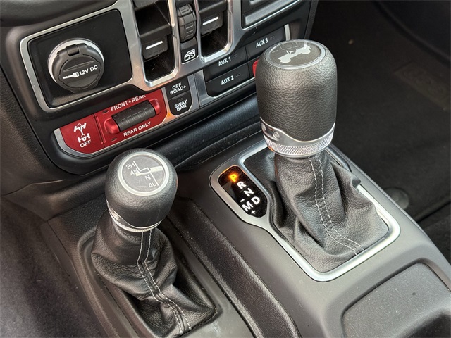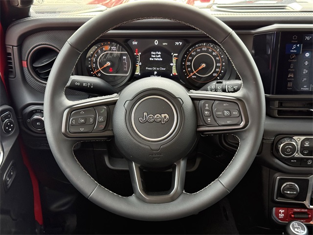 et Seats, Convenience Group, Delay-off headlights, Driver vanity mirror, Dual front impact airbags, Dual front side impact airbags, Electronic Stability Control, Emergency communication system: Jeep Connect, Freedom Panel Storage Bag, Front anti-roll bar, Front Bucket Seats, Front Center Armrest w/Storage, Front dual zone A/C, Front fog lights, Front License Plate Bracket (DISC), Front reading lights, Fully automatic headlights, Google Android Auto, Heated door mirrors, Heated Front Seats, Heated Steering Wheel, Illuminated entry, Integrated roll-over protection, Low tire pressure warning, Occupant sensing airbag, Outside temperature display, Overhead airbag, Panic alarm, ParkView Rear Back-Up Camera, Performance Suspension, Power door mirrors, Quick Order Package 22R Rubicon, Radio: Uconnect 5 w/12.3" Display, Rear anti-roll bar, Rear reading lights, Rear Window Defroster, Rear Window Wiper/Washer, Remote keyless entry, Security system, Speed control, Split folding rear seat, Steering wheel mounted audio controls, Stop-Start Dual Battery System, Telescoping steering wheel, Traction control, Universal Garage Door Opener, Variably intermittent wipers, Wheels: 17" x 7.5" Machined/Painted Black. CARFAX One-Owner. Priced below KBB Fair Purchase Price!