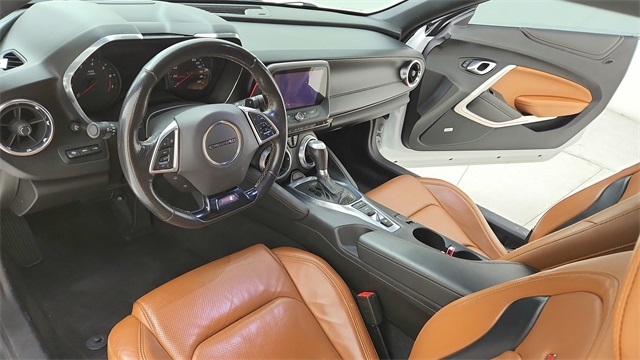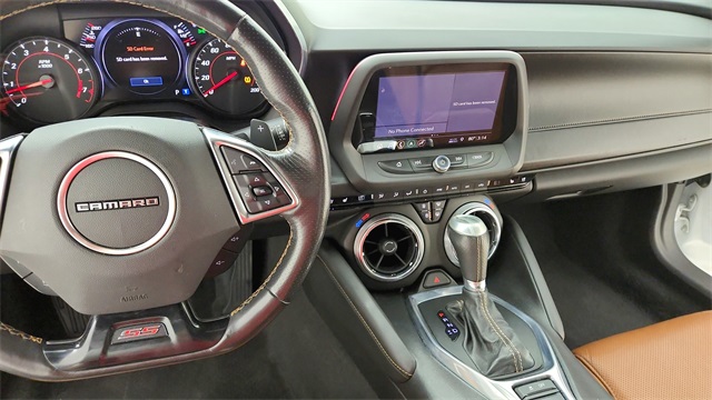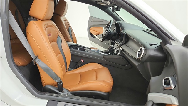 The 2SS trim takes performance luxury to the next level, featuring heated and ventilated leather-trimmed sport seats, a heated steering wheel, and dual-zone automatic climate control. The Bose Premium 9-speaker audio system, Chevrolet Infotainment 3 with Apple CarPlay and Android Auto, and a full-color Heads-Up Display create a connected, driver-focused experience. Additional highlights include power-adjustable front seats with memory settings, paddle-shift controls, remote start, and a rearview camera for added convenience. 20-inch 5-spoke aluminum wheels, LED headlights, and a rear spoiler complete the Camaro’s unmistakable presence.