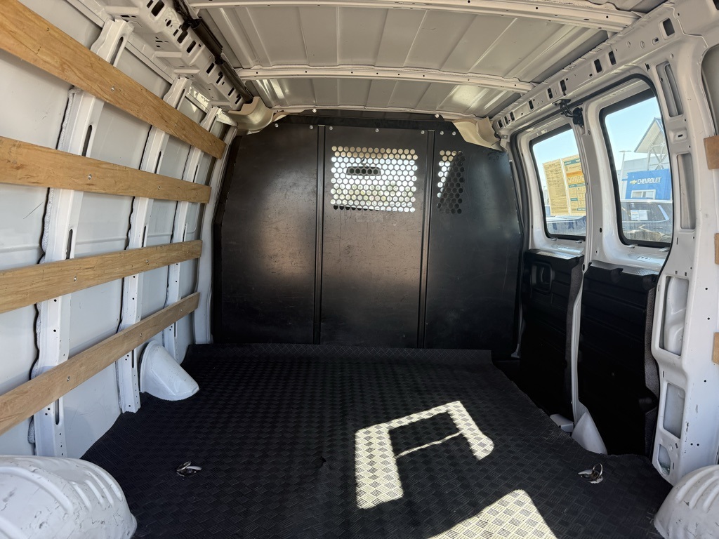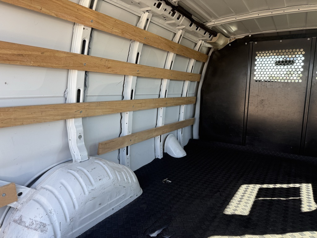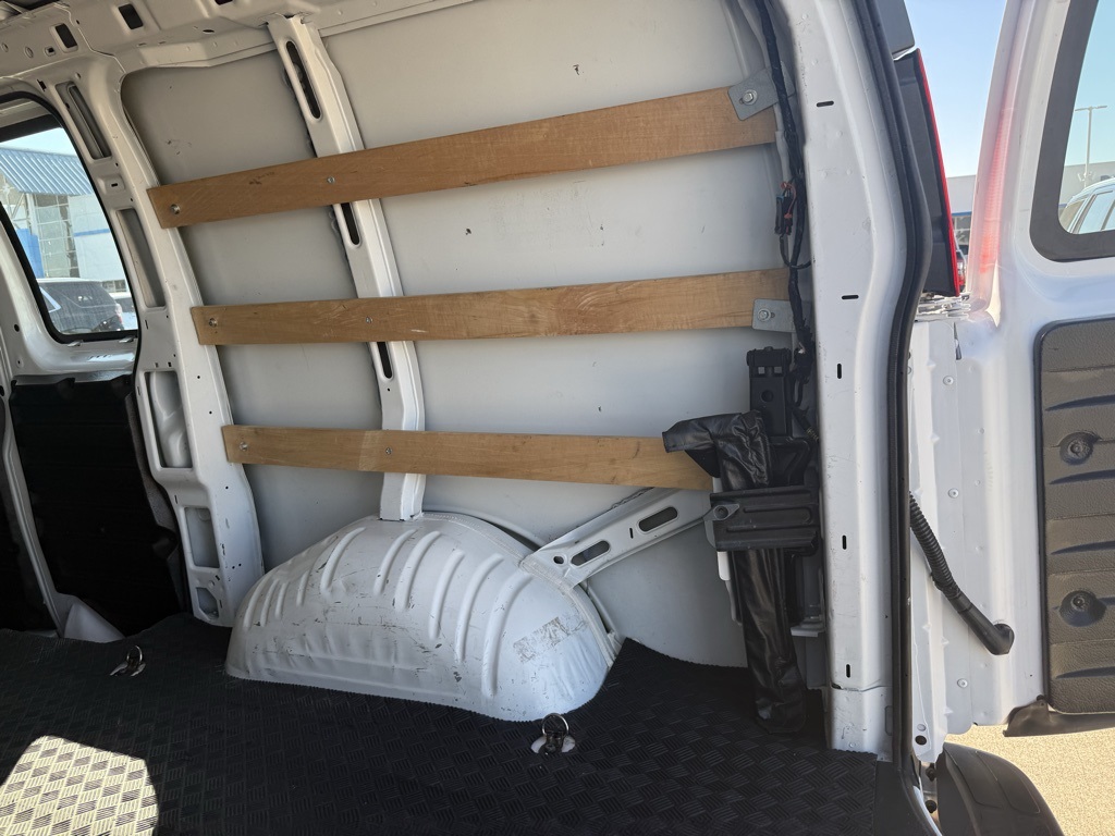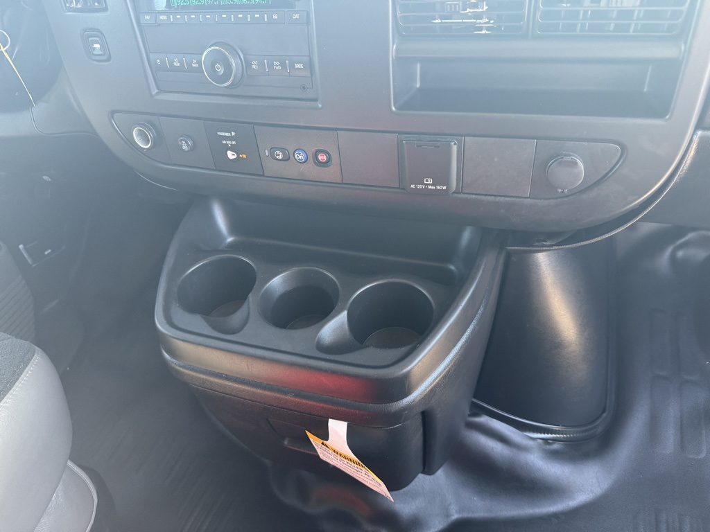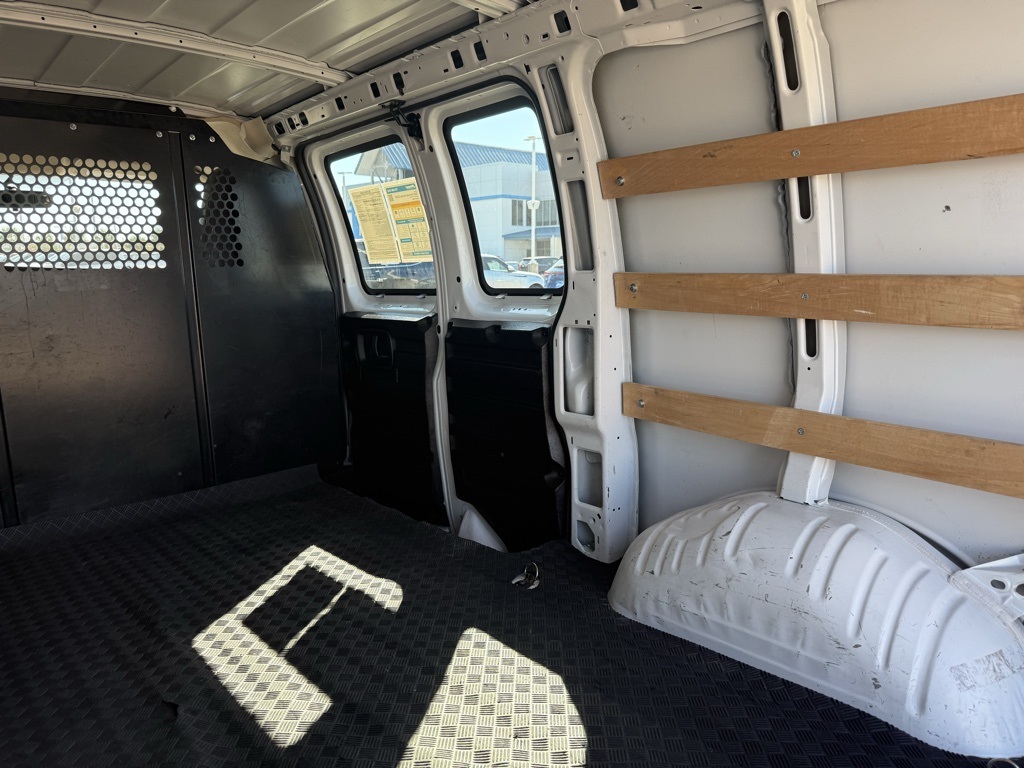 , includes aluminum block construction (276 hp [206 kW] @ 5200 rpm, 298 lb-ft of torque [404 Nm] @ 3900 rpm) (STD), ELECTRONICALLY CONTROLLED with overdrive and tow/haul mode. Includes Cruise Grade Braking, Powertrain Grade Braking and Tap-Up/Tap-Down Driver Shift Control (STD), AM/FM STEREO WITH MP3 PLAYER seek-and-scan, digital clock, TheftLock, random select, auxiliary jack and 2 front door speakers (STD). Chevrolet Express Cargo Van with Summit White exterior and Jet Black/Medium Dark Pewter interior features a V6 Cylinder Engine with 276 HP at 5200 RPM*.