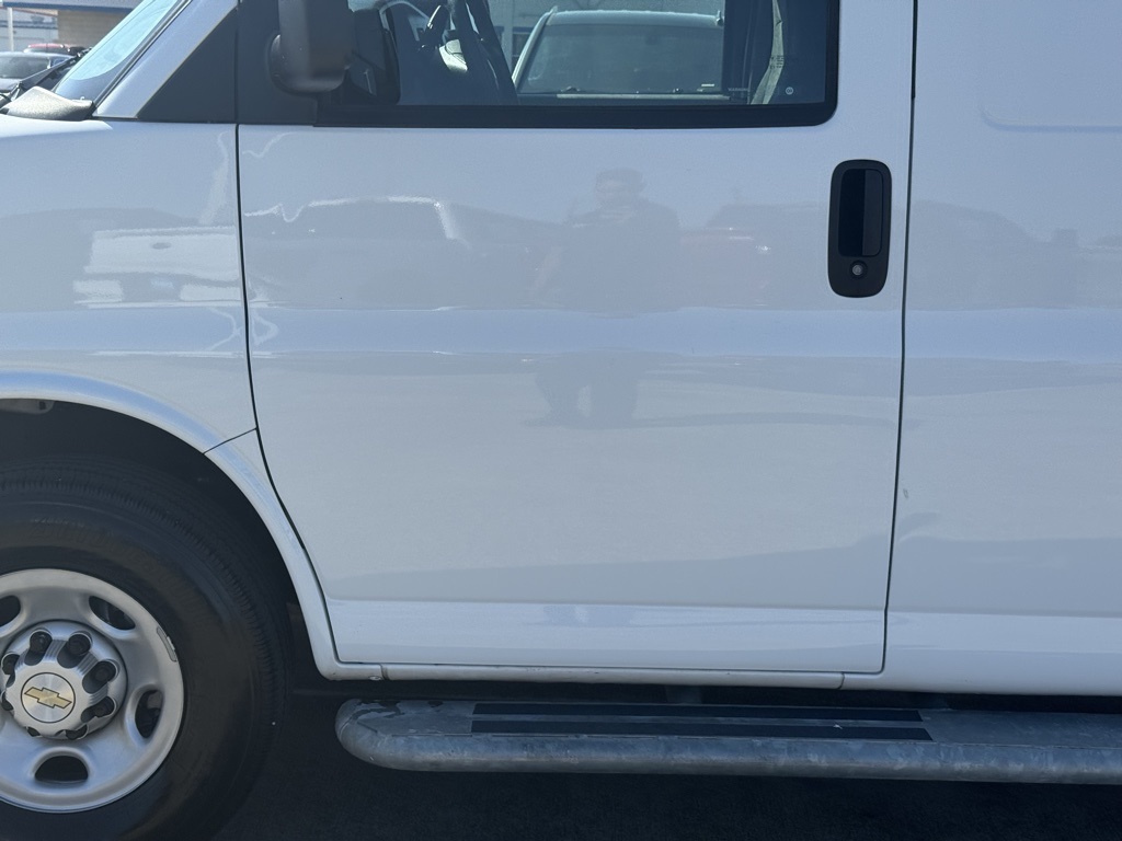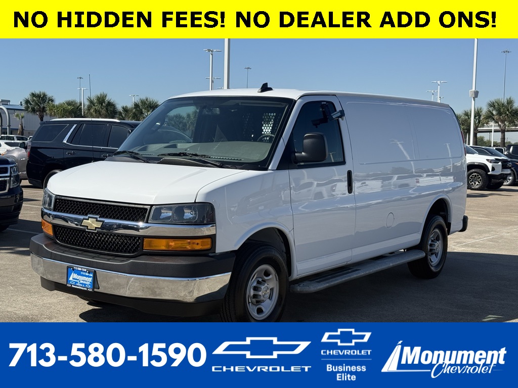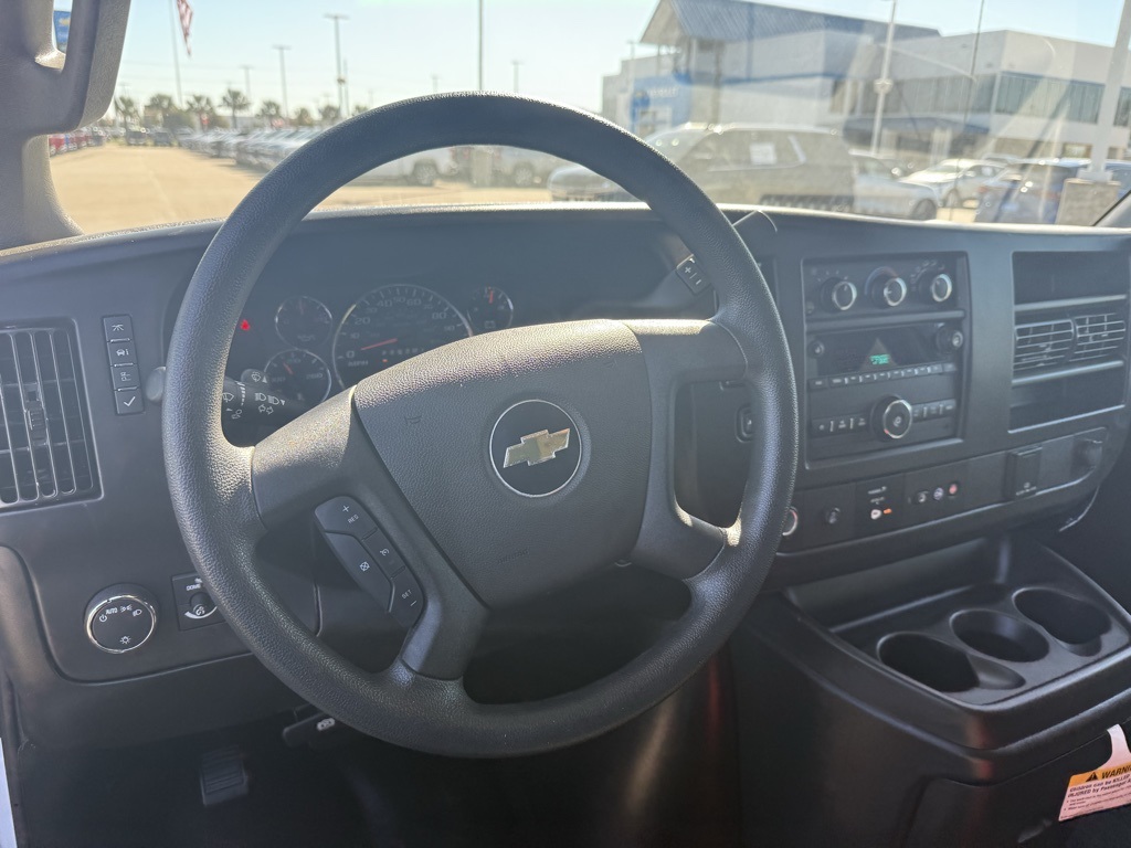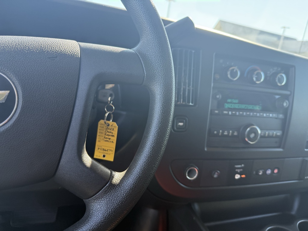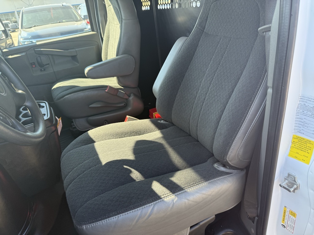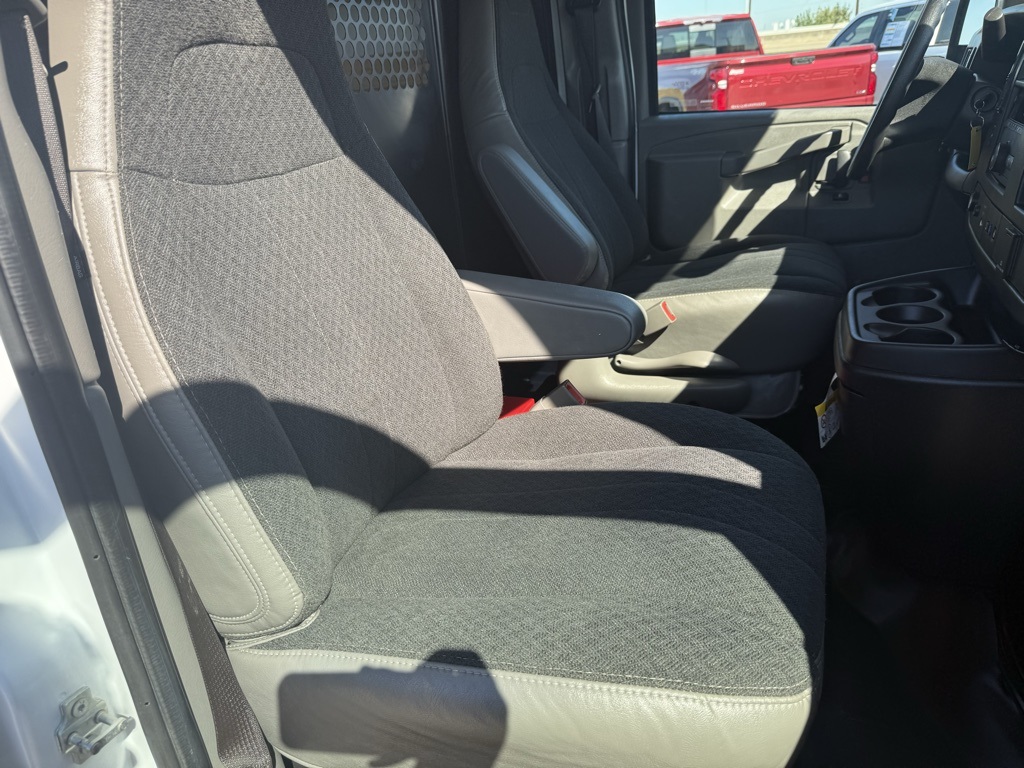 , includes aluminum block construction (276 hp [206 kW] @ 5200 rpm, 298 lb-ft of torque [404 Nm] @ 3900 rpm) (STD), ELECTRONICALLY CONTROLLED with overdrive and tow/haul mode. Includes Cruise Grade Braking, Powertrain Grade Braking and Tap-Up/Tap-Down Driver Shift Control (STD), AM/FM STEREO WITH MP3 PLAYER seek-and-scan, digital clock, TheftLock, random select, auxiliary jack and 2 front door speakers (STD). Chevrolet Express Cargo Van with Summit White exterior and Jet Black/Medium Dark Pewter interior features a V6 Cylinder Engine with 276 HP at 5200 RPM*.