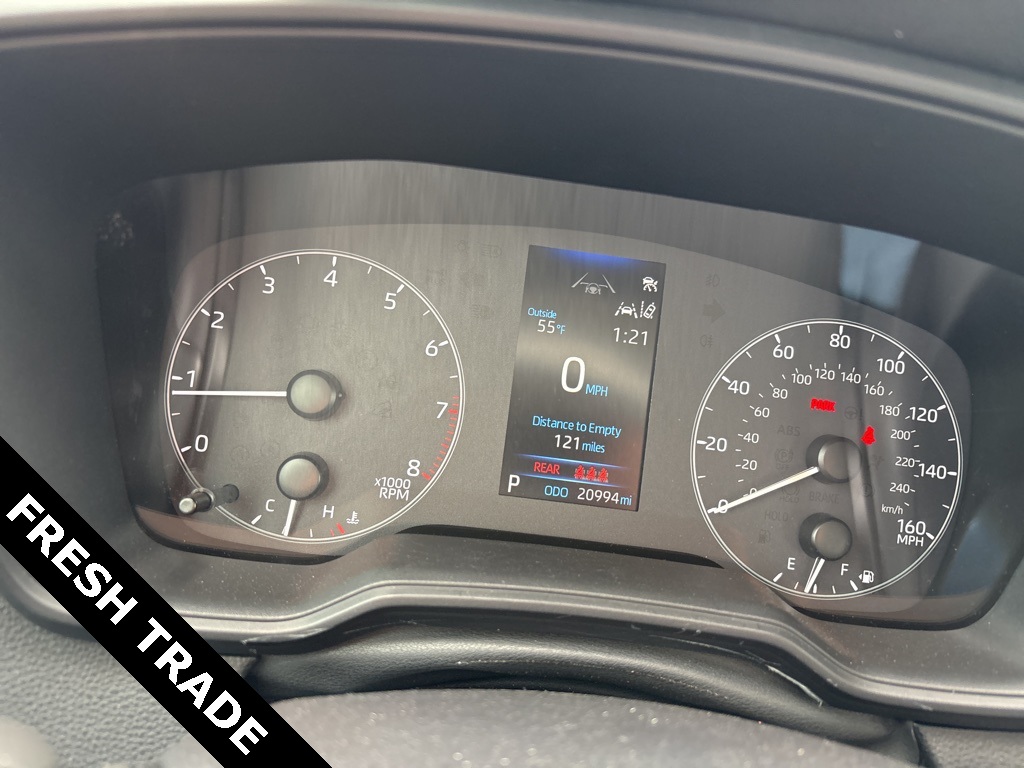 ystem: Safety Connect (up to 10-year trial subscription), Exterior Parking Camera Rear, Fabric Seat Trim, Front anti-roll bar, Front Bucket Seats, Front Center Armrest, Front reading lights, Front wheel independent suspension, Fully automatic headlights, Illuminated entry, Knee airbag, Low tire pressure warning, Occupant sensing airbag, Outside temperature display, Overhead airbag, Panic alarm, Passenger door bin, Passenger vanity mirror, Power door mirrors, Power steering, Power windows, Radio data system, Radio: 8" Toyota Audio Multimedia, Rear anti-roll bar, Rear seat center armrest, Rear side impact airbag, Rear window defroster, Remote keyless entry, Speed control, Split folding rear seat, Steering wheel mounted audio controls, Tachometer, Telescoping steering wheel, Tilt steering wheel, Traction control, and Trip computer.