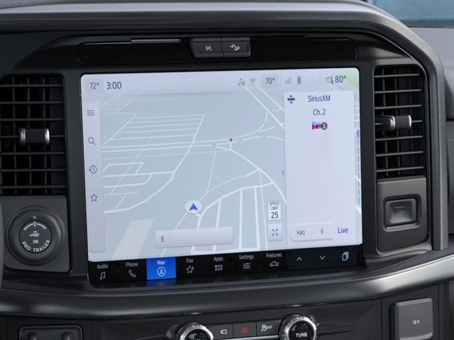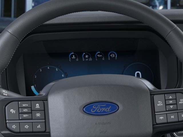 t impact airbags, Dual front side impact airbags, Electronic Locking w/3.55 Axle Ratio, Electronic Stability Control, Emergency communication system: SYNC 4 911 Assist, Front anti-roll bar, Front Bucket Seats, Front Center Armrest, Front dual zone A/C, Front fog lights, Front reading lights, Front wheel independent suspension, Fully automatic headlights, Garage door transmitter, Heated door mirrors, Heated front seats, Heated rear seats, Heated steering wheel, Illuminated entry, Leather steering wheel, Low tire pressure warning, Memory seat, Navigation system: Connected Navigation, Occupant sensing airbag, Outside temperature display, Overhead airbag, Overhead console, Panic alarm, Passenger door bin, Passenger vanity mirror, Pedal memory, Power door mirrors, Power driver seat, Power passenger seat, Power steering, Power windows, Radio data system, Radio: B&O Sound System by Bang & Olufsen, Rain sensing wipers, Rear reading lights, Rear seat center armrest, Rear step bumper, Rear window defroster, Remote keyless entry, Security system, Speed control, Split folding rear seat, Steering wheel memory, Steering wheel mounted audio controls, SYNC 4 w/Enhanced Voice Recognition, Tachometer, Telescoping steering wheel, Tilt steering wheel, Traction control, Trip computer, Turn signal indicator mirrors, Unique Multi-Contour Leather Bucket Seats, Variably intermittent wipers, Ventilated front seats, Voltmeter, and Wheels: 20" Painted Gloss Ebony Black.