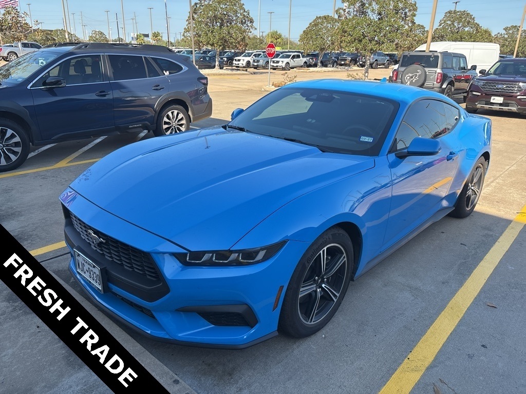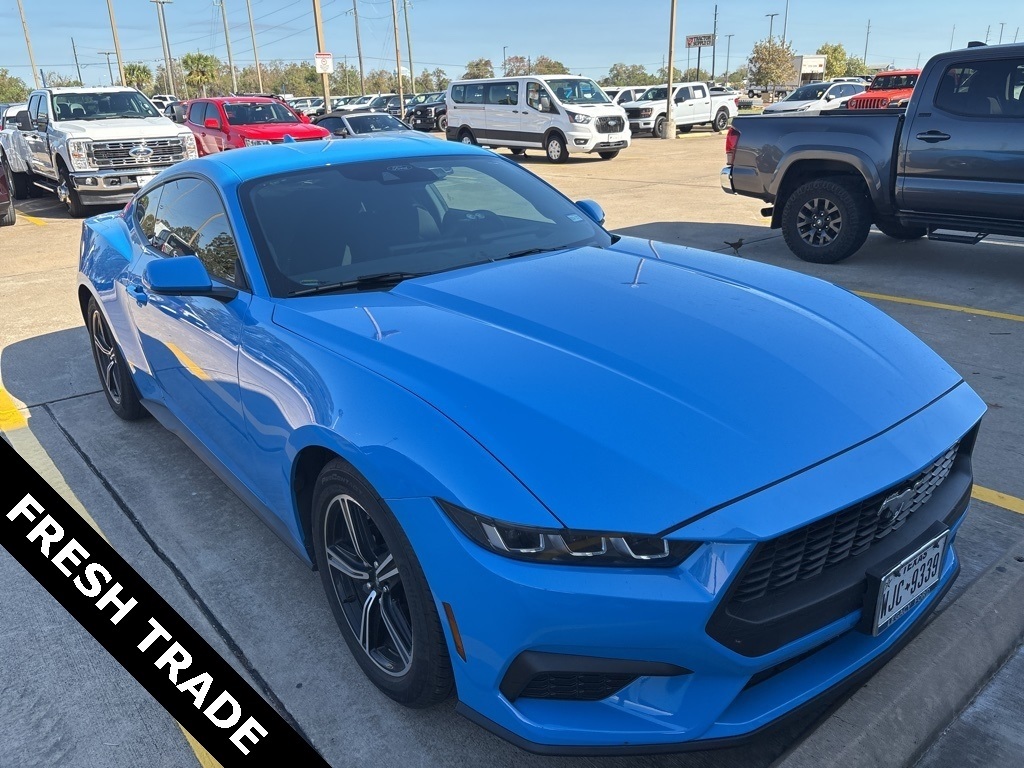 Recent Arrival! CARFAX One-Owner. Clean CARFAX. Grabber Blue Metallic 2025 Ford Mustang EcoBoost RWD 10-Speed Automatic EcoBoost 2.3L I4 GTDi DOHC Turbocharged VCT 4-Wheel Disc Brakes, ABS brakes, Air Conditioning, Alloy wheels, AM/FM Stereo, Auto High-beam Headlights, Automatic temperature control, Brake assist, Bumpers: body-color, Compass, Delay-off headlights, Driver door bin, Driver vanity mirror, Dual front impact airbags, Dual front side impact airbags, Electronic Stability Control, Emerg