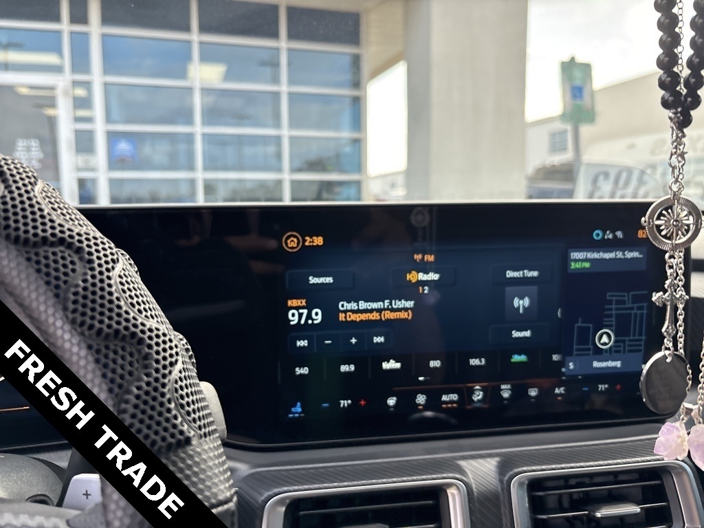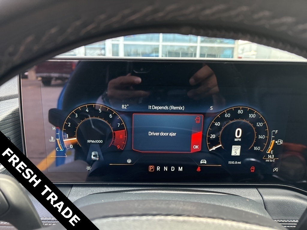 , Delay-off headlights, Driver door bin, Driver vanity mirror, Dual front impact airbags, Dual front side impact airbags, Electronic Stability Control, Emergency communication system: 911 Assist, Exterior Parking Camera Rear, Four wheel independent suspension, Front anti-roll bar, Front Bucket Seats, Front Center Armrest, Front dual zone A/C, Front reading lights, Fully automatic headlights, Illuminated entry, Internet access capable: FordPass Connect, Knee airbag, Leather Shift Knob, Leather steering wheel, Low tire pressure warning, Occupant sensing airbag, Outside temperature display, Overhead airbag, Overhead console, Panic alarm, Passenger door bin, Passenger vanity mirror, Power door mirrors, Power steering, Power windows, Radio data system, Rain sensing wipers, Rear anti-roll bar, Rear Parking Sensors, Rear window defroster, Remote keyless entry, Speed control, Speed-sensing steering, Speed-Sensitive Wipers, Split folding rear seat, Spoiler, Sport steering wheel, Steering wheel mounted audio controls, SYNC 4, Tachometer, Telescoping steering wheel, Tilt steering wheel, Traction control, Trip computer, Variably intermittent wipers, and Voltmeter.