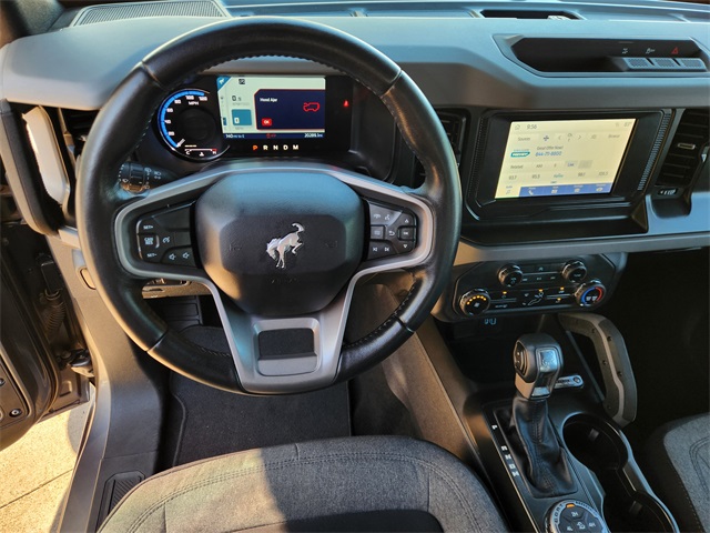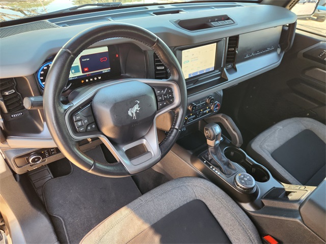 CARFAX One-Owner. Carbonized Gray Metallic 2023 Ford Bronco Big Bend 4WD 10-Speed Automatic 2.3L EcoBoost I-4 LOCAL TRADE, CARFAX 1 OWNER, CLEAN CARFAX, NON SMOKER, 4WD, KEYLESS ENTRY, REMOTE START, APPLE CARPLAY, ANDROID AUTO, SIRIUS XM RADIO, AM/FM/HD RADIO, BLUETOOTH HANDS FREE CALLING, FRONT USB CHARGING PORTS, MP3 IPOD COMPATIBLE, AUTO HEADLIGHTS, DAYTIME RUNNING LIGHTS, BLIND SPOT WARNING SYSTEM, LANE DEPARTURE WARNING SYSTEM, POWER ADJUSTABLE DRIVERS SEAT, RUNNING BOARDS, TOW PKG.