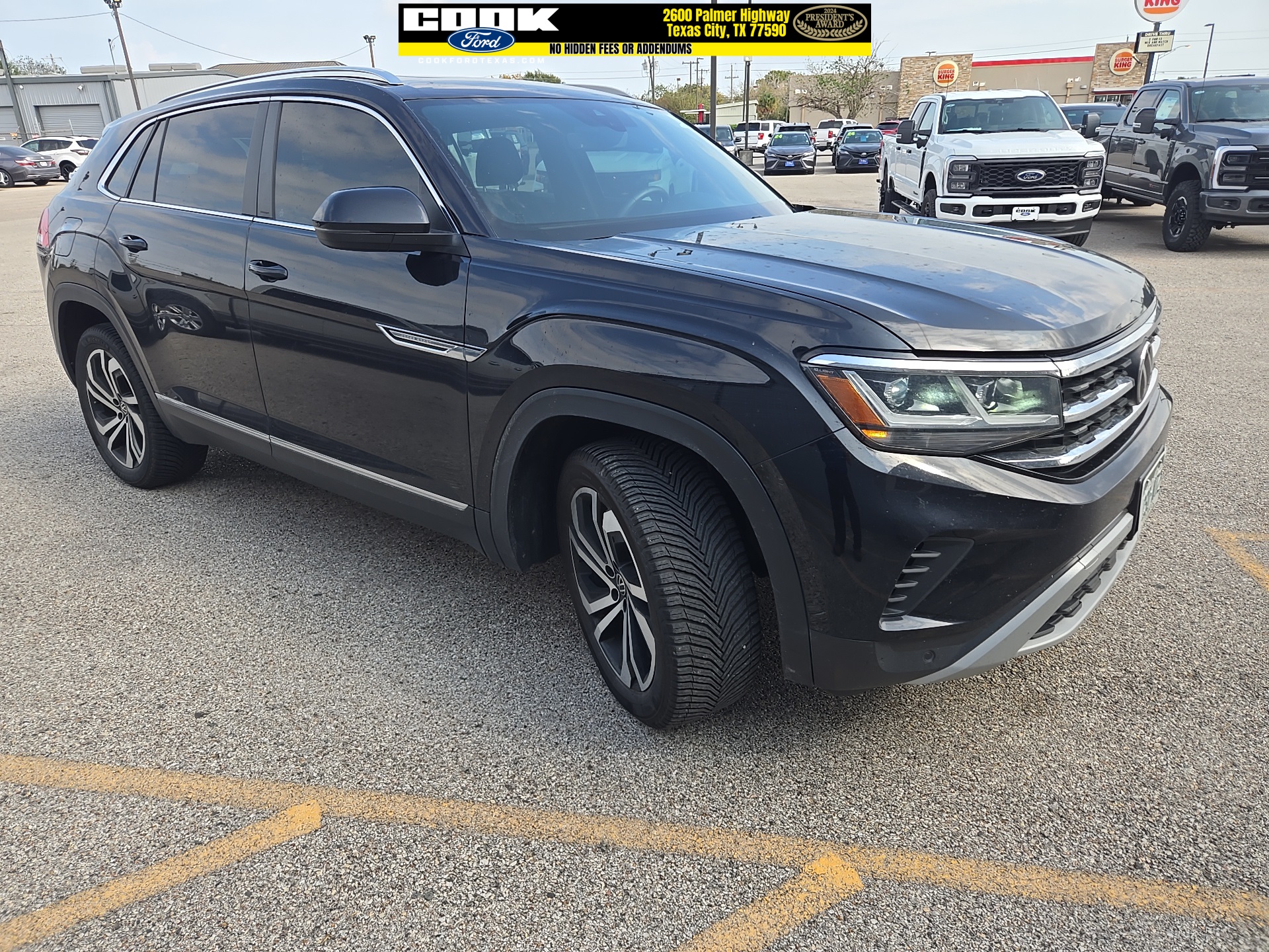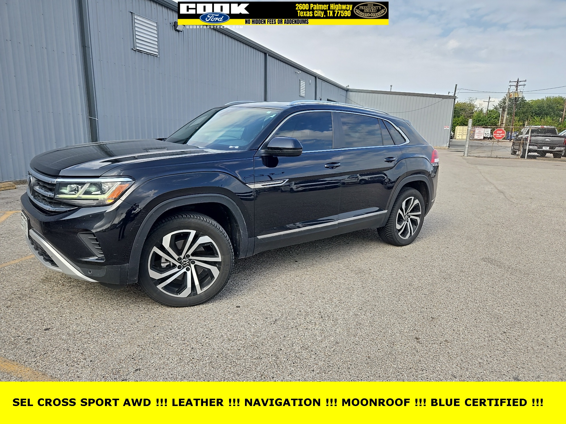 Certified. Black 2023 Volkswagen Atlas Cross Sport 2.0T SEL AWD 8-Speed Automatic with Tiptronic 2.0L TSI Navigation System, Power Liftgate, Power moonroof: Panoramic.