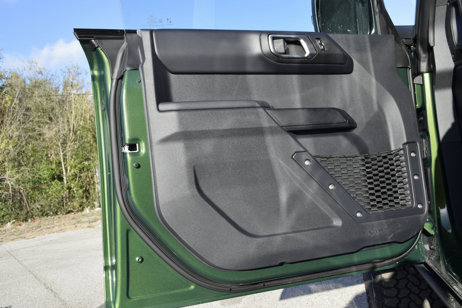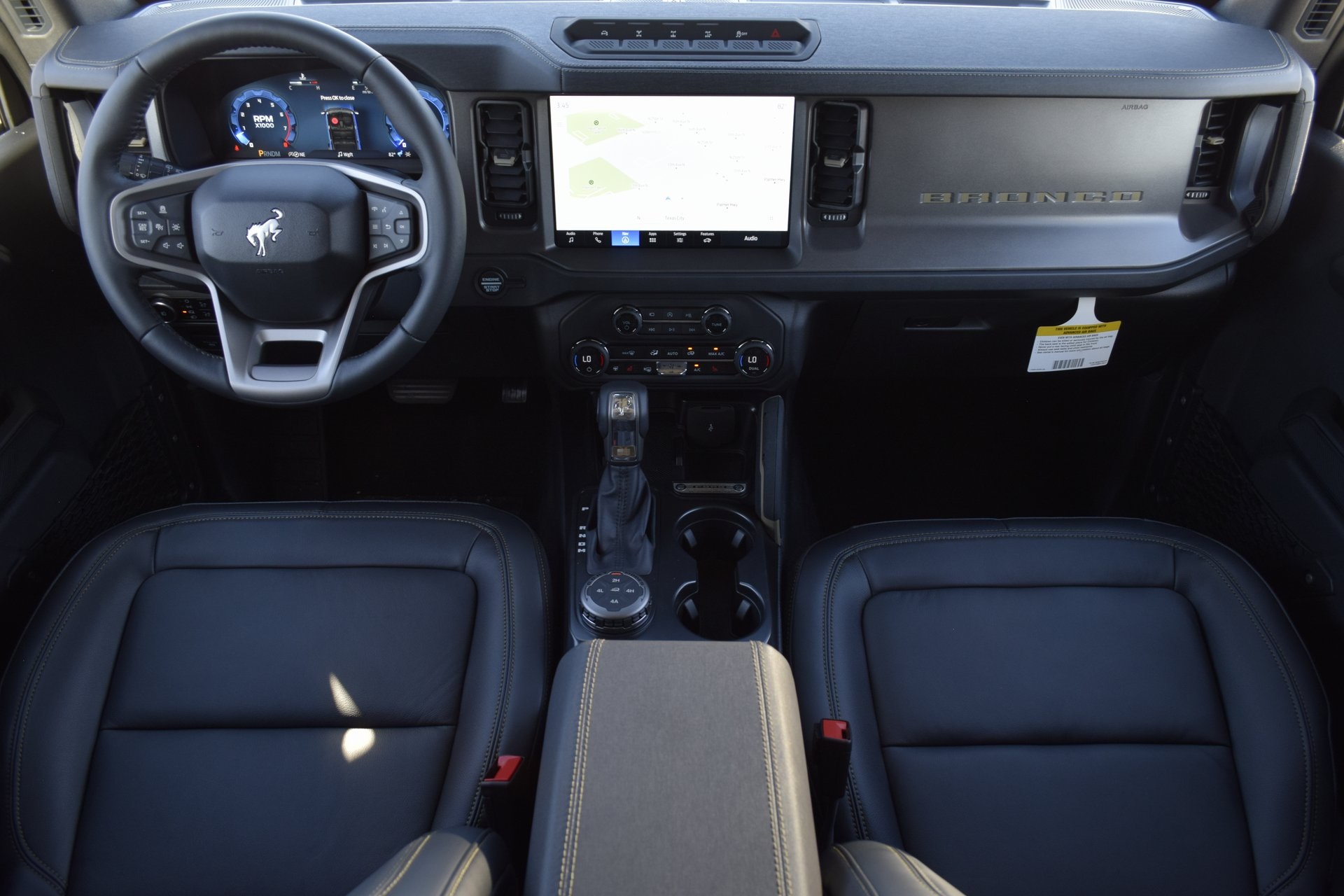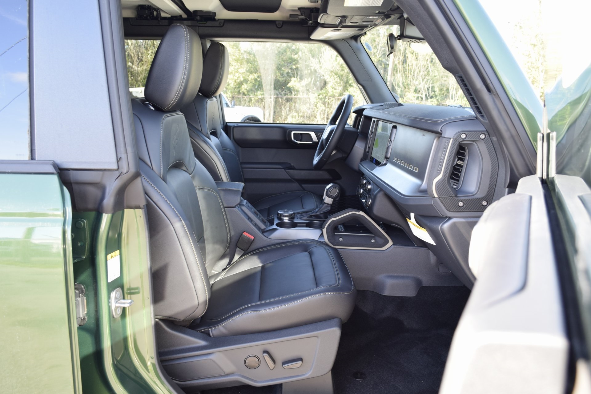 teering Assist, Front Parking Sensors, Front Row Heated Seats, Information on Demand Panel, Power Outlet - Back Side of Center Floor Console, Radio: B&O Sound System by Bang & Olufsen, Rear Parking Sensors, Sideview Mirrors, and Universal Garage Door Opener), Sasquatch Package (High Clearance Fender Flares, High Clearance Suspension, Position-Sensitive Bilstein Shock Absorbers, and Wheels: 17" Carbonized Gray Painted Aluminum), 4-Wheel Disc Brakes, 7 Speakers, ABS brakes, Air Conditioning, Alloy wheels, AM/FM radio: SiriusXM with 360L, AM/FM Stereo, Auto High-Beam Headlamps, Auto High-beam Headlights, Auto-dimming Rear-View mirror, BLIS Blind Spot Information System, Brake assist, Compass, Delay-off headlights, Driver door bin, Driver vanity mirror, Dual front impact airbags, Dual front side impact airbags, Electronic Stability Control, Emergency communication system: 911 Assist, Exterior Parking Camera Rear, Front anti-roll bar, Front Bucket Seats, Front Center Armrest, Front fog lights, Front reading lights, Front wheel independent suspension, Fully automatic headlights, Hard Top Sound Deadening Headliner, Heated door mirrors, Heated Front Seats, Heated steering wheel, Illuminated entry, Integrated roll-over protection, Internet access capable: FordPass Connect, Lane-Keeping System, Leather Shift Knob, Leather-Trimmed/Vinyl Bucket Seats, Low tire pressure warning, Marine Grade Vinyl Heated Bucket Seats, Occupant sensing airbag, Outside temperature display, Overhead airbag, Overhead console, Panic alarm, Passenger door bin, Passenger vanity mirror, Power door mirrors, Power steering, Power windows, Pre-Collision Assist w/Automatic Emergency Braking, Radio data system, Rear-View Camera, Rear-Window Defroster & Washer, Remote keyless entry, Security system, Shadow Black Painted Hard Top, SiriusXM w/360L, Speed control, Split folding rear seat, Steering wheel mounted audio controls, SYNC 4, Tachometer, Telescoping steering wheel, Tilt steering wheel, Traction control, Trip computer, Variably intermittent wipers, Voltmeter, and Wheels: 17" Carbonized Gray-Painted Aluminum. Rebates subject to geographical qualification. Price includes: *Manufacturer’s Rebates shown above are subject to residency restrictions. Any customer not meeting the residency restriction will receive a dealer discount in the same amount of the manufacturer rebate.$2500 - Retail Customer Cash. Exp. 03/31/2026