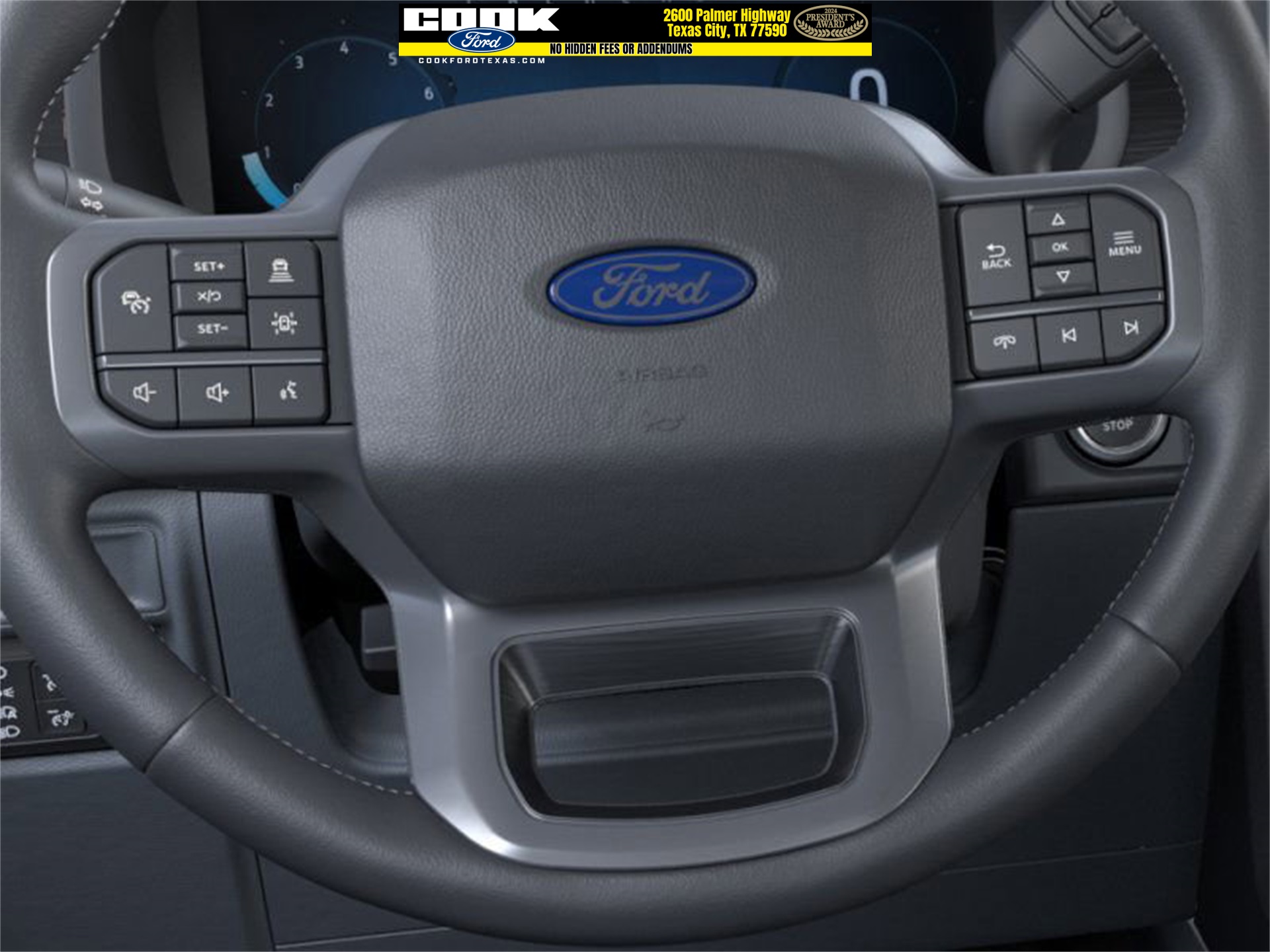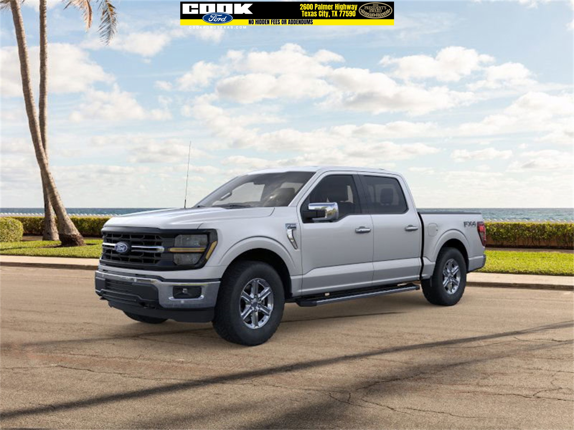 This 2025 Ford F-150 XLT in Silver comes with the following features: 5.0L V8 10-Speed Automatic 4WD Equipment Group 302A Mid (360 Degree Camera, 400W Cab & Bed Outlets, 6" Angular Bright Anodized Step Bar, Adaptive Cruise Control w/Stop & Go, Auto-Dimming Rear-View Mirror, Black Painted Grille w/Chrome Center Bar, Chrome Door & Tailgate Handles, Chrome Single-Tip Exhaust, Cloth 40/Console/40 Front Seats, Connected Na