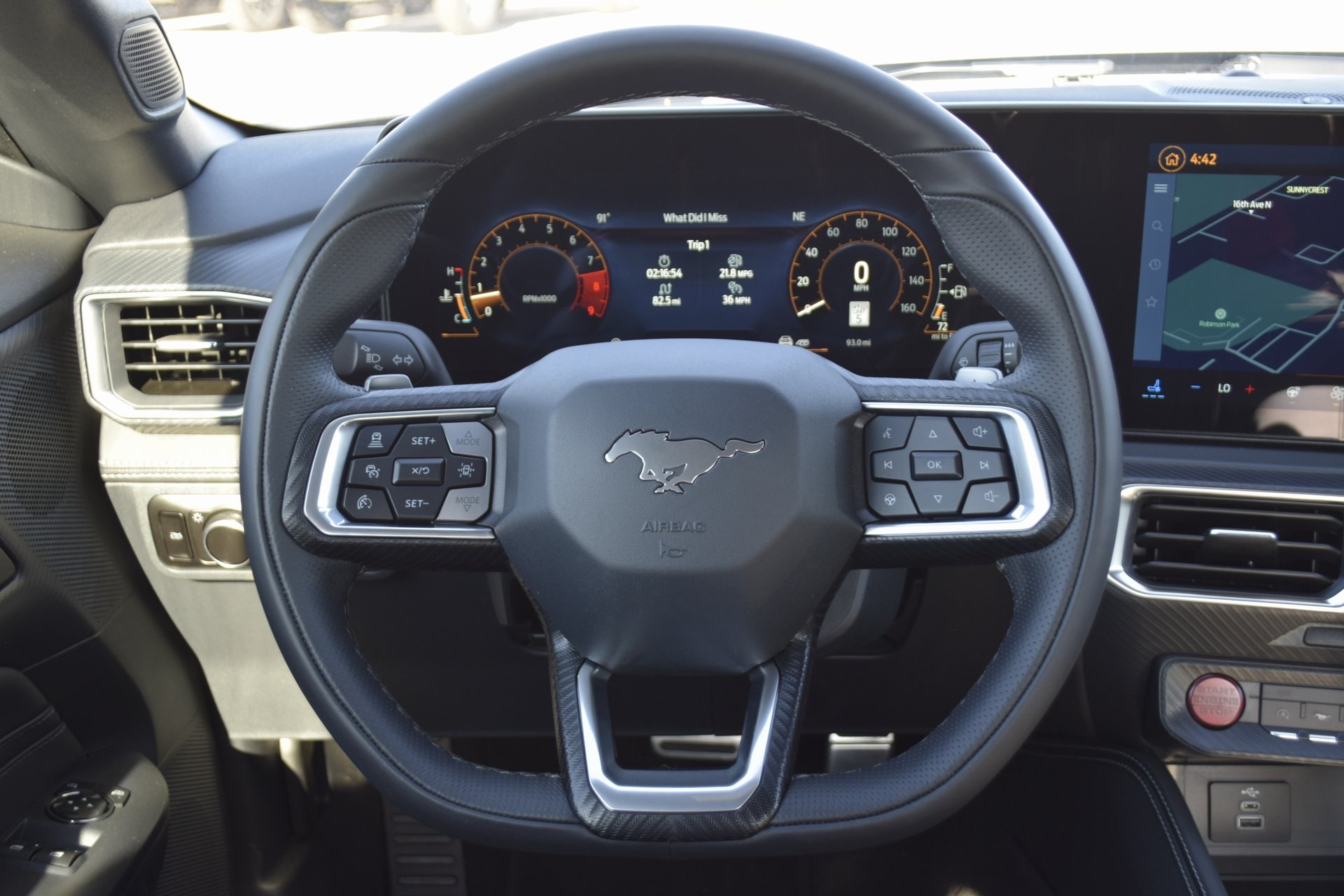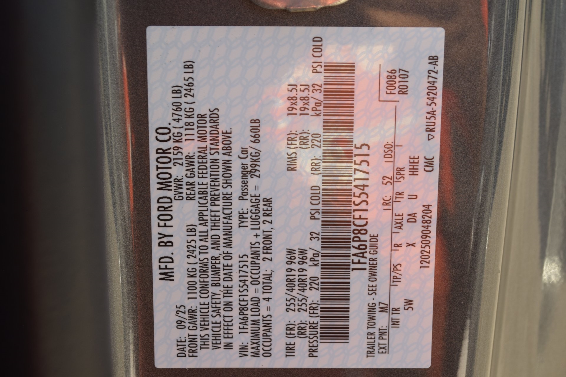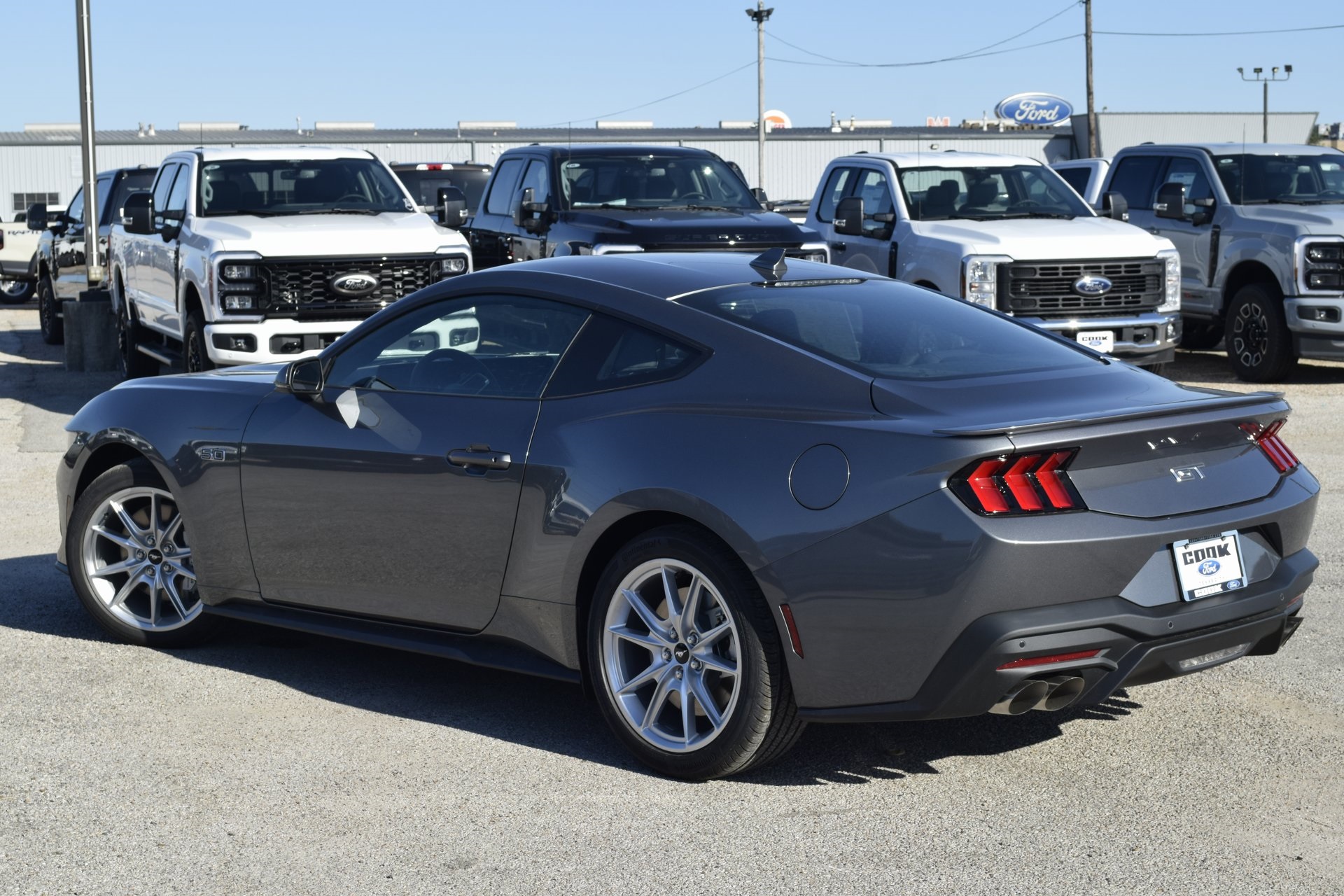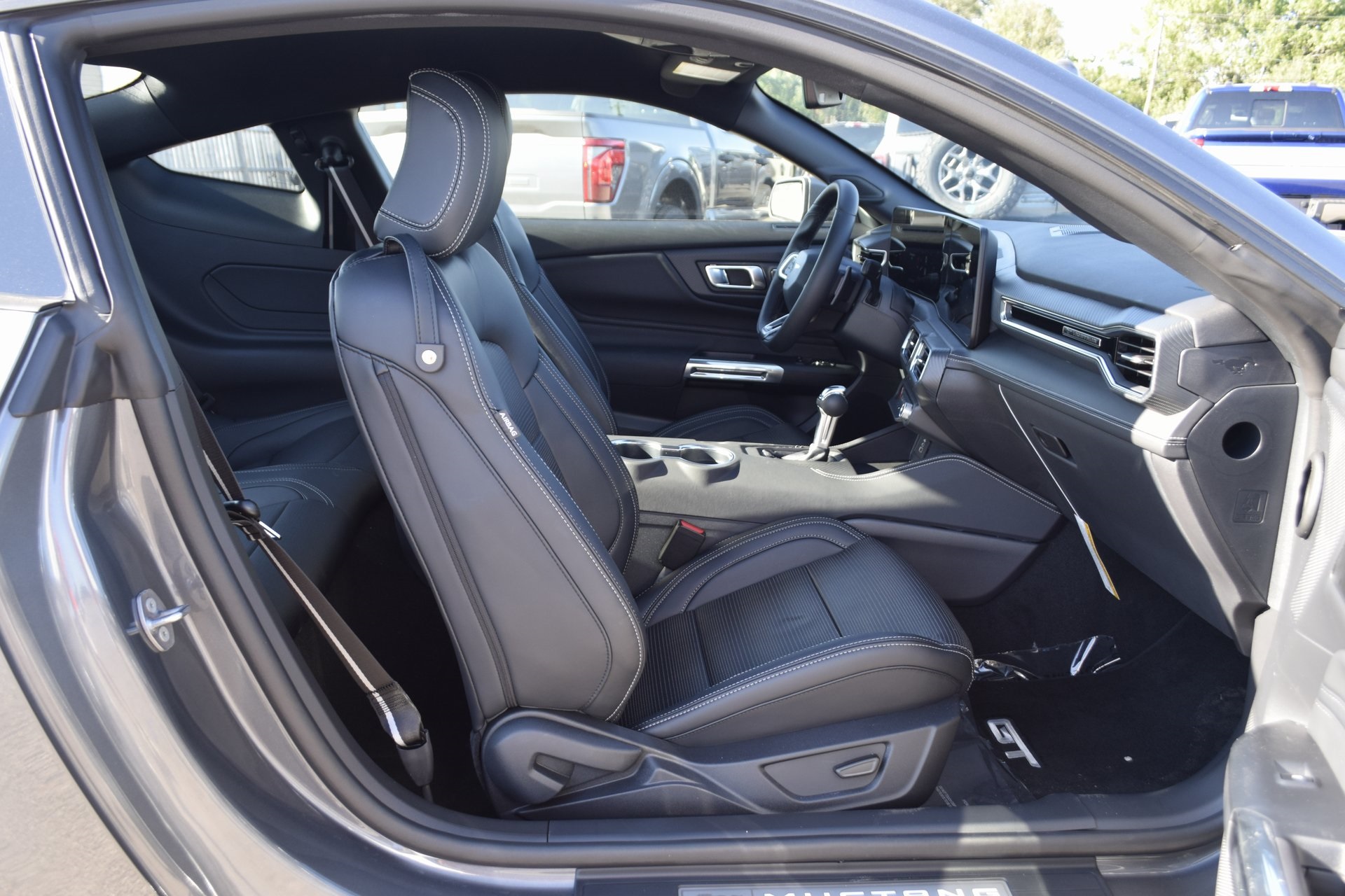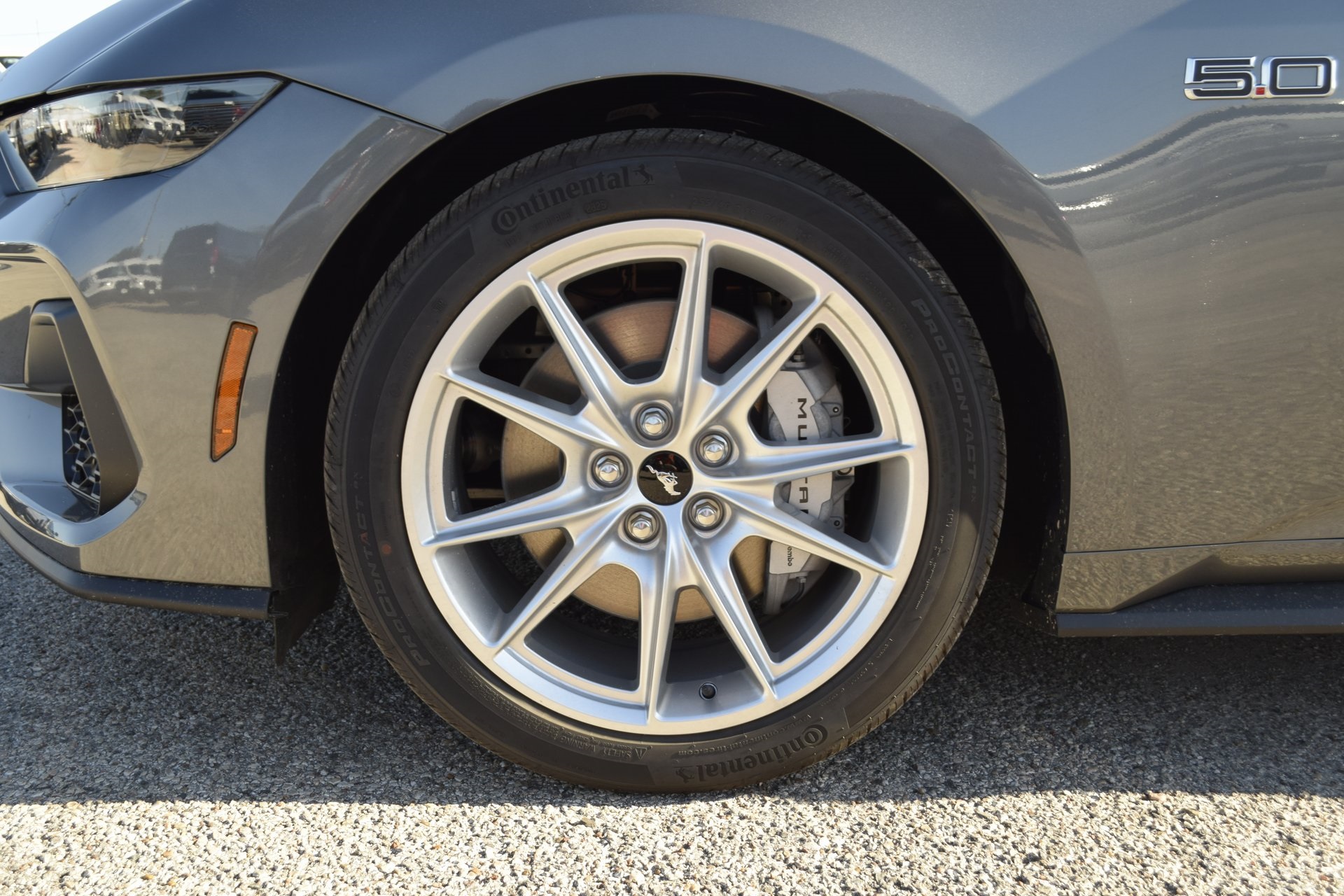This 2025 Ford Mustang GT Premium in Gray comes with the following features: 5.0L V8 Ti-VCT RWD Equipment Group 401A High Package (Illuminated Door-Sill Scuff Plates), 3.55 Limited Slip Rear Axle, 4-Wheel Disc Brakes, ABS brakes, Active Valve Performance Exhaust, Air Conditioning, Alloy wheels, AM/FM Stereo, Auto High-beam Headlights, Automatic temperature control, B&O Sound System by Bang & Olufsen w/12 Speakers, Bra