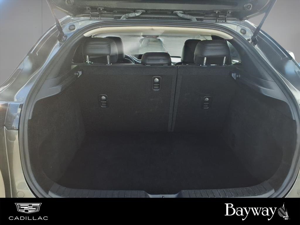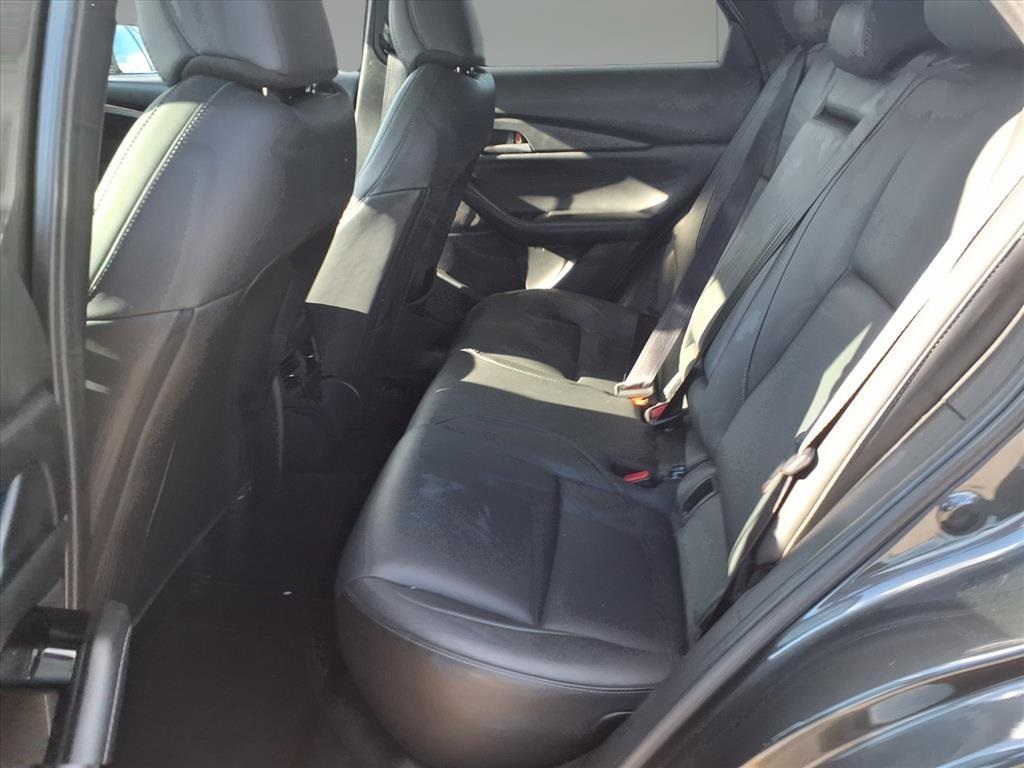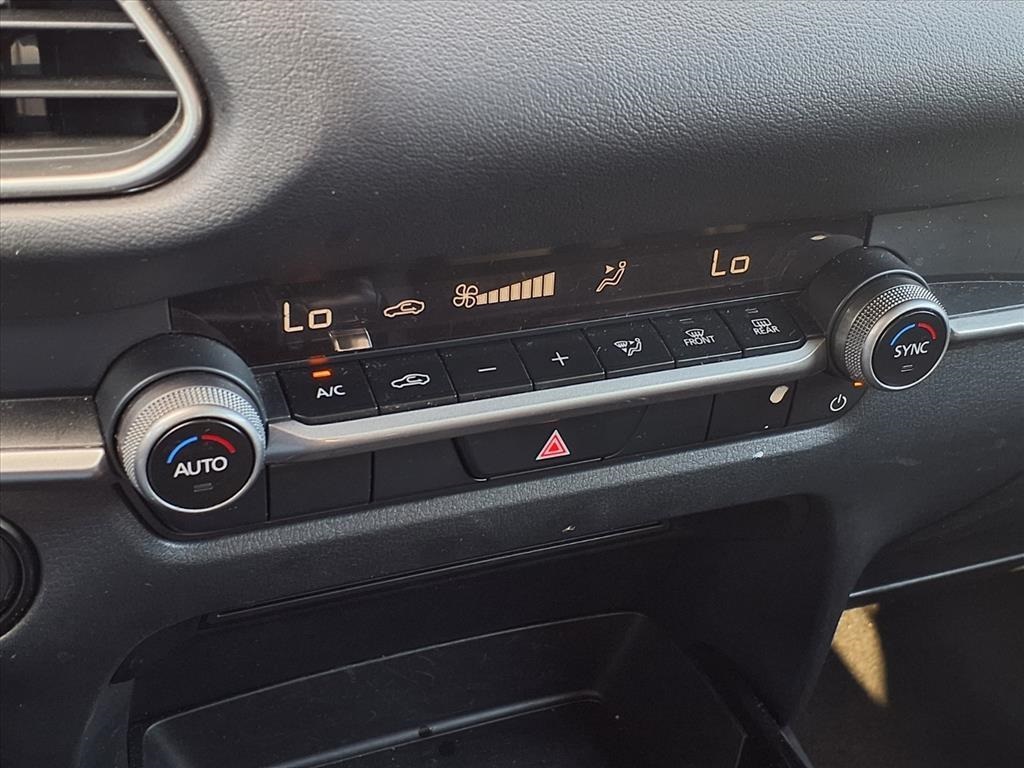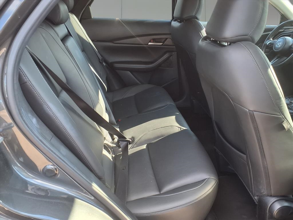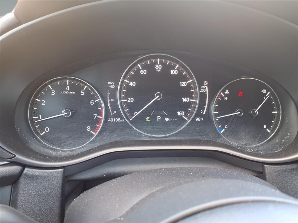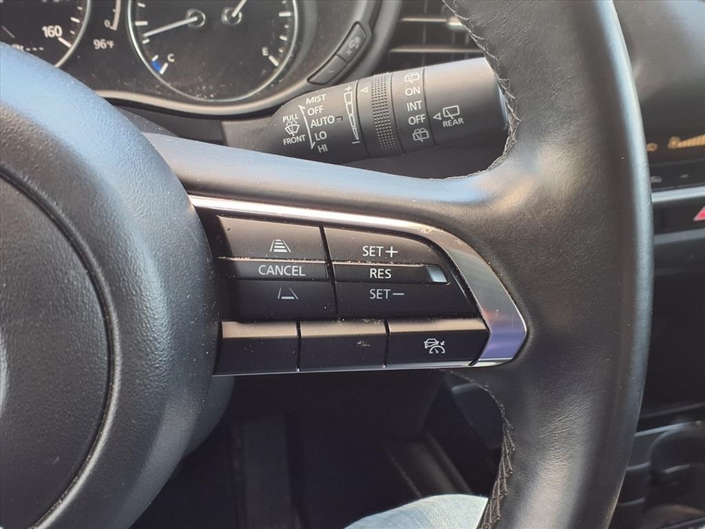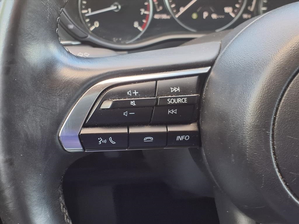 Delay-off headlights, Driver door bin, Driver vanity mirror, Dual front impact airbags, Dual front side impact airbags, Electronic Stability Control, Emergency communication system: Mazda Connected Services (3-year complimentary trial included), Exterior Parking Camera Rear, Front anti-roll bar, Front Bucket Seats, Front Center Armrest, Front dual zone A/C, Front reading lights, Front wheel independent suspension, Fully automatic headlights, Heated door mirrors, Illuminated entry, Knee airbag, Leather Shift Knob, Leather steering wheel, Leatherette Seat Trim, Low tire pressure warning, Machine Gray Metallic Paint Charge, MAZDA CONNECT Infotainment System, Occupant sensing airbag, Outside temperature display, Overhead airbag, Overhead console, Panic alarm, Passenger door bin, Passenger vanity mirror, Power door mirrors, Power steering, Power windows, Radio data system, Radio: AM/FM Audio System, Rain sensing wipers, Rear seat center armrest, Rear side impact airbag, Rear window defroster, Rear window wiper, Remote keyless entry, Roof Rail Credit, Speed control, Speed-sensing steering, Split folding rear seat, Spoiler, Steering wheel mounted audio controls, Tachometer, Telescoping steering wheel, Tilt steering wheel, Traction control, Trip computer, Turn signal indicator mirrors, Variably intermittent wipers, and Wheels: 18" x 7J Aluminum Alloy. 26/33 City/Highway MPG