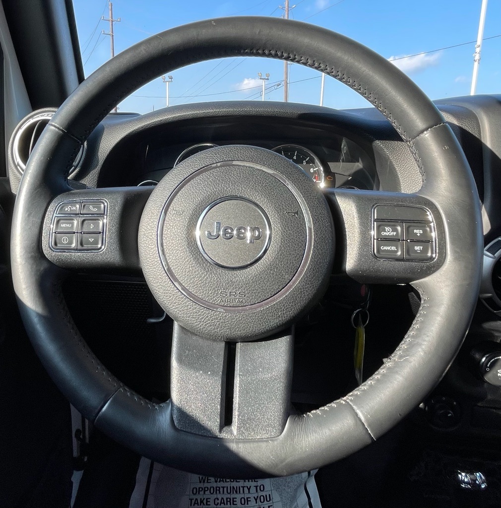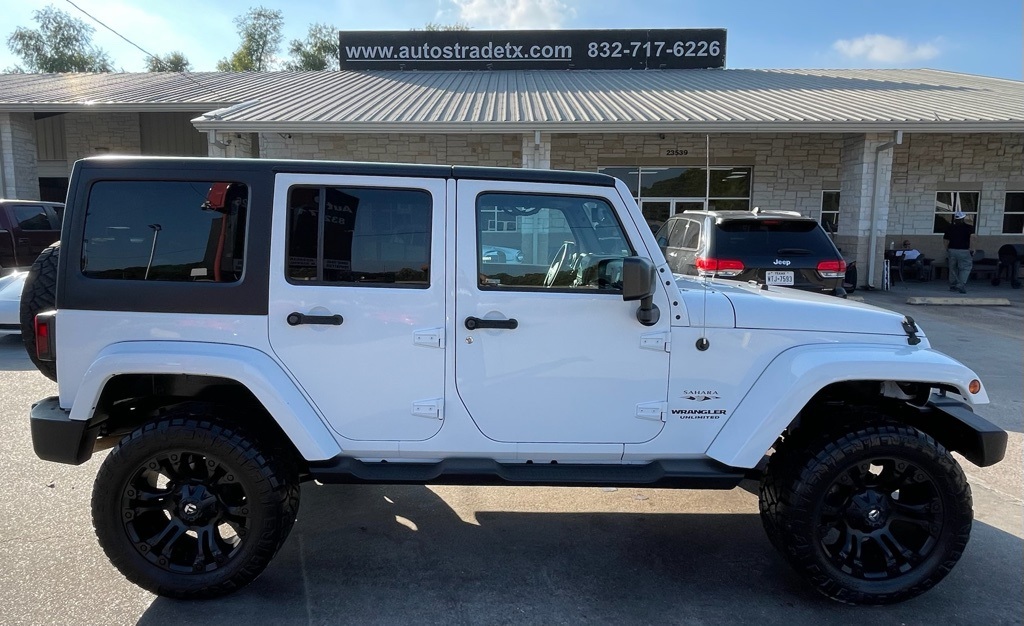 AUTOSTRADE is proud to present you with another True Market Priced Pre-Owned Vehicle. This 2016 Jeep Wrangler Unlimited Sahara is loaded with the following Factory Options:Connectivity Group (Leather Wrapped Steering Wheel, Remote USB Port, Tire Pressure Monitoring Display, Uconnect Voice Command w/Bluetooth, and Vehicle Information Center), Quick Order Package 24G (Body Color Appliques Front Bumper, Body Color Appliques Rear Bumper, and Body Color/Accent Color Grille), 18" x 7.5" Polished Satin Carbon Wheels, 4-Wheel Disc Brakes, 40GB Hard Drive w/28GB Available, 5-Year SiriusXM Travel Link Service, 6.5" Touchscreen Display, 8 Speakers, ABS brakes, Air Conditioning, Alloy wheels, AM/FM radio: SiriusXM, Anti-Spin Differential Rear Axle, Audio Jack Input for Mobile Devices, Auto-dimming Rear-View mirror, Black 3-Piece Hard Top, Brake assist, CD player, Cloth Seats w/Adjustable Head Restraints, Compass, Driver door bin, Driver vanity mirror, Dual front impact airbags, Electronic Stability Control, Freedom Panel Storage Bag, Front anti-roll bar, Front Bucket Seats, Front Center Armrest w/Storage, Front fog lights, Front reading lights, Fully automatic headlights, GPS Navigation, Heated door mirrors, Heavy Duty Suspension w/Gas Shocks, Illuminated entry, Integrated roll-over protection, Leather steering wheel, Low tire pressure warning, Manufacturer's Statement of Origin, Occupant sensing airbag, Outside temperature display, Panic alarm, Passenger door bin, Passenger vanity mirror, Power door mirrors, Power steering, Power windows, Radio data system, Radio: 130, Radio: 430N, Rear anti-roll bar, Rear Window Defroster, Rear Window Wiper/Washer, Remote keyless entry, Security system, SiriusXM Travel Link, Speed control, Split folding rear seat, Steering wheel mounted audio controls, Sunrider Soft Top, Tachometer, Tilt steering wheel, Traction control, Trip computer, Tubular Side Steps (DISC), and Variably intermittent wipers.