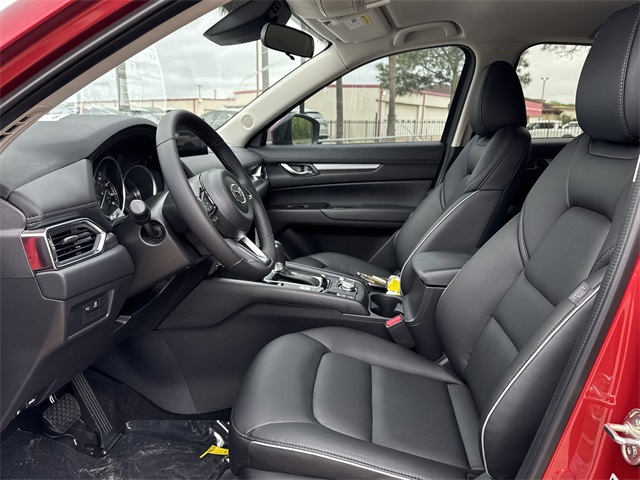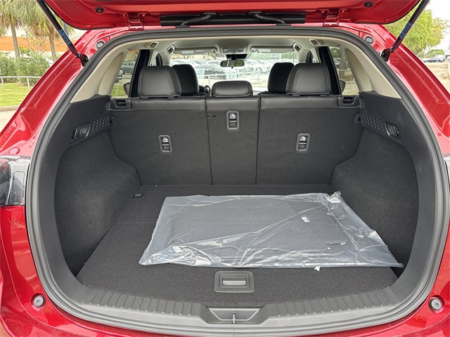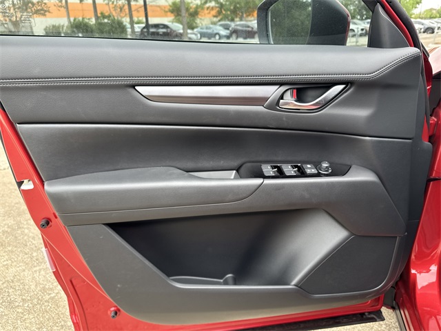 front impact airbags, Dual front side impact airbags, E911 Automatic Emergency Notification, Electronic Stability Control, Emergency communication system: MAZDA CONNECT, Exterior Parking Camera Rear, Four wheel independent suspension, Front anti-roll bar, Front Bucket Seats, Front Center Armrest w/Storage, Front dual zone A/C, Front reading lights, Fully automatic headlights, Heated Front Bucket Seats, Heated front seats, Illuminated entry, Infotainment System Voice Command, Leather Shift Knob, Leather steering wheel, Leatherette Seat Trim, Low tire pressure warning, Multifunction Commander Control, Occupant sensing airbag, Outside temperature display, Overhead airbag, Overhead console, Pandora, Panic alarm, Passenger door bin, Passenger vanity mirror, Power door mirrors, Power driver seat, Power steering, Power windows, Radio Broadcast Data System Program Information, Radio data system, Radio: AM/FM/HD Audio System, Rain sensing wipers, Rear anti-roll bar, Rear Bumper Guard, Rear reading lights, Rear seat center armrest, Rear window defroster, Rear window wiper, Remote keyless entry, SMS Text Msg Audio Delivery & Reply, Soul Red Crystal Metallic Paint, Speed control, Speed-sensing steering, Split folding rear seat, Spoiler, Steering wheel mounted audio controls, Tachometer, Telescoping steering wheel, Tilt steering wheel, Traction control, Trip computer, Turn signal indicator mirrors, Variably intermittent wipers, Wheel Locks, and Wheels: 17" x 7J Aluminum Alloy. 2025 Soul Red Crystal Metallic Mazda CX-5 2.5 S Select Package 4D Sport Utility AWD SKYACTIV® 2.5L 4-Cylinder DOHC 16V 6-Speed Automatic Pricing is subject to change without prior notice. Not all forms of payment are accepted. Residency restrictions apply. See dealer for complete details. Price includes: $1000 - Customer Cash. Exp. 10/31/2025 $500 - Customer Cash. Exp. 10/31/2025