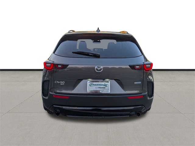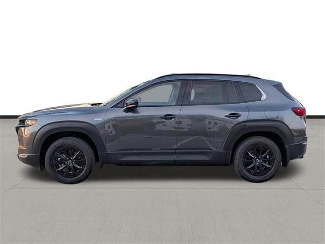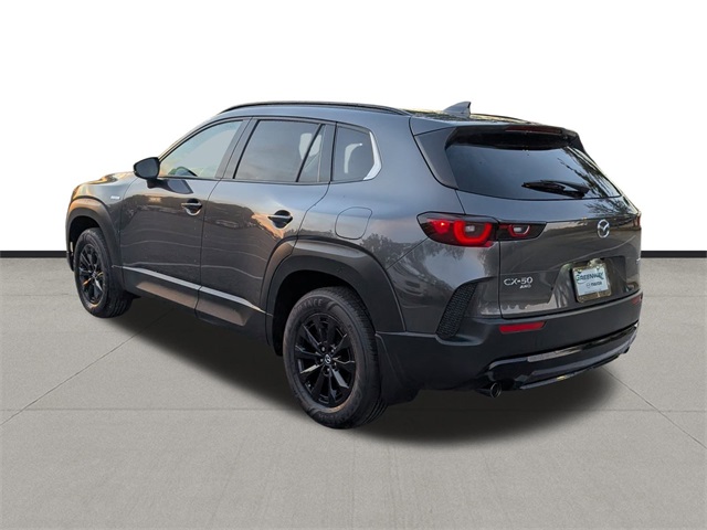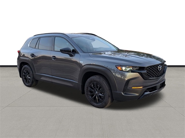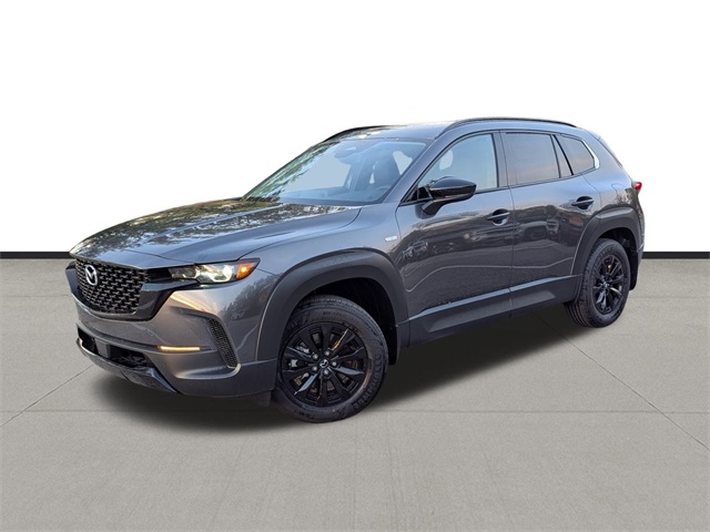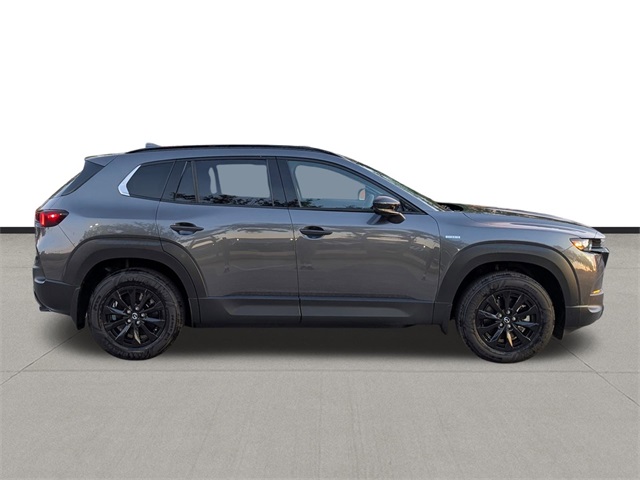 ff headlights, Driver door bin, Driver vanity mirror, Dual front impact airbags, Dual front side impact airbags, Electronic Stability Control, Emergency communication system: MAZDA CONNECT, Exterior Parking Camera Rear, Front anti-roll bar, Front Bucket Seats, Front Center Armrest, Front dual zone A/C, Front reading lights, Front wheel independent suspension, Fully automatic headlights, Heated door mirrors, Heated front seats, Heated Front Seats with 3 Level Adjustment and Memory, Illuminated entry, Knee airbag, Leather Seat Trim, Leather Shift Knob, Leather steering wheel, Low tire pressure warning, Machine Gray Metallic Paint Charge, Memory seat, Occupant sensing airbag, Outside temperature display, Overhead airbag, Overhead console, Panic alarm, Passenger door bin, Passenger vanity mirror, Power door mirrors, Power driver seat, Power Liftgate, Power moonroof, Power passenger seat, Power steering, Power windows, Radio data system, Radio: AM/FM/HD Bose 12-Speaker Audio Sound System, Rain sensing wipers, Rear seat center armrest, Rear window defroster, Rear window wiper, Remote keyless entry, Speed control, Speed-sensing steering, Split folding rear seat, Spoiler, Steering wheel mounted audio controls, Tachometer, Telescoping steering wheel, Tilt steering wheel, Traction control, Trip computer, Turn signal indicator mirrors, Variably intermittent wipers, and Wheels: 17" x 7J Aluminum Alloy Black Metallic Finish. 2025 Machine Gray Metallic Mazda CX-50 Hybrid Premium 4D Sport Utility AWD 2.5L 4-Cylinder eCVT Pricing is subject to change without prior notice. Not all forms of payment are accepted. Residency restrictions apply. See dealer for complete details. Price includes: $1000 - Customer Cash. Exp. 12/01/2025