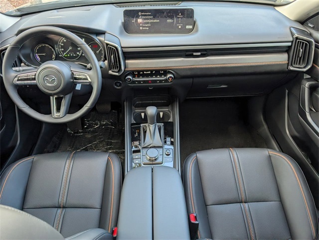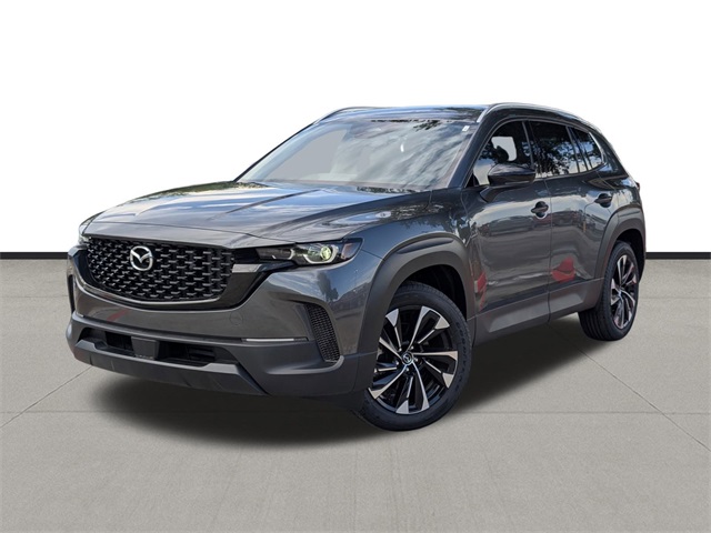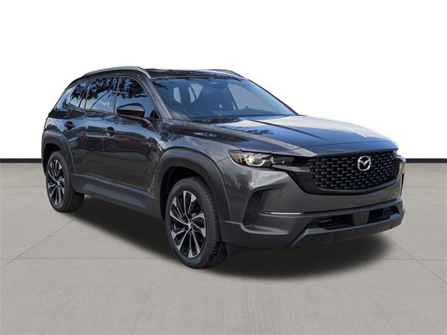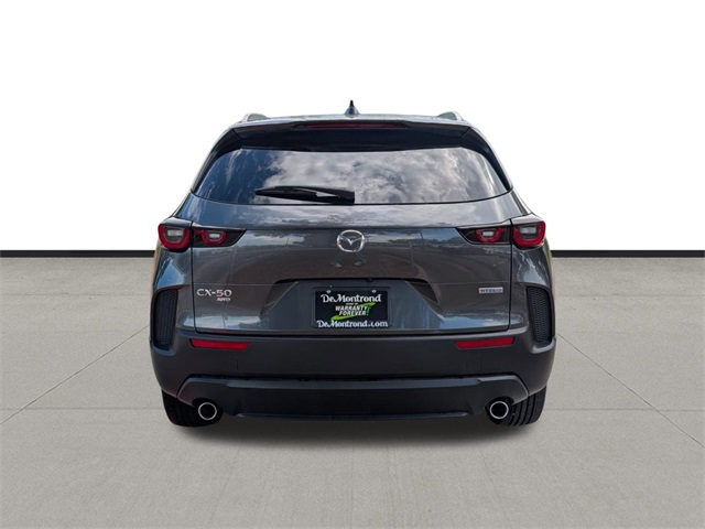 r, Delay-off headlights, Driver door bin, Driver vanity mirror, Dual front impact airbags, Dual front side impact airbags, Electronic Stability Control, Emergency communication system: MAZDA CONNECT, Exterior Parking Camera Rear, Front anti-roll bar, Front Bucket Seats, Front Center Armrest, Front dual zone A/C, Front reading lights, Front wheel independent suspension, Fully automatic headlights, Garage door transmitter: HomeLink, Heads-Up Display, Heated door mirrors, Heated front seats, Heated/Ventilated Front Seats w/3 Level Adjustment, Illuminated entry, Knee airbag, Leather Seat Trim, Leather Shift Knob, Leather steering wheel, Low tire pressure warning, Machine Gray Metallic Paint Charge, Memory seat, Occupant sensing airbag, Outside temperature display, Overhead airbag, Overhead console, Panic alarm, Passenger door bin, Passenger vanity mirror, Power door mirrors, Power driver seat, Power Liftgate, Power moonroof, Power passenger seat, Power steering, Power windows, Radio data system, Radio: AM/FM/HD Bose 12-Speaker Audio Sound System, Rain sensing wipers, Rear seat center armrest, Rear window defroster, Rear window wiper, Remote keyless entry, Speed control, Speed-sensing steering, Split folding rear seat, Spoiler, Steering wheel mounted audio controls, Tachometer, Telescoping steering wheel, Tilt steering wheel, Traction control, Trip computer, Turn signal indicator mirrors, Variably intermittent wipers, Ventilated front seats, and Wheels: 19" x 7.5J Black Metallic Aluminum Alloy. 2025 Machine Gray Metallic Mazda CX-50 Hybrid Premium Plus 4D Sport Utility AWD 2.5L 4-Cylinder eCVT Pricing is subject to change without prior notice. Not all forms of payment are accepted. Residency restrictions apply. See dealer for complete details. Price includes: $1000 - Customer Cash. Exp. 10/31/2025