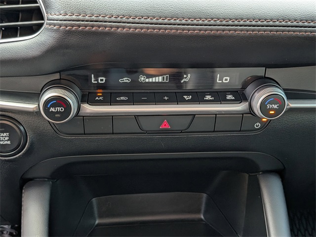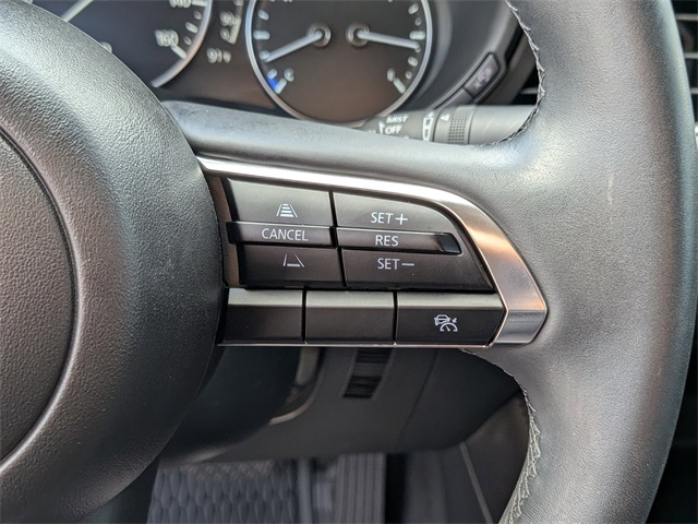 ervices (1-year complimentary trial included), Exterior Parking Camera Rear, Front anti-roll bar, Front Bucket Seats, Front Center Armrest, Front dual zone A/C, Front reading lights, Front Sport Bucket Seats, Front wheel independent suspension, Fully automatic headlights, Heated door mirrors, High Wall All-Weather Floor Mats, Illuminated entry, Knee airbag, Leather Shift Knob, Leather steering wheel, Leatherette Seat Trim, Low tire pressure warning, MAZDA CONNECT Infotainment System, Occupant sensing airbag, Outside temperature display, Overhead airbag, Overhead console, Panic alarm, Passenger door bin, Passenger vanity mirror, Power door mirrors, Power steering, Power windows, Radio data system, Radio: AM/FM Audio System, Rain sensing wipers, Rear seat center armrest, Rear side impact airbag, Rear window defroster, Remote keyless entry, Soul Red Crystal Metallic Paint Charge, Speed control, Speed-sensing steering, Split folding rear seat, Steering wheel mounted audio controls, Tachometer, Telescoping steering wheel, Tilt steering wheel, Traction control, Trip computer, Turn signal indicator mirrors, Variably intermittent wipers, and Wheels: 18" x 7J Aluminum Alloy.