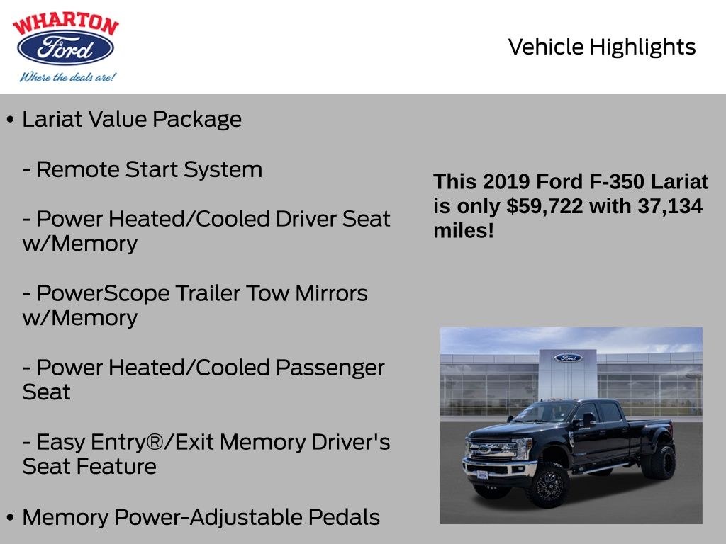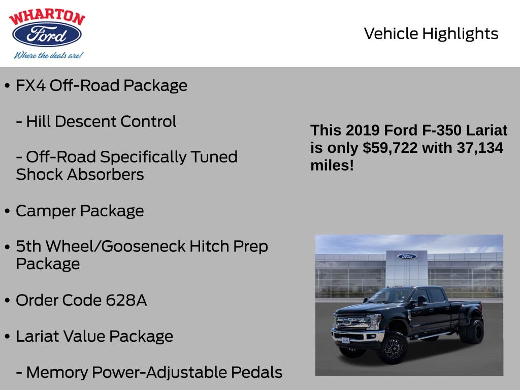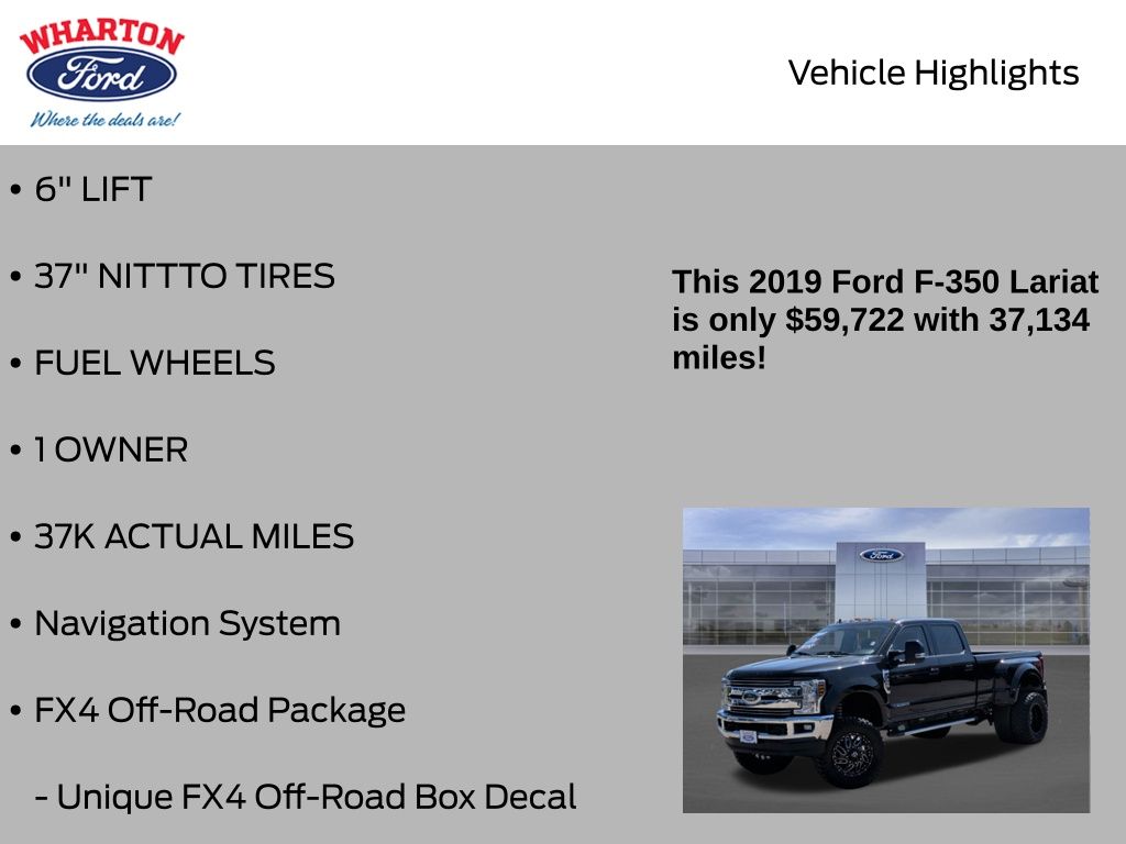 Certified. Agate Black Metallic 2019 Ford F-350SD Lariat DRW 4WD TorqShift 6-Speed Automatic Power Stroke 6.7L V8 DI 32V OHV Turbodiesel 6" LIFT, 37" NITTTO TIRES, FUEL WHEELS, 1 OWNER, 37K ACTUAL MILES, 4WD, 5th Wheel/Gooseneck Hitch Prep Package, Camper Package, Dual rear wheels, Easy Entry®/Exit Memory Driver's Seat Feature, Engine Block Heater, FX4 Off-Road Package, Hill Descent Control, Lariat Value Package, LED Box Lighting, Memory Power-Adjustable Pedals, Navigation System, Off-Road Speci