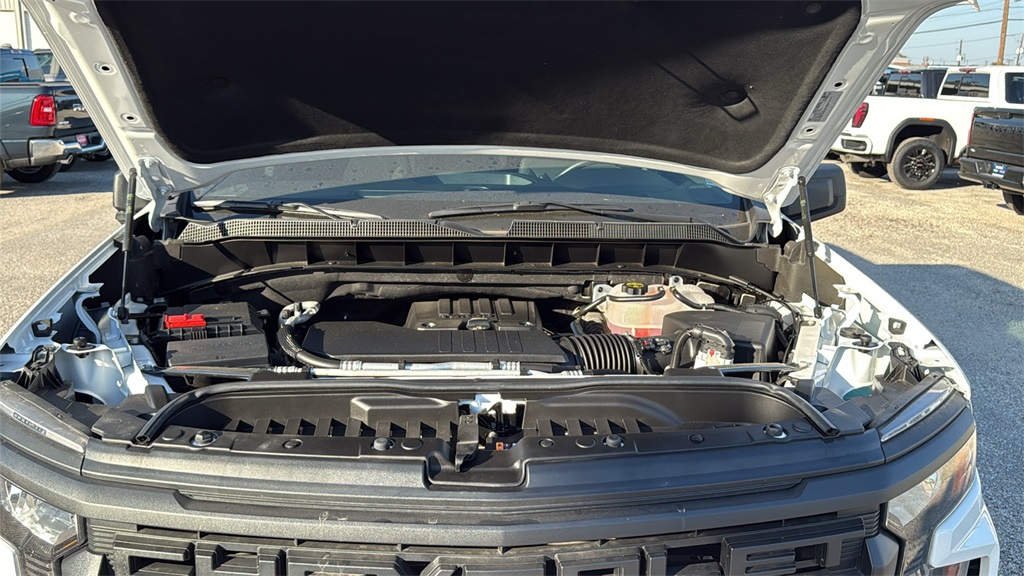 This 2025 Chevrolet Silverado 1500 Custom in Summit White comes with the following features: 2.7L I4 Turbocharged DOHC 16V LEV3-SULEV30 310hp 8-Speed Automatic RWD Custom Convenience Package (Electric Rear-Window Defogger, EZ Lift Power Lock & Release Tailgate, LED Cargo Area Lighting, Remote Vehicle Starter System, and Theft Deterrent System (Unauthorized Entry)), Custom Value Package, High Capacity Suspension Package, Preferred Equipment Group 1CX (10-Way Power Driver Seat w/Lumbar, 120-Volt Bed Mounted Power Outlet, 120-Volt Interior Power Outlet, 3.5" Monochromatic Display Driver Info Center, Bluetooth® For Phone, Color-Keyed Carpeting Floor Covering, Deep-Tinted Glass, Dual Rear USB Ports (Charge Only), Electronic Cruise Control, Front Frame-Mounted Black Recovery Hooks, Front Rubberized Vinyl Floor Mats, HD Rear Vision Camera, Manual Tilt Wheel Steering Column, OnStar Services Capable, Power Front Windows w/Driver Express Up/Down, Power Front Windows w/Passenger Express Down, Power Rear Windows w/Express Down, Rear 60/40 Folding Bench Seat (Folds Up), Rear Rubberized-Vinyl Floor Mats, Remote Keyless Entry, SiriusXM Trial Subscription, Standard Tailgate, Teen Driver, Tire Pressure Monitoring System, and Wi-Fi Hot Spot Capable), Trailering Package (Hitch Guidance), 8-Speed Automatic, Black Cloth, 3.42 Rear Axle Ratio, 4-Wheel Disc Brakes, 40/20/40 Front Split-Bench Seat, 6 Speakers, 6-Speaker Audio System, ABS brakes, Air Conditioning, Alloy wheels, AM/FM radio: SiriusXM, Apple CarPlay/Android Auto, Auto High-beam Headlights, Automatic Emergency Braking, Brake assist, Bumpers: body-color, Cloth Seat Trim, Compass, Delay-off headlights, Driver door bin, Driver vanity mirror, Dual front impact airbags, Dual front side impact airbags, Electronic Stability Control, Emergency communication system: OnStar, Following Distance Indicator, Forward Collision Alert, Front anti-roll bar, Front Center Armrest w/Storage, Front License Plate Kit, Front Pedestrian Braking, Front reading lights, Front wheel independent suspension, Fully automatic headlights, Heated door mirrors, Illuminated entry, IntelliBeam Automatic High Beam On/Off, Lane Keep Assist w/Lane Departure Warning, Low tire pressure warning, Occupant sensing airbag, Outside temperature display, Overhead airbag, Overhead console, Panic alarm, Passenger door bin, Passenger vanity mirror, Power door mirrors, Power driver seat, Power steering, Power windows, Premium audio system: Chevrolet Infotainment 3, Radio data system, Radi